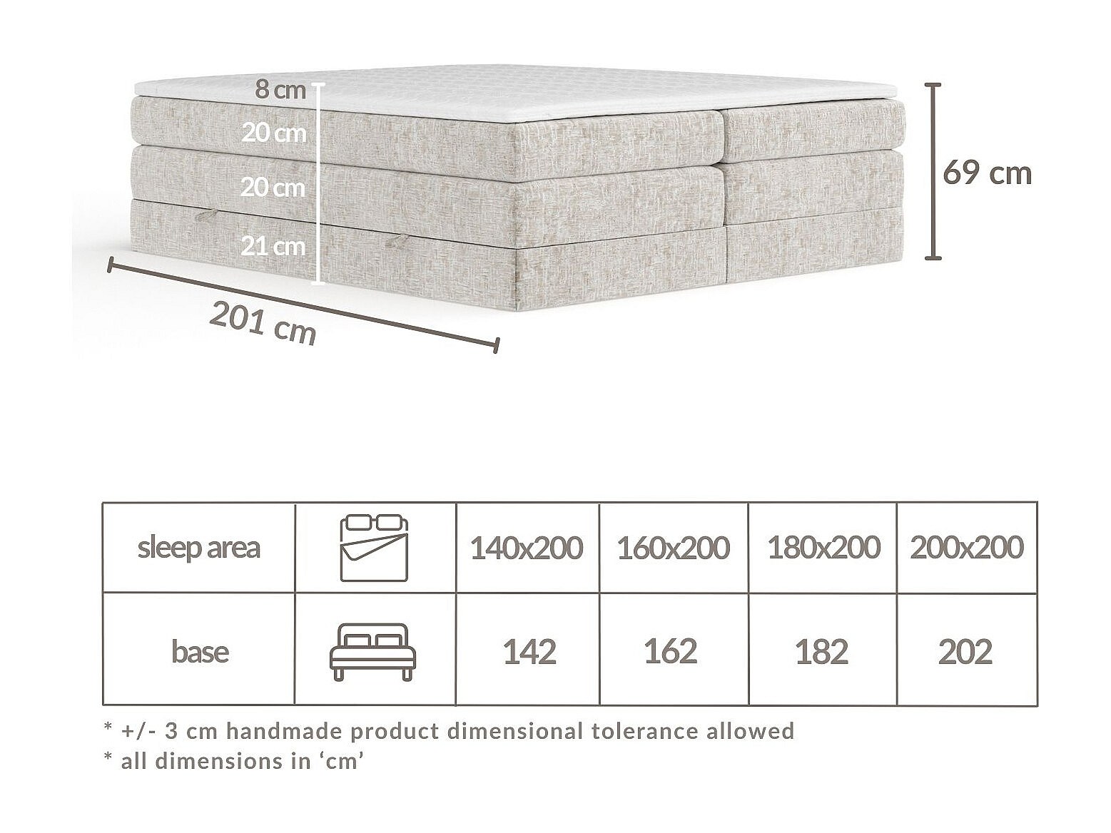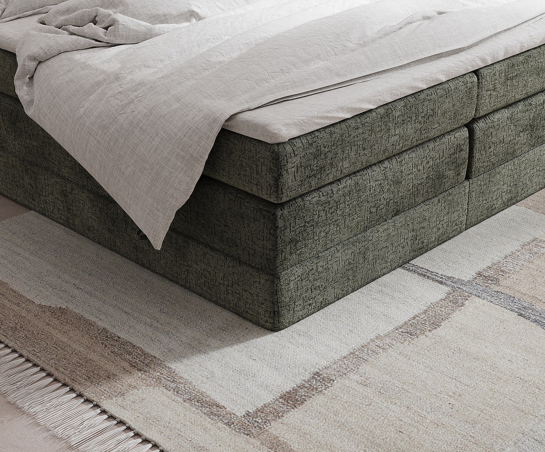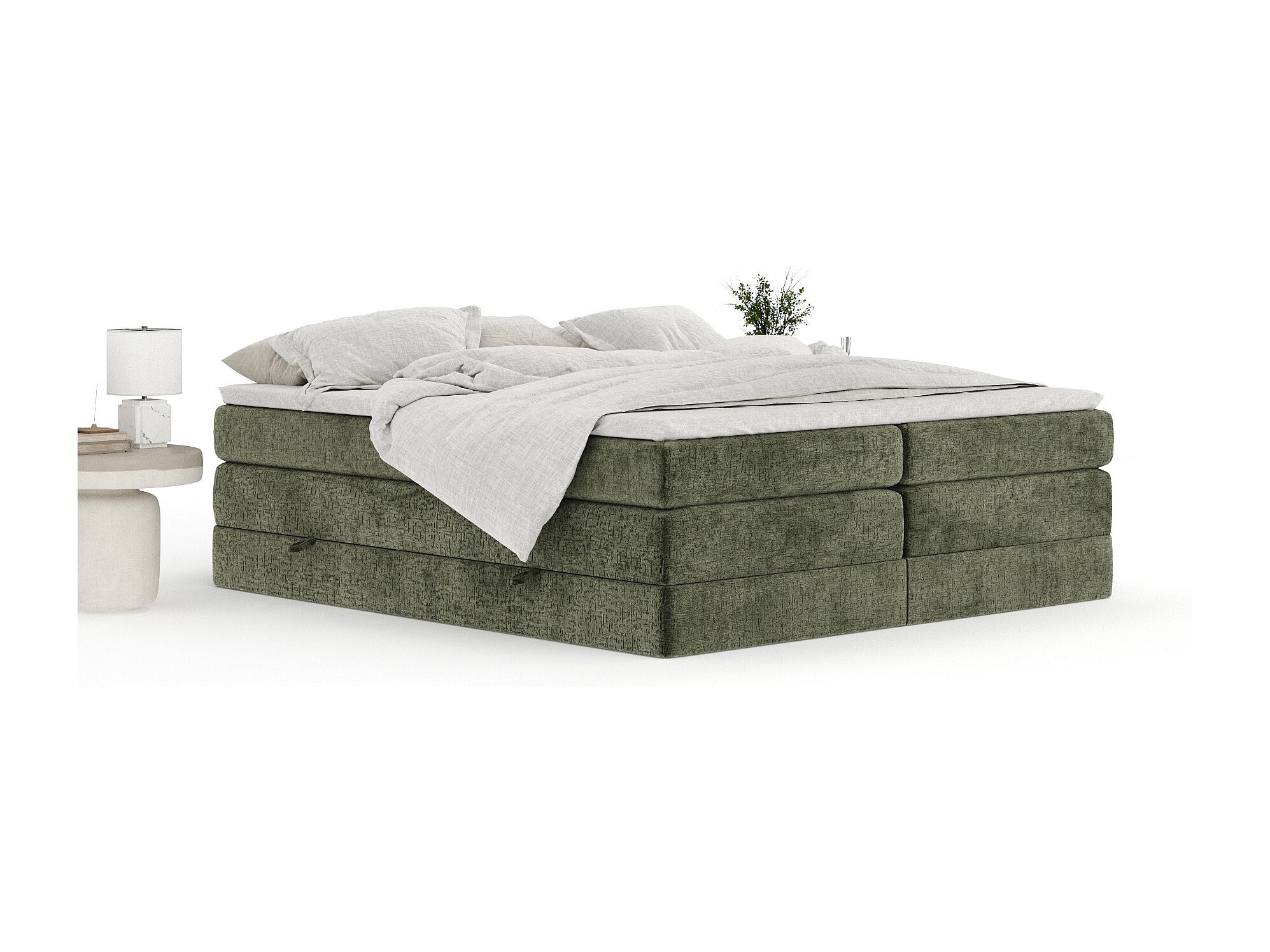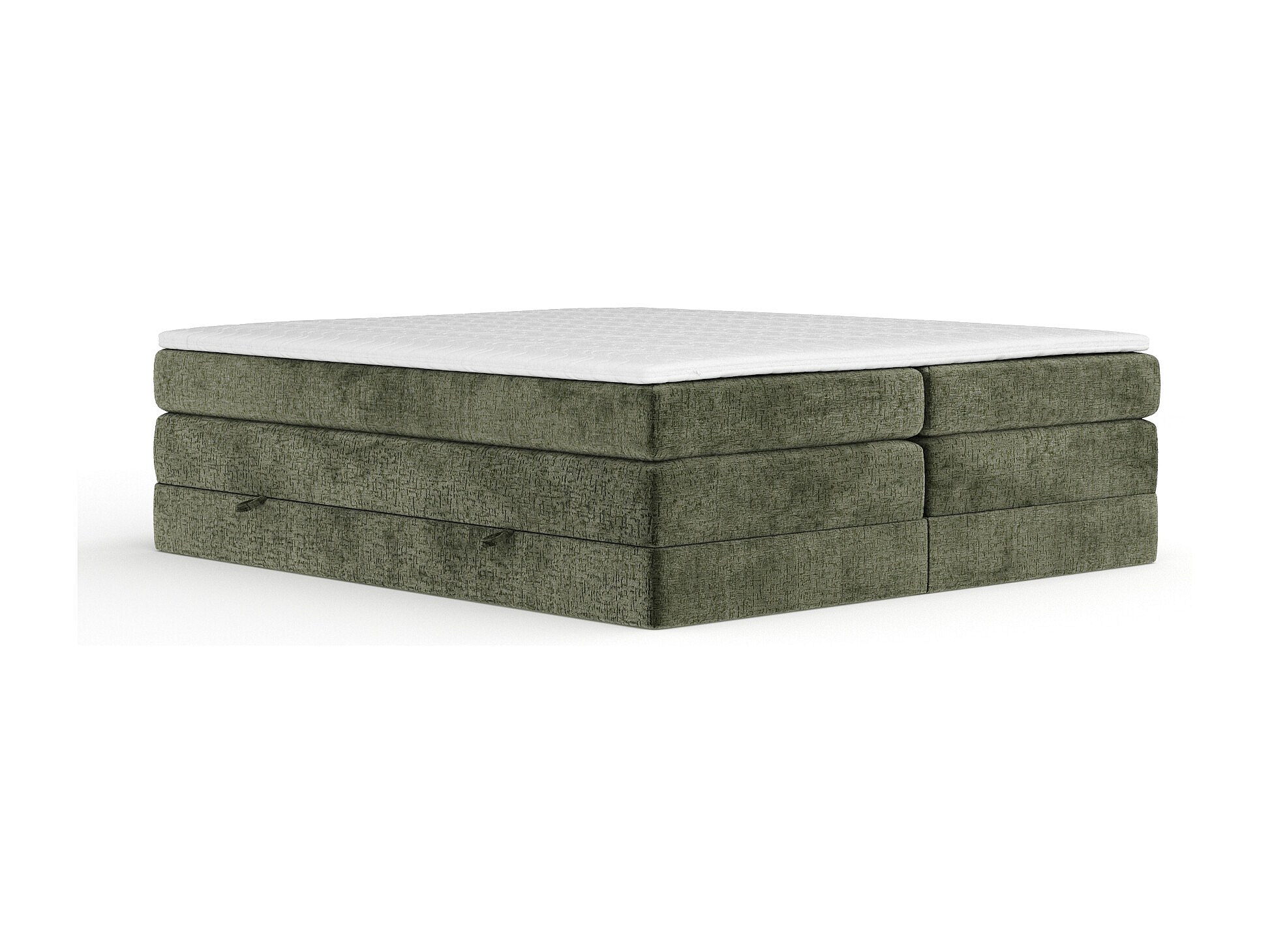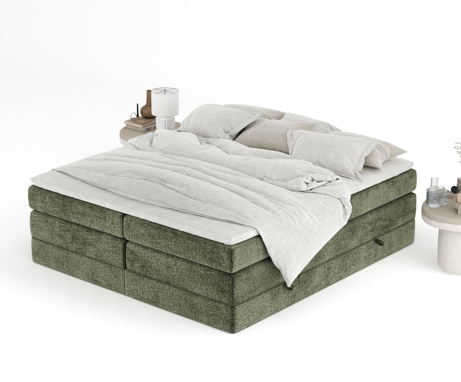 Lit boxspring en tissu chenille Juniper - matelas - surmatelas - 140x200 cm - vert olive