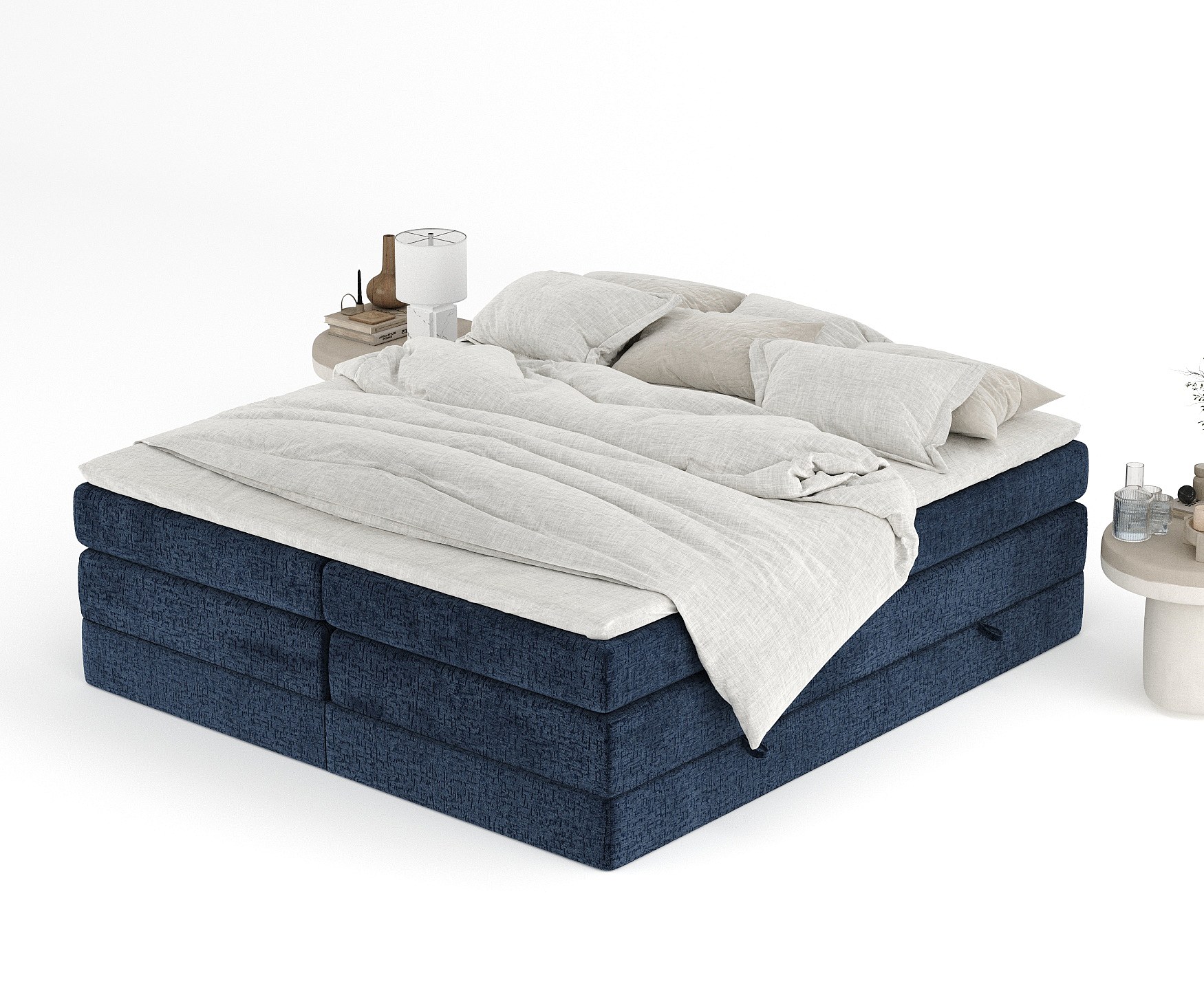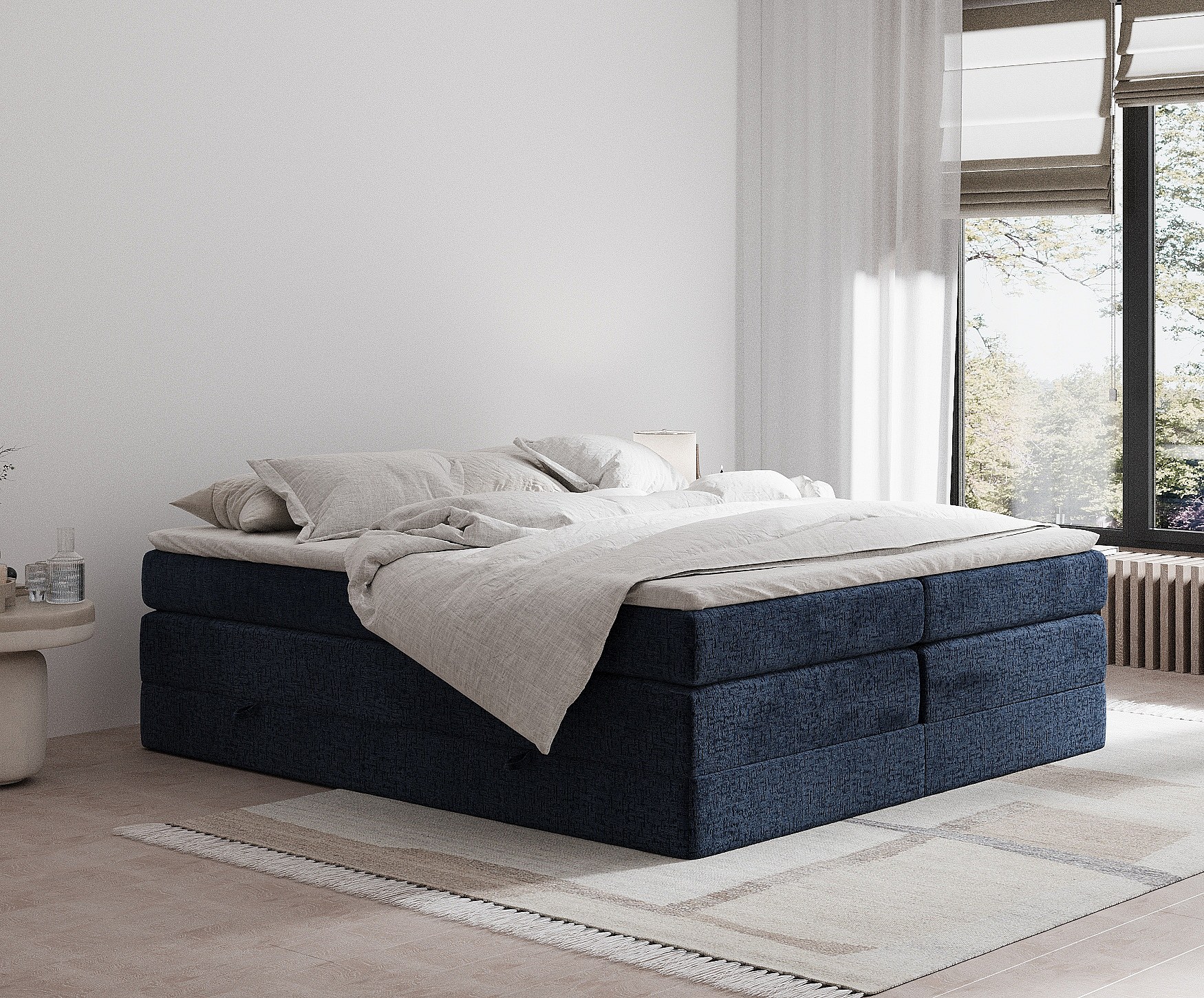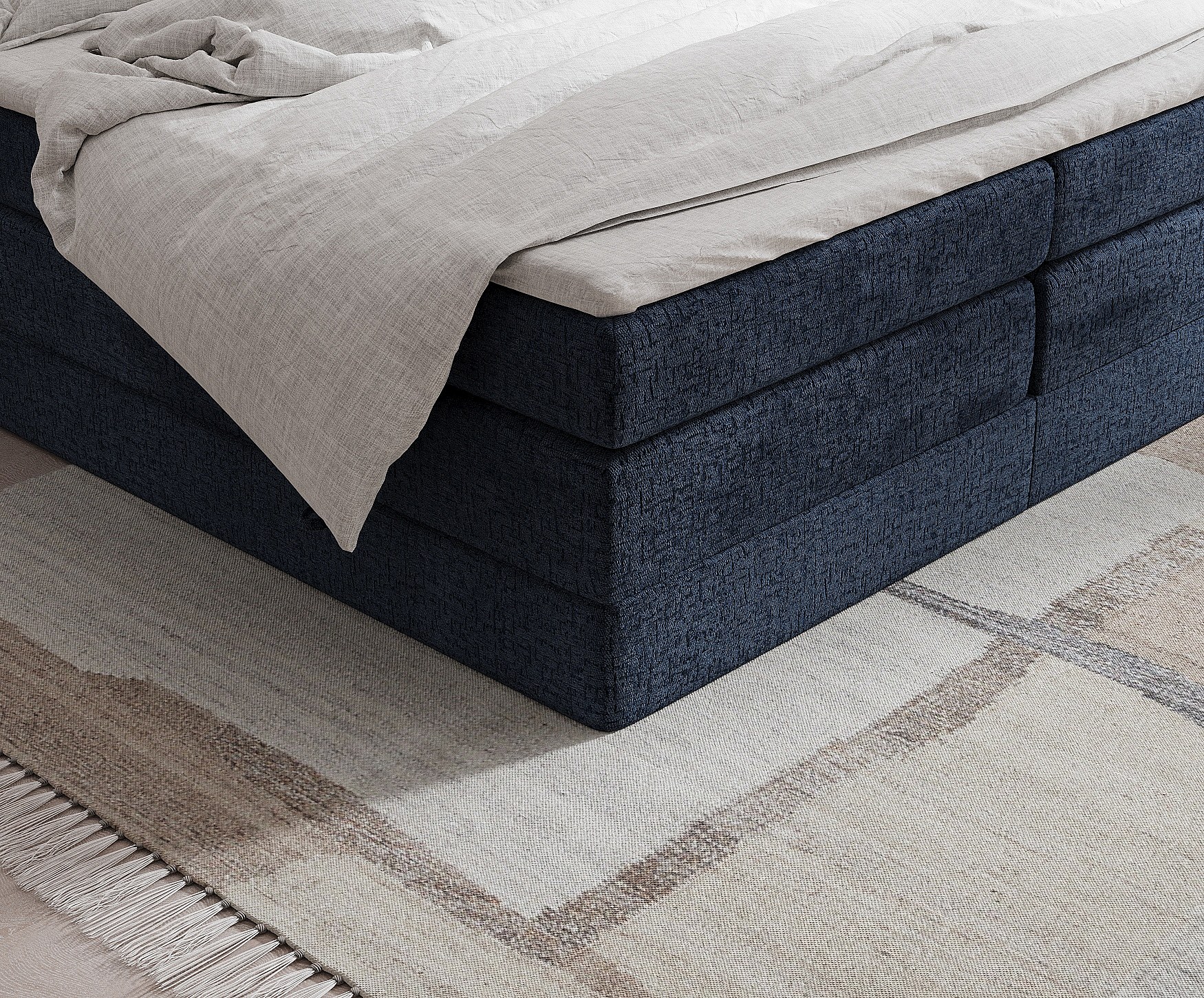Lit boxspring en tissu chenille Juniper - matelas - surmatelas - 160x200 cm - bleu marine