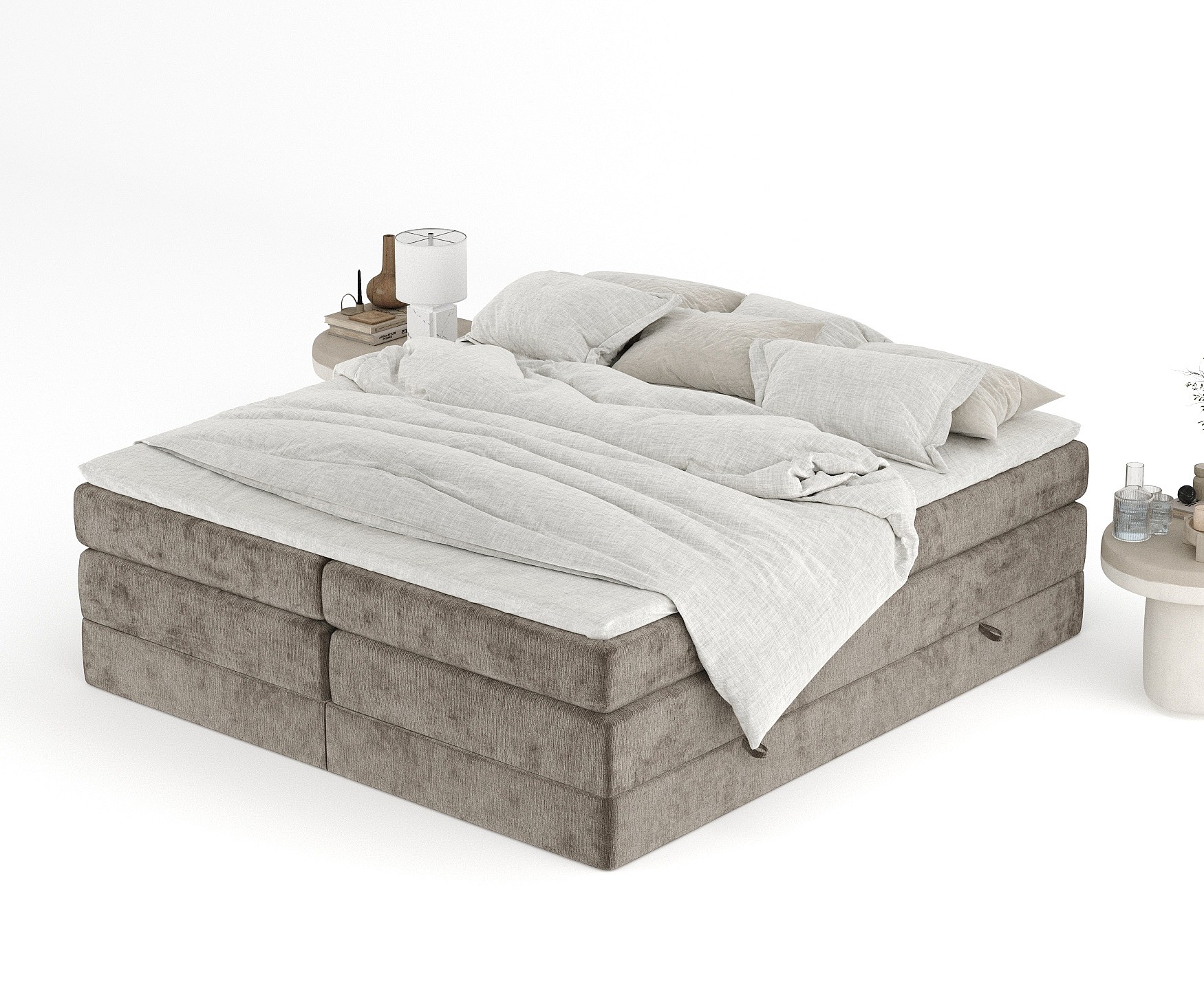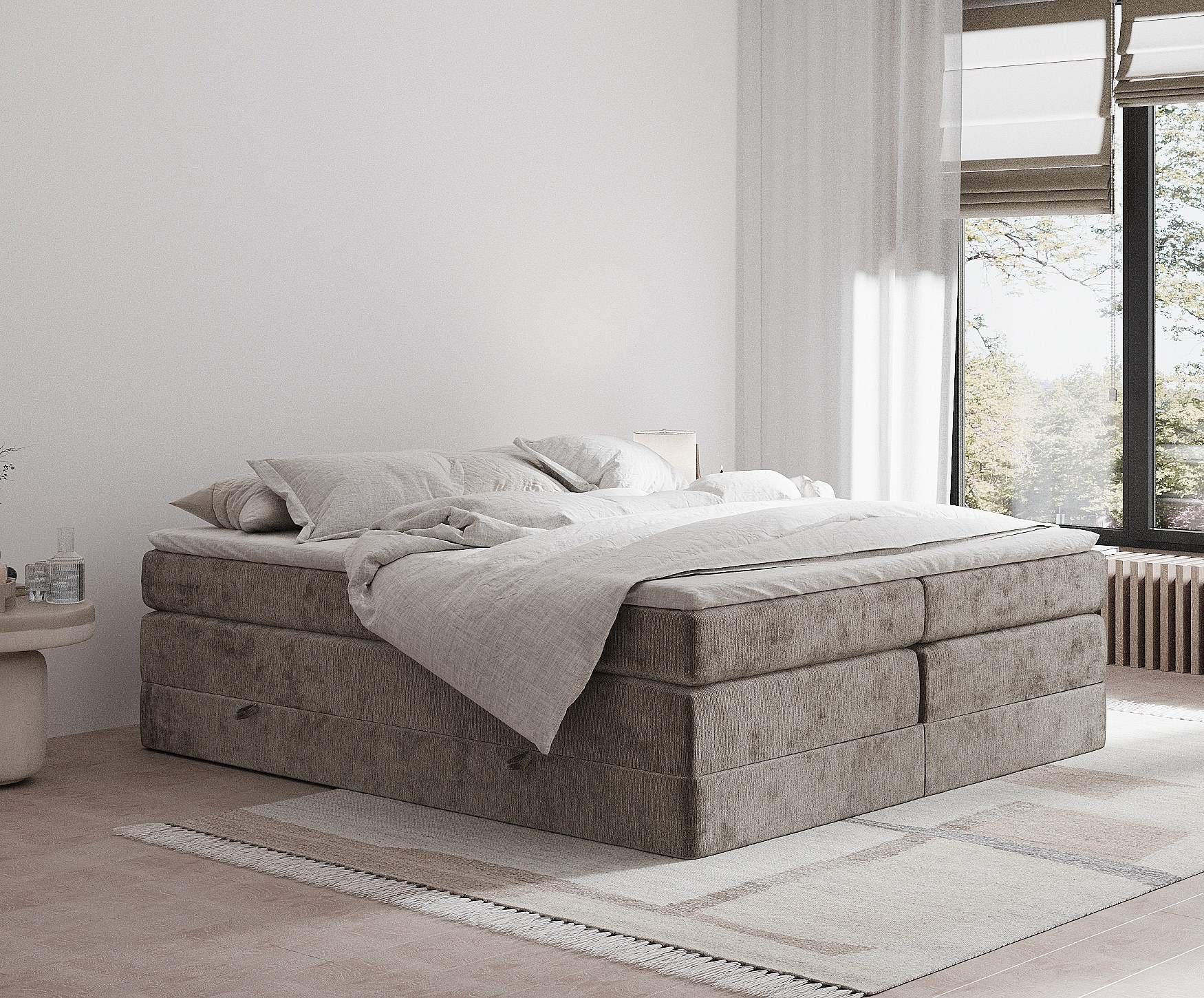 Lit boxspring en tissu chenille Juniper - matelas - surmatelas - 160x200 cm - brun