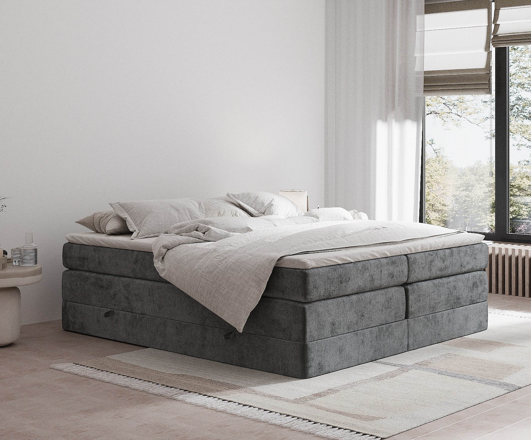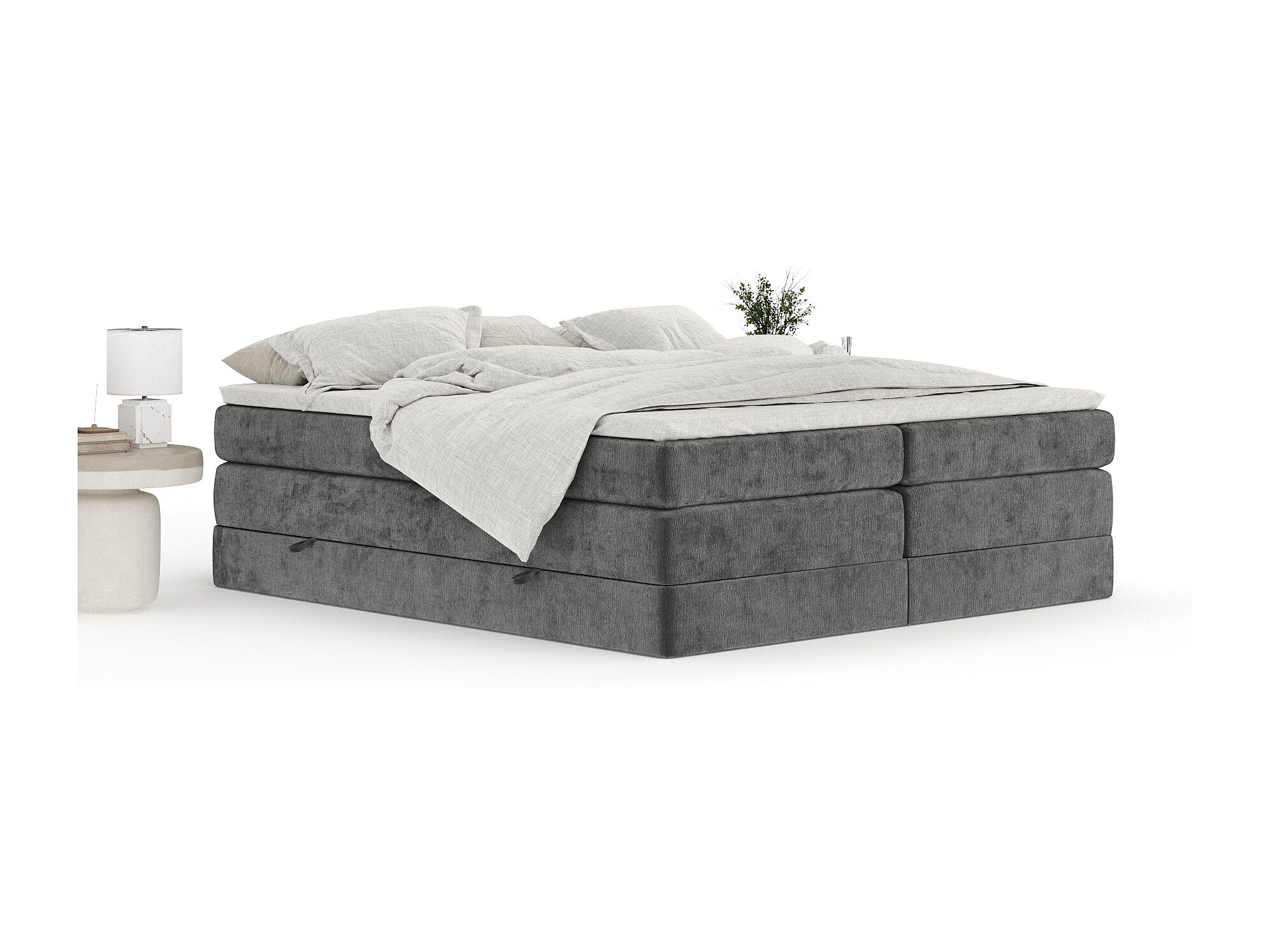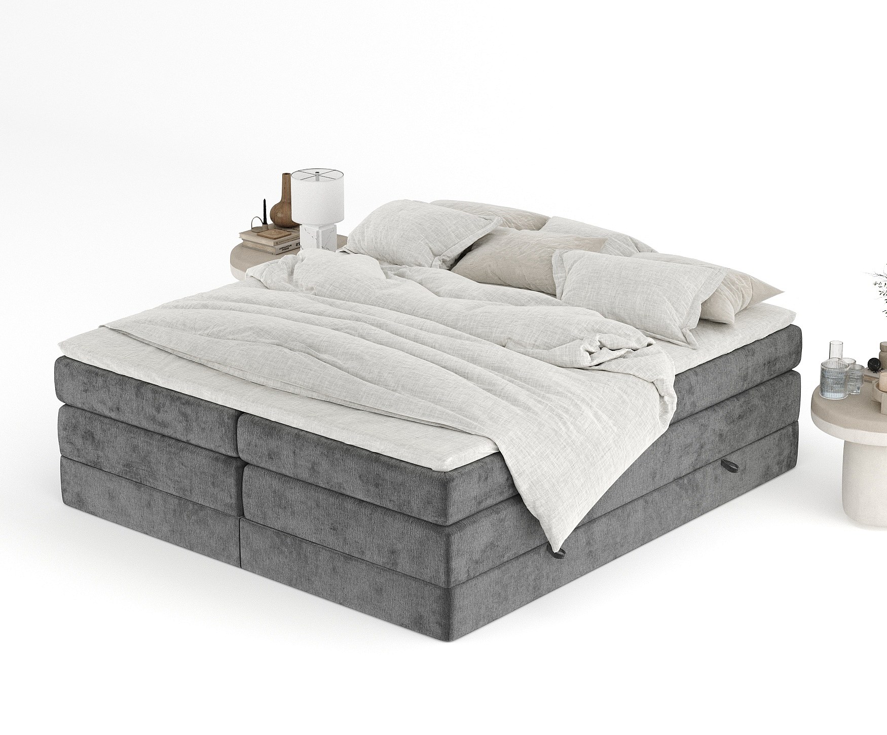 Lit boxspring en tissu chenille Juniper - matelas - surmatelas - 160x200 cm - gris foncé