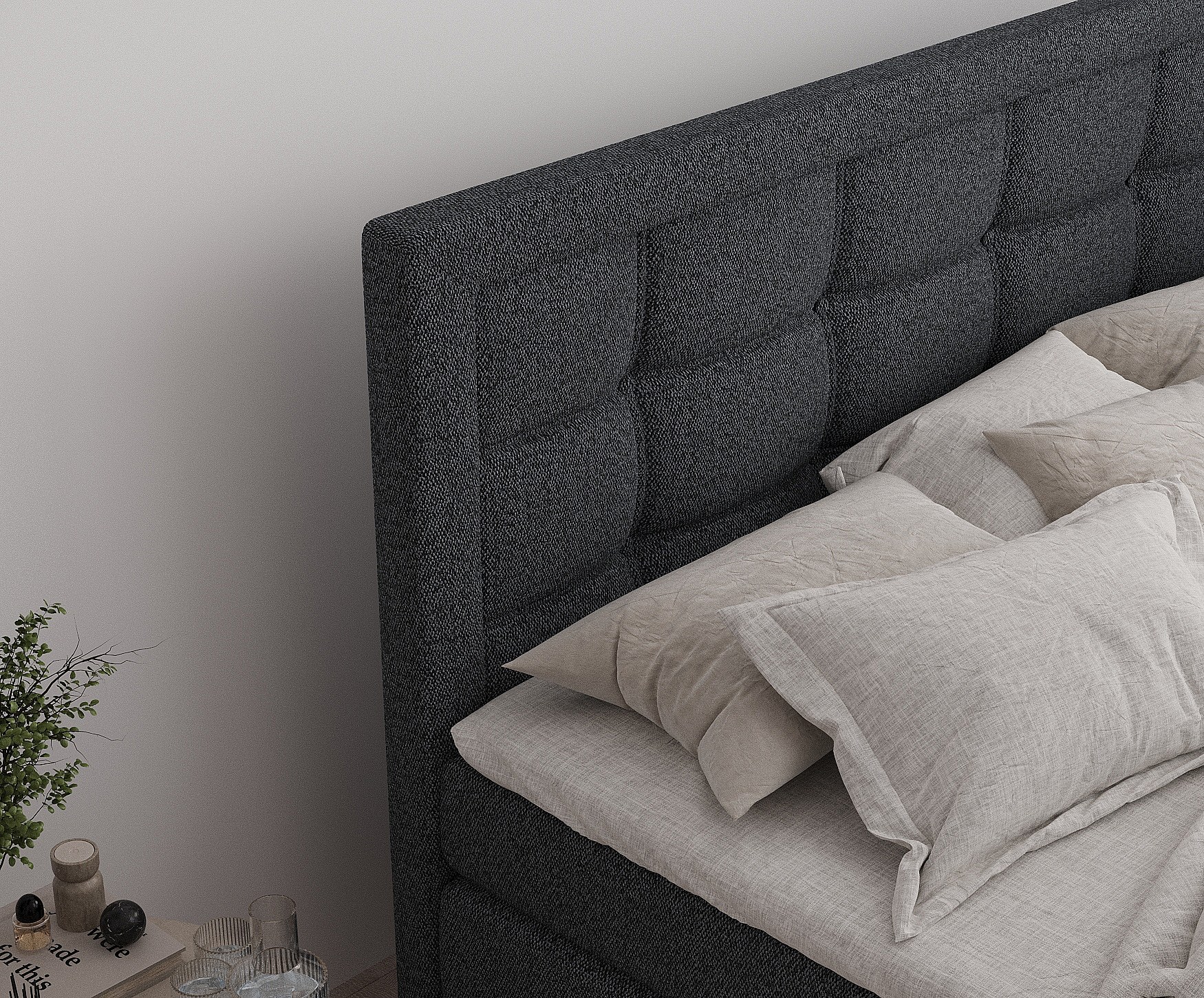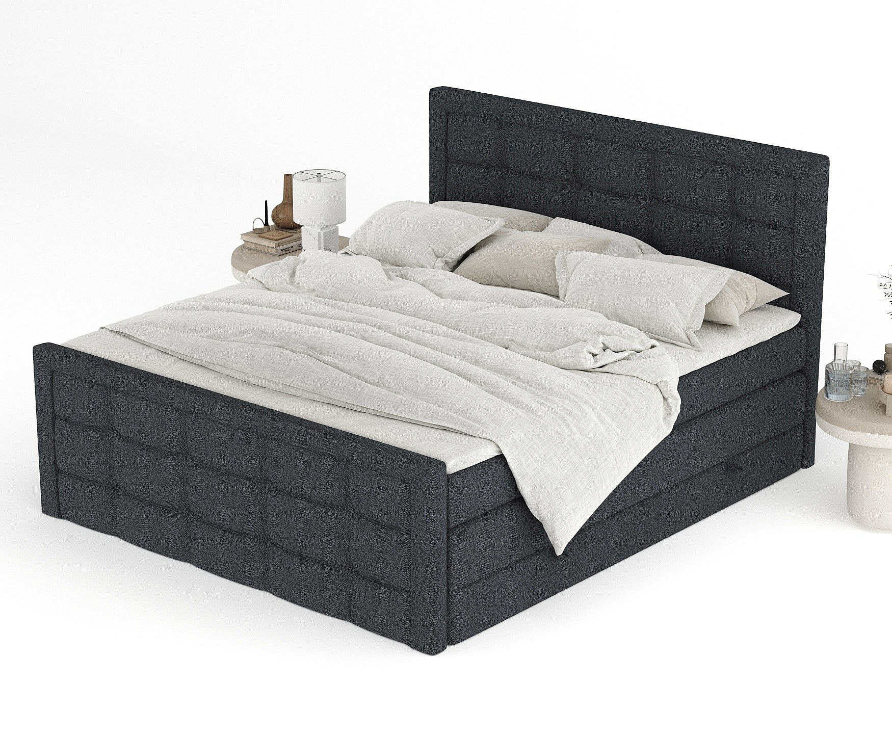 Lit boxspring en toile tissée Ambrosia - matelas - surmatelas - 160x200 cm - noir