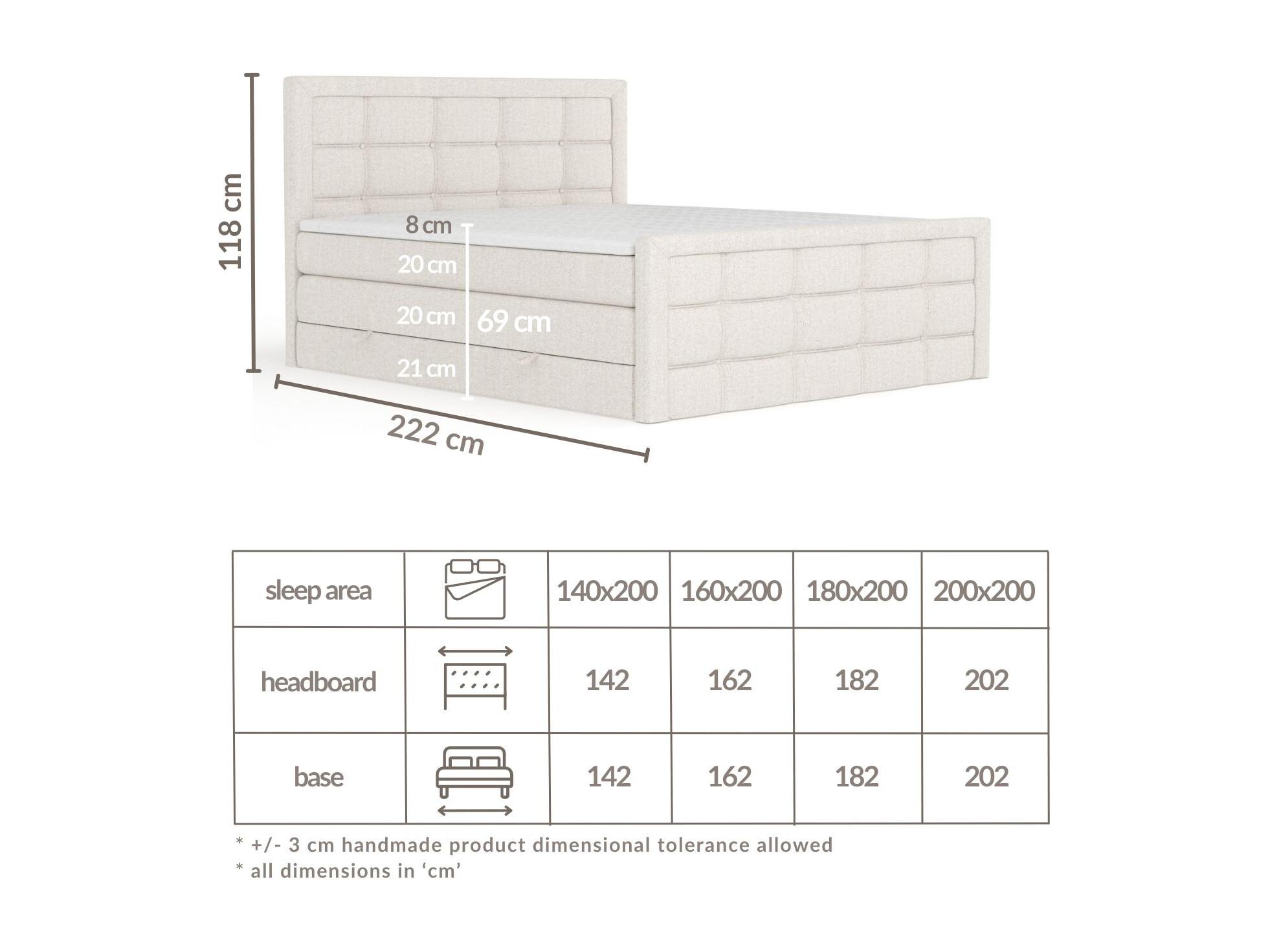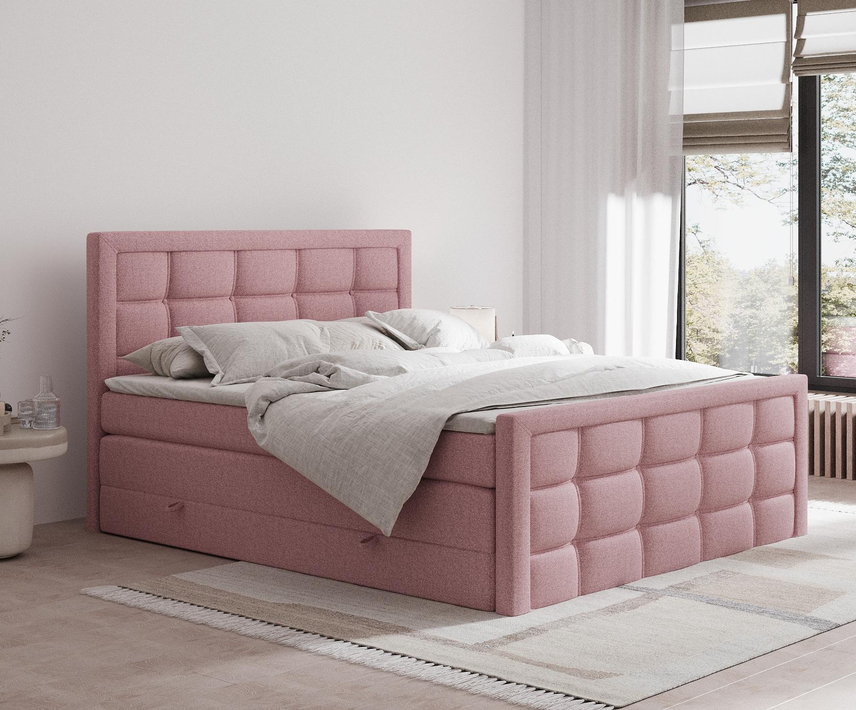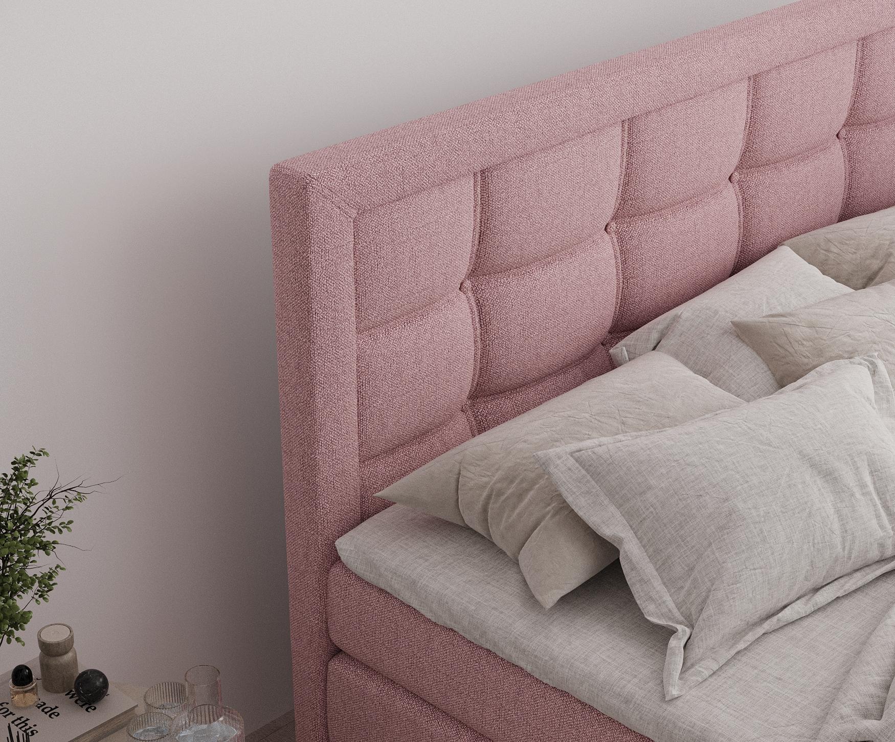 Lit boxspring en toile tissée Ambrosia - matelas - surmatelas - 160x200 cm - rose