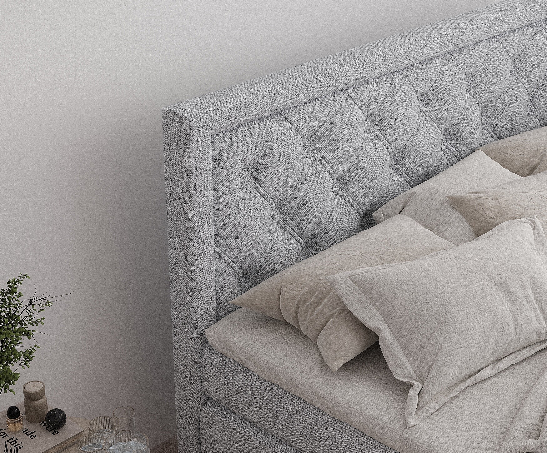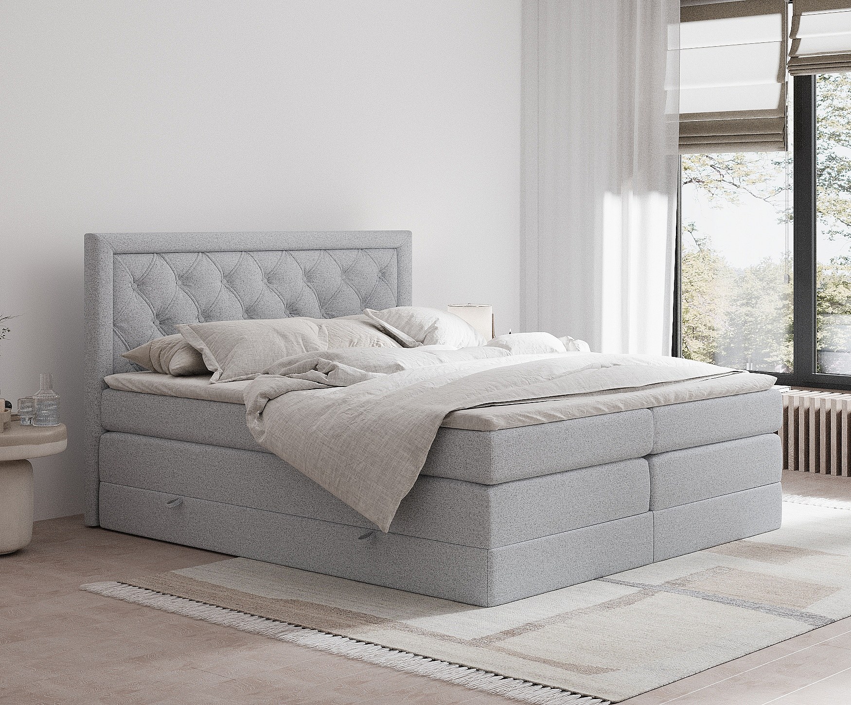 Lit boxspring en toile tissée Aurelia - matelas - surmatelas - 200x200 cm - gris clair