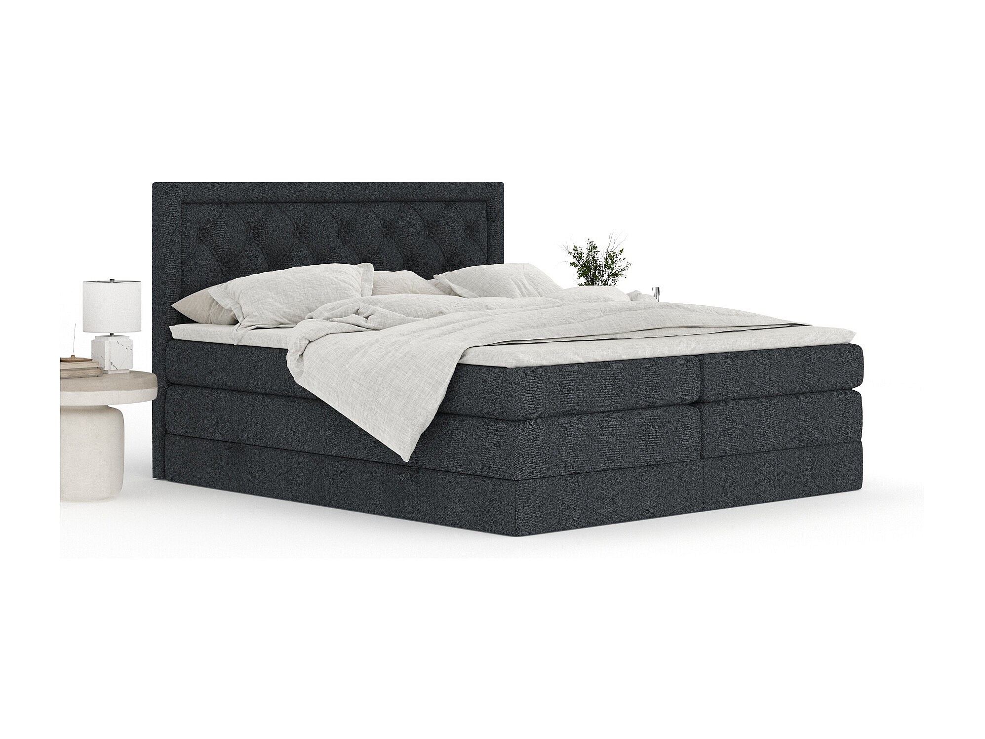 Lit boxspring en toile tissée Aurelia - matelas - surmatelas - 200x200 cm - noir