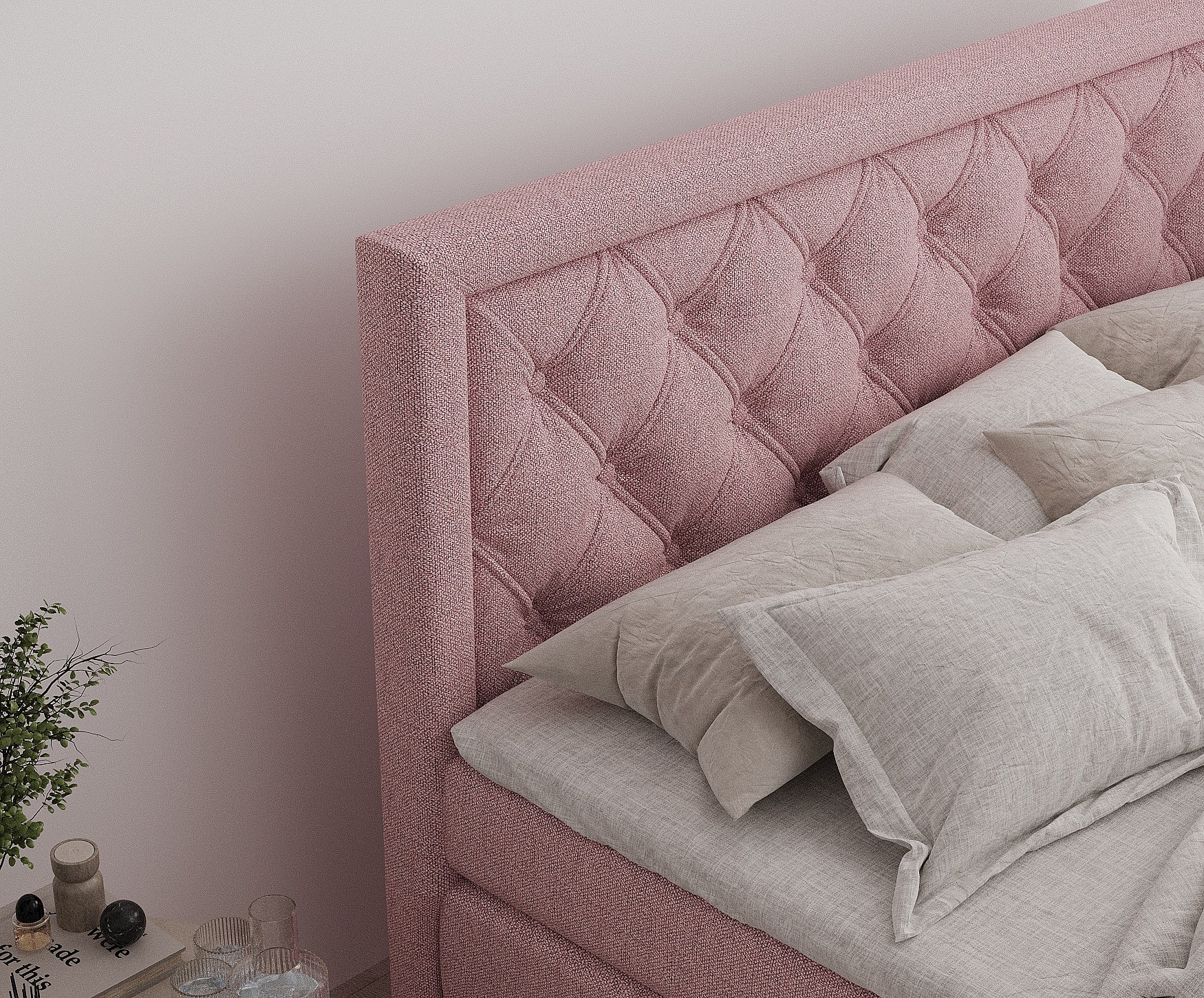 Lit boxspring en toile tissée Aurelia - matelas - surmatelas - 200x200 cm - rose