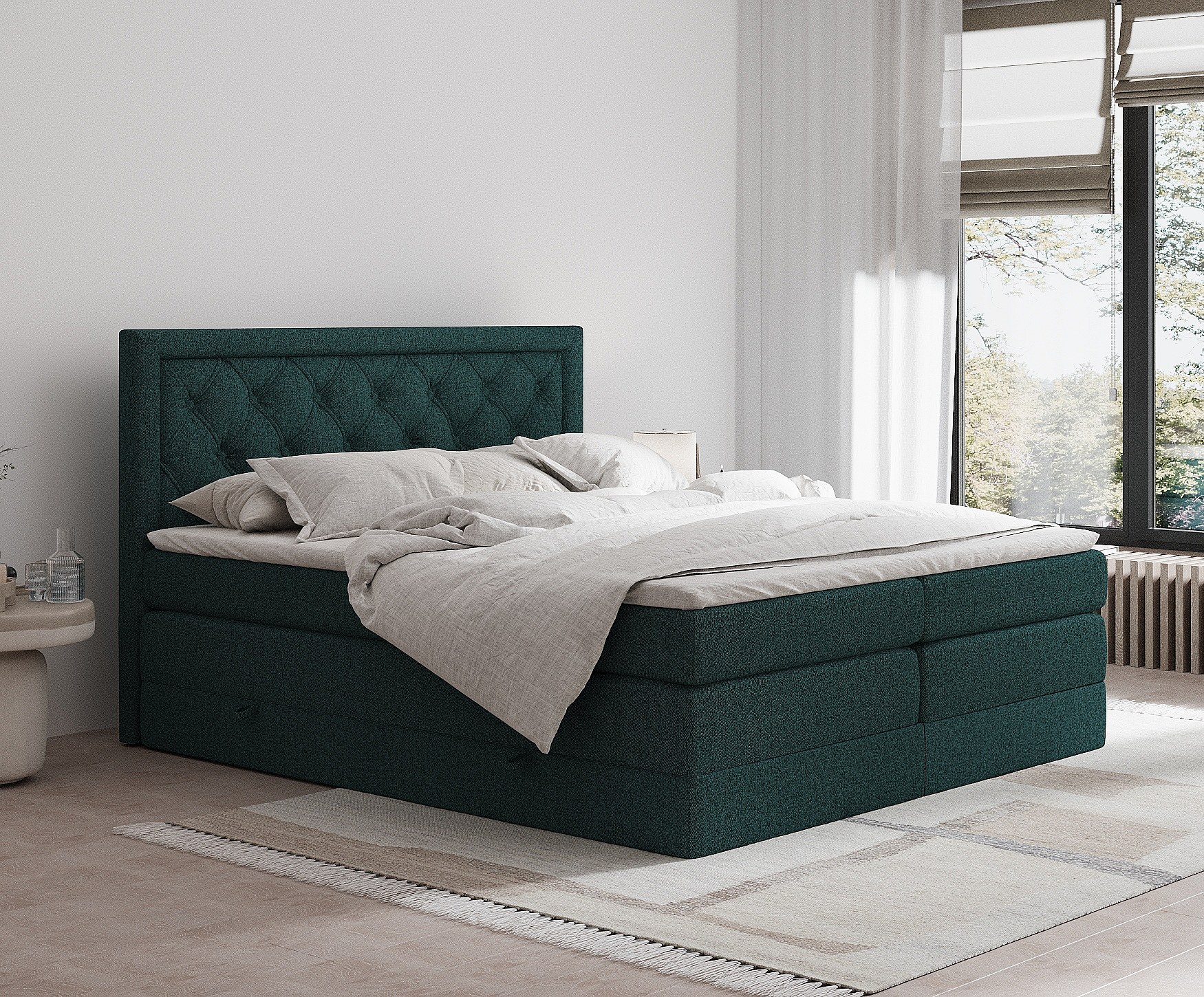 Lit boxspring en toile tissée Aurelia - matelas - surmatelas - 200x200 cm - vert
