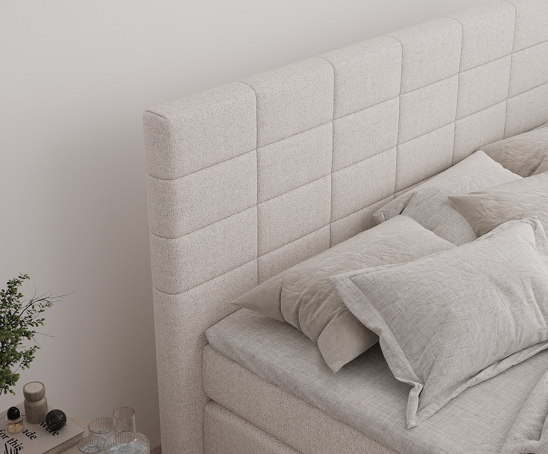 Lit boxspring en toile tissée Ava - matelas - surmatelas - 140x200 cm - beige