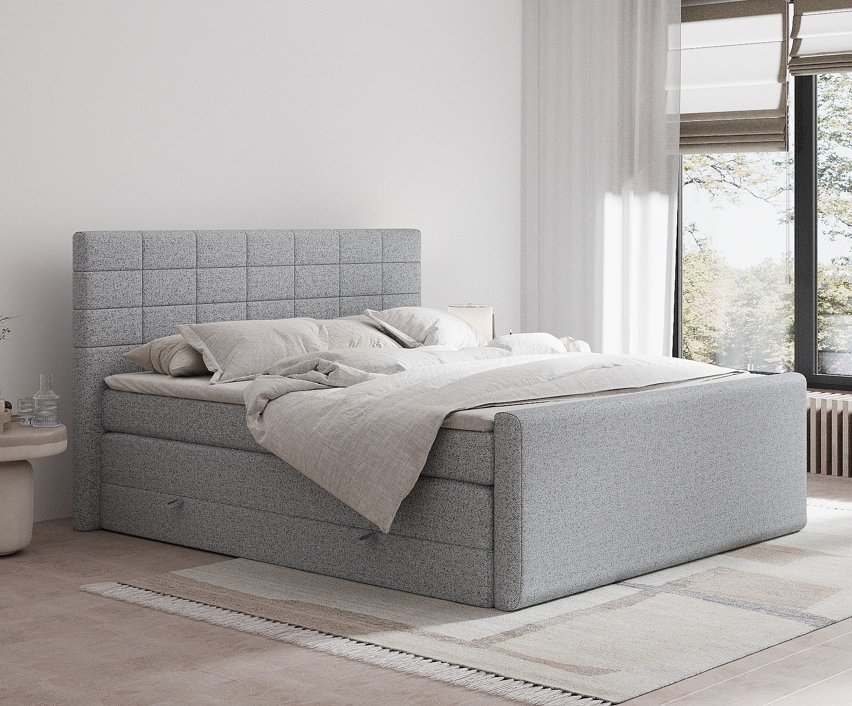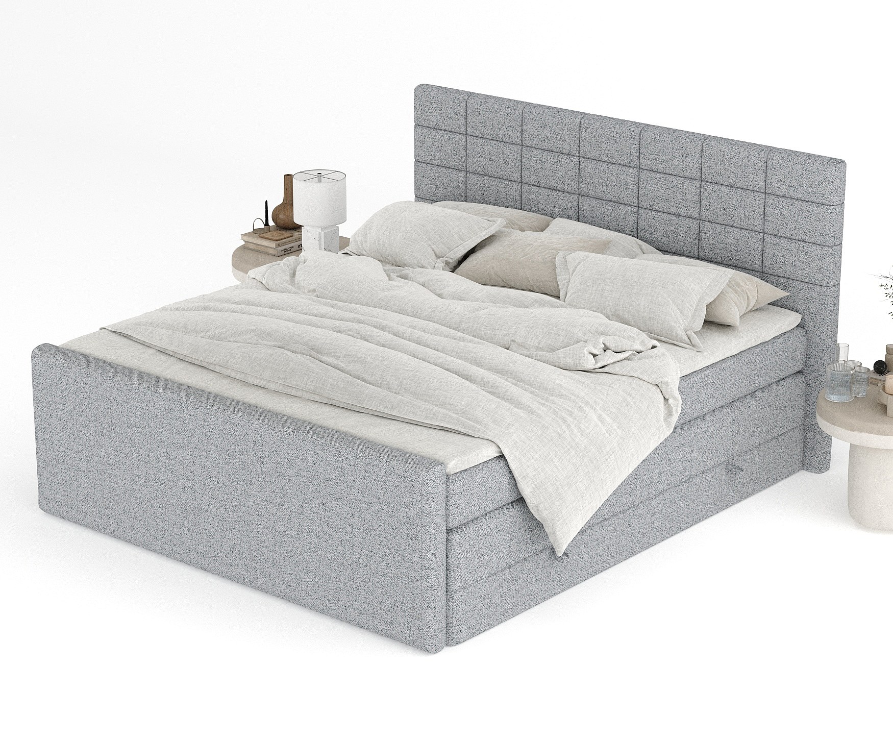 Lit boxspring en toile tissée Ava - matelas - surmatelas - 140x200 cm - gris
