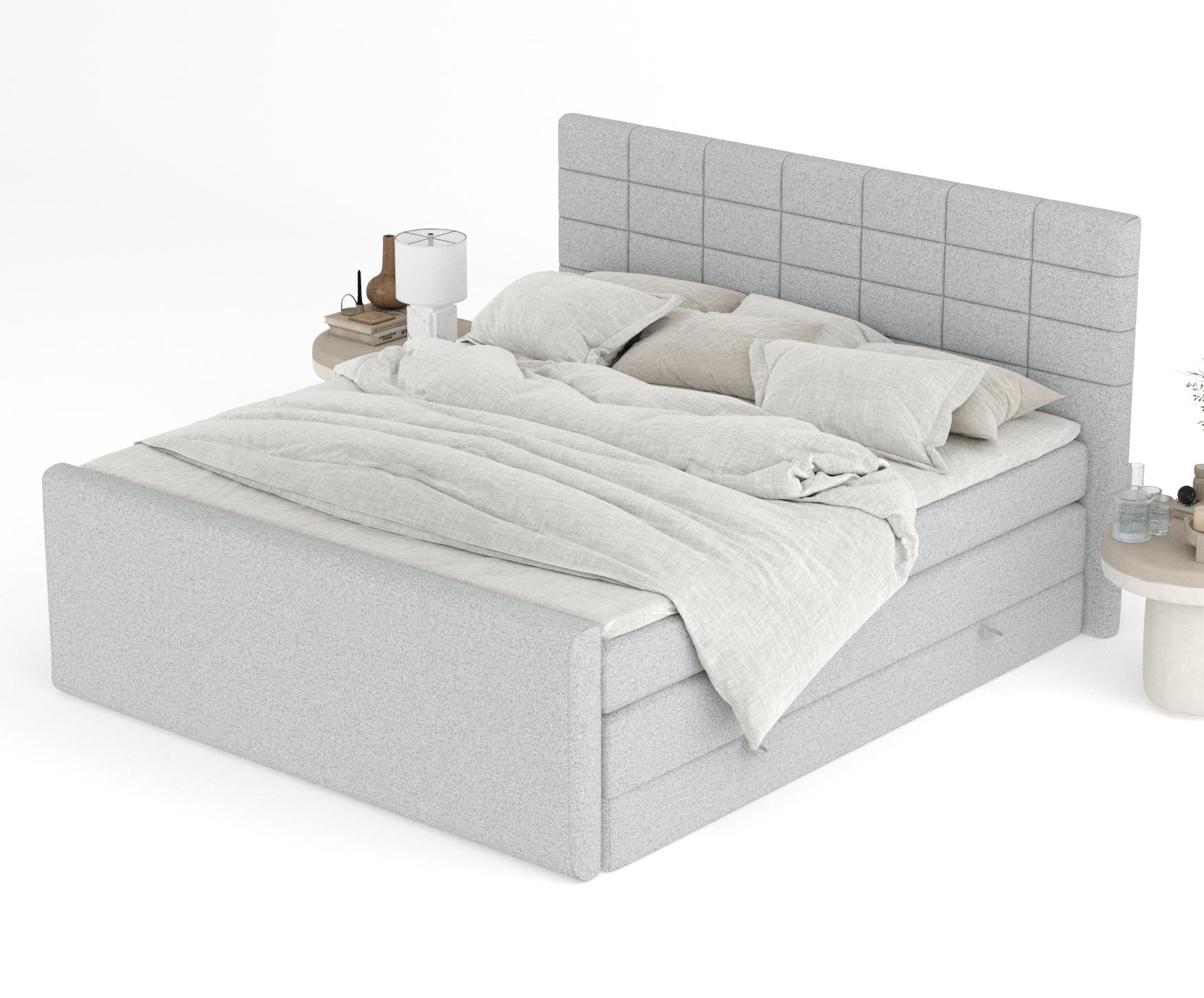 Lit boxspring en toile tissée Ava - matelas - surmatelas - 160x200 cm - gris clair