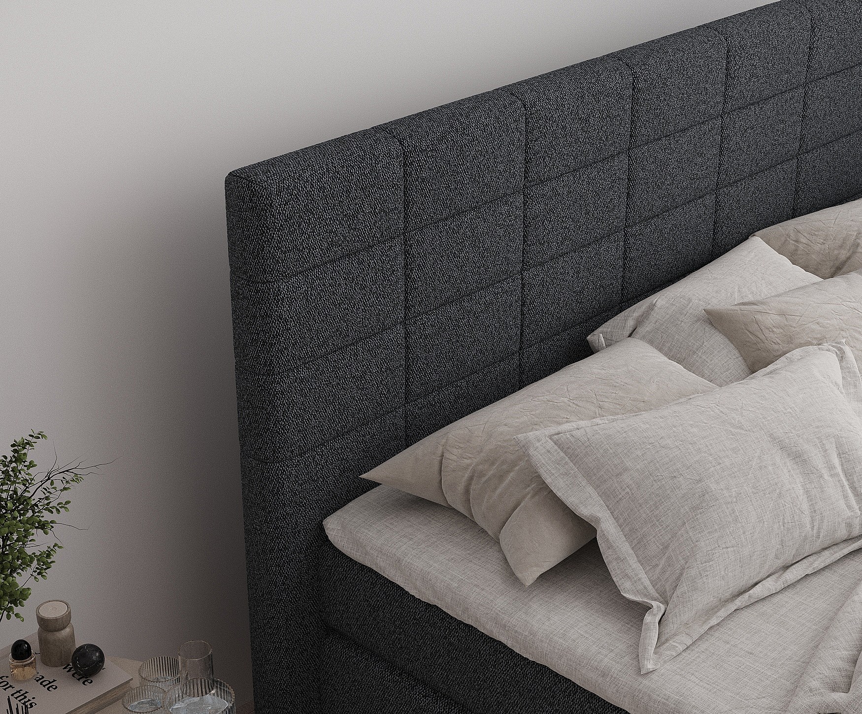 Lit boxspring en toile tissée Ava - matelas - surmatelas - 160x200 cm - noir