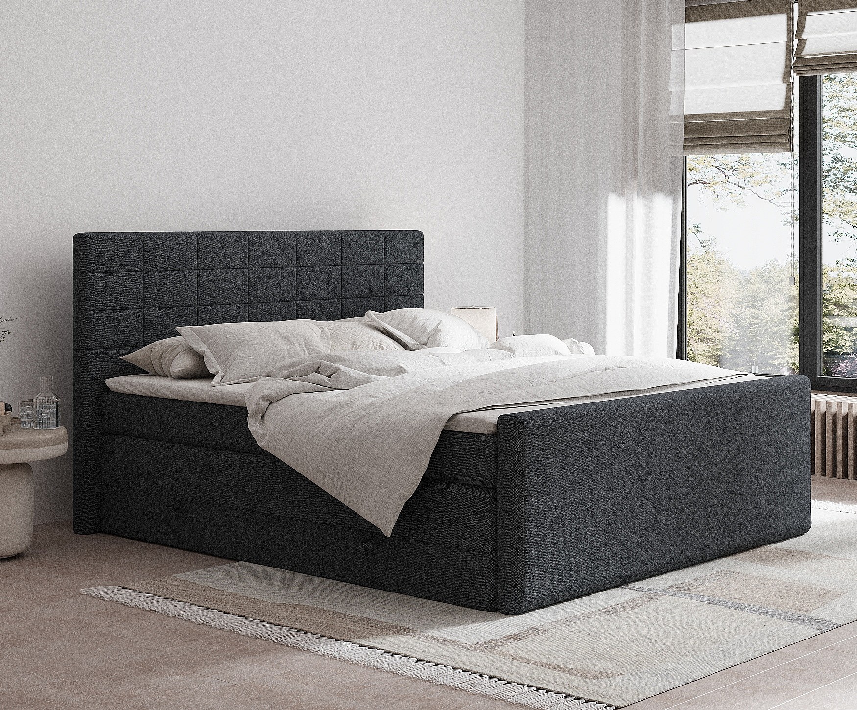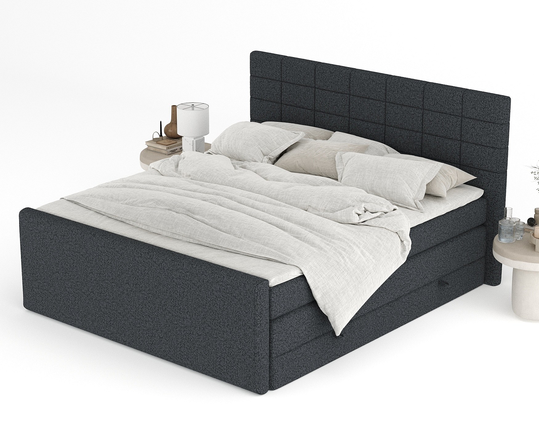 Lit boxspring en toile tissée Ava - matelas - surmatelas - 180x200 cm - noir