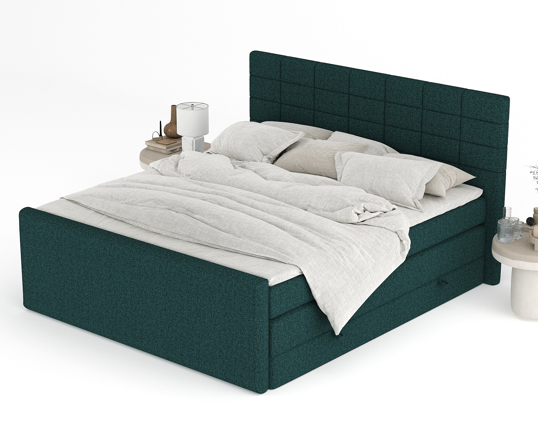 Lit boxspring en toile tissée Ava - matelas - surmatelas - 180x200 cm - vert