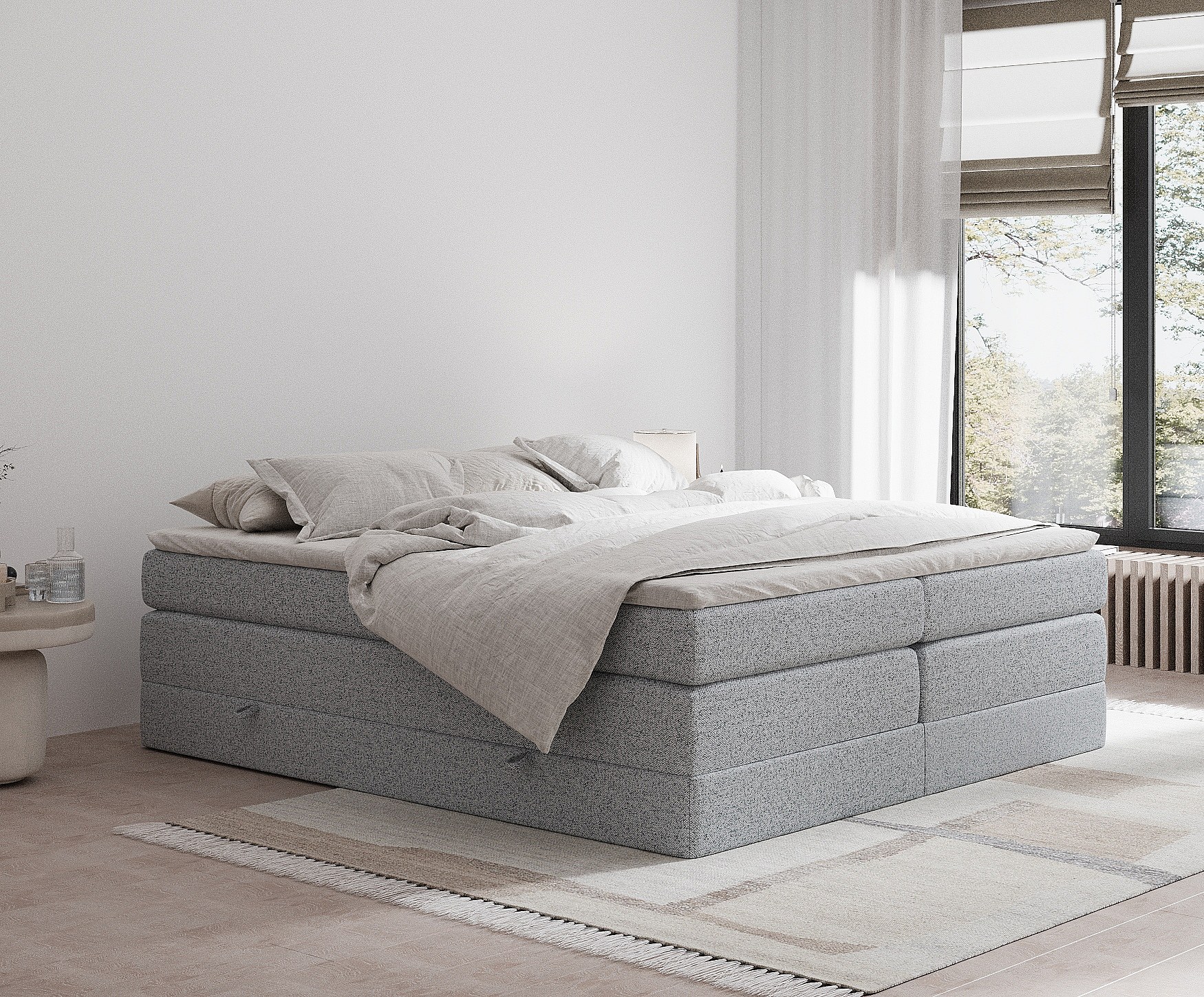 Lit boxspring en toile tissée Juniper - matelas - surmatelas - 140x200 cm - gris