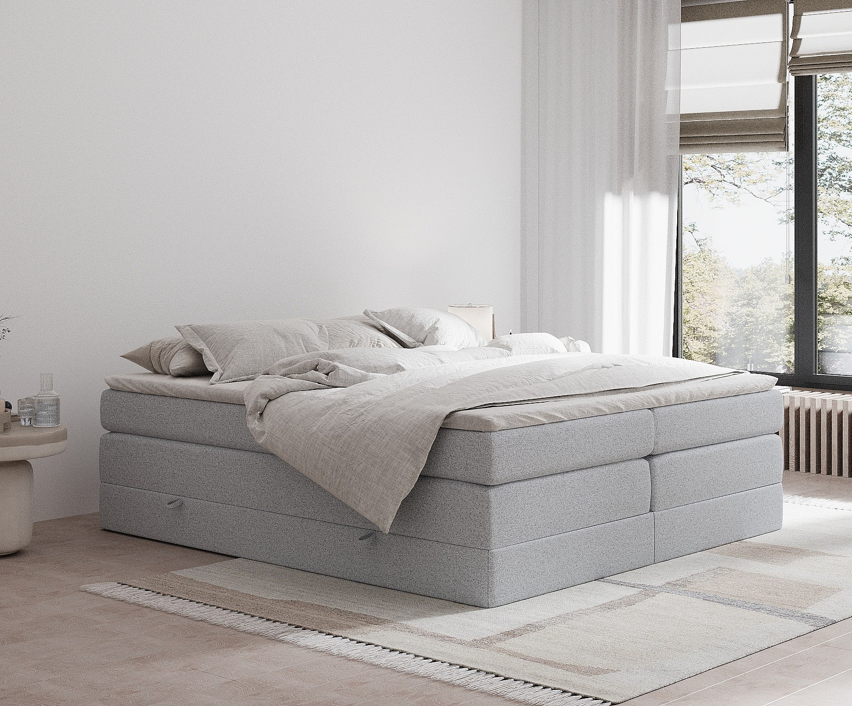 Lit boxspring en toile tissée Juniper - matelas - surmatelas - 160x200 cm - gris clair