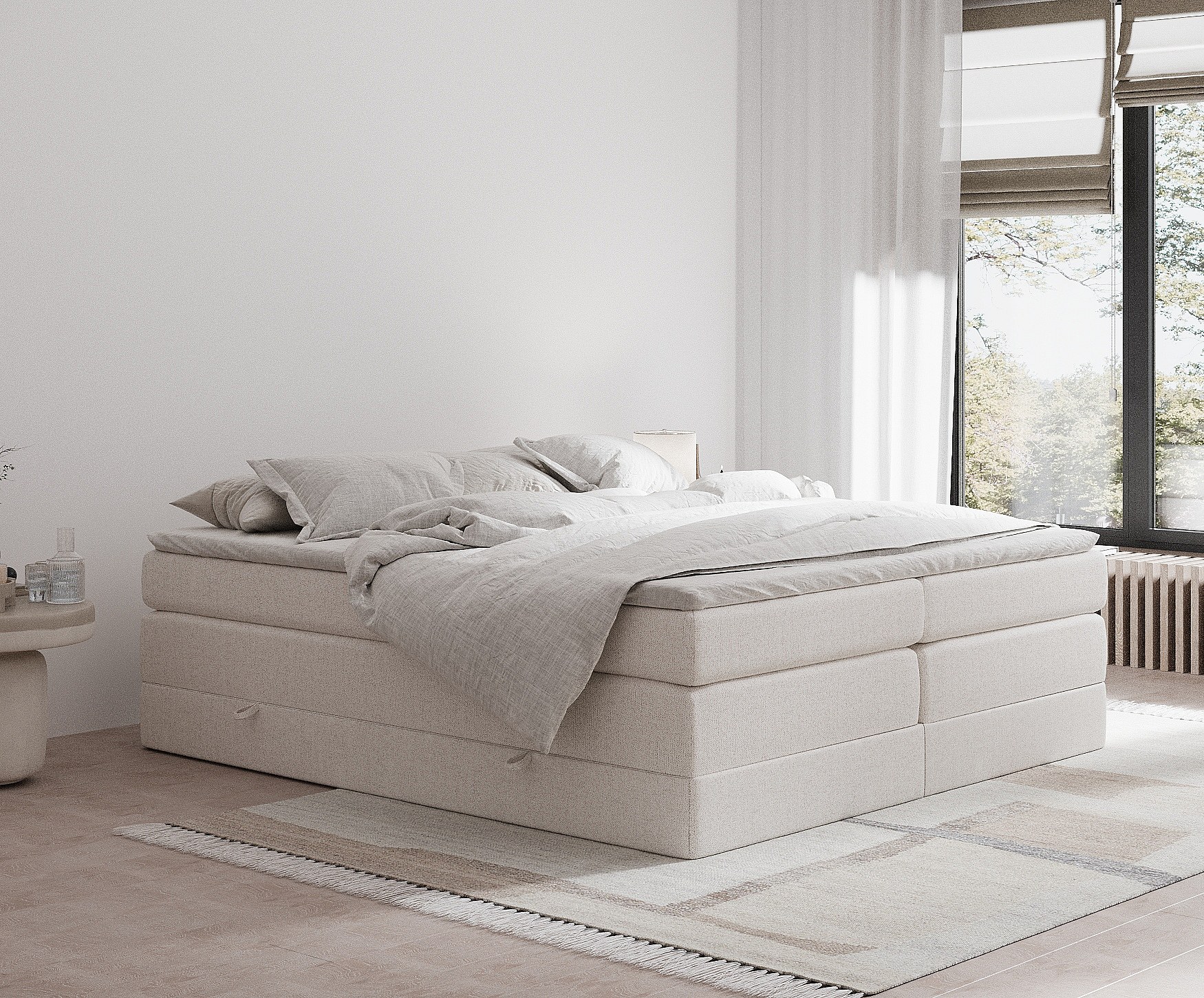 Lit boxspring en toile tissée Juniper - matelas - surmatelas - 180x200 cm - beige