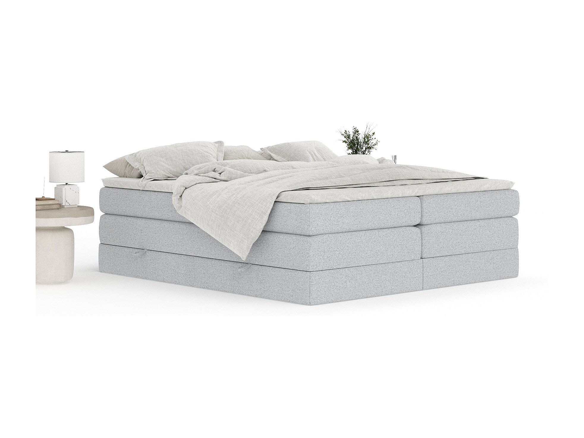 Lit boxspring en toile tissée Juniper - matelas - surmatelas - 180x200 cm - gris clair
