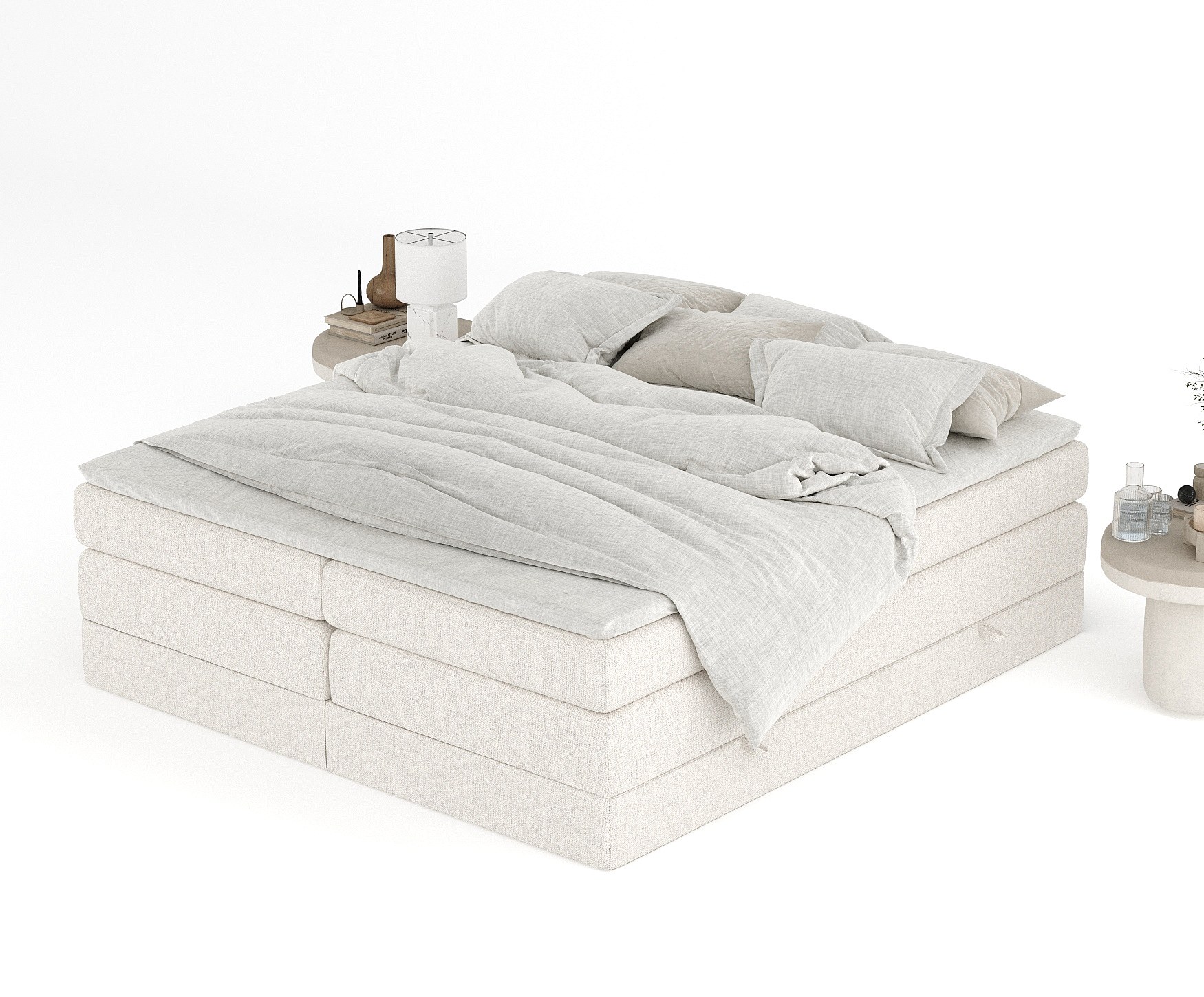 Lit boxspring en toile tissée Juniper - matelas - surmatelas - 200x200 cm - beige