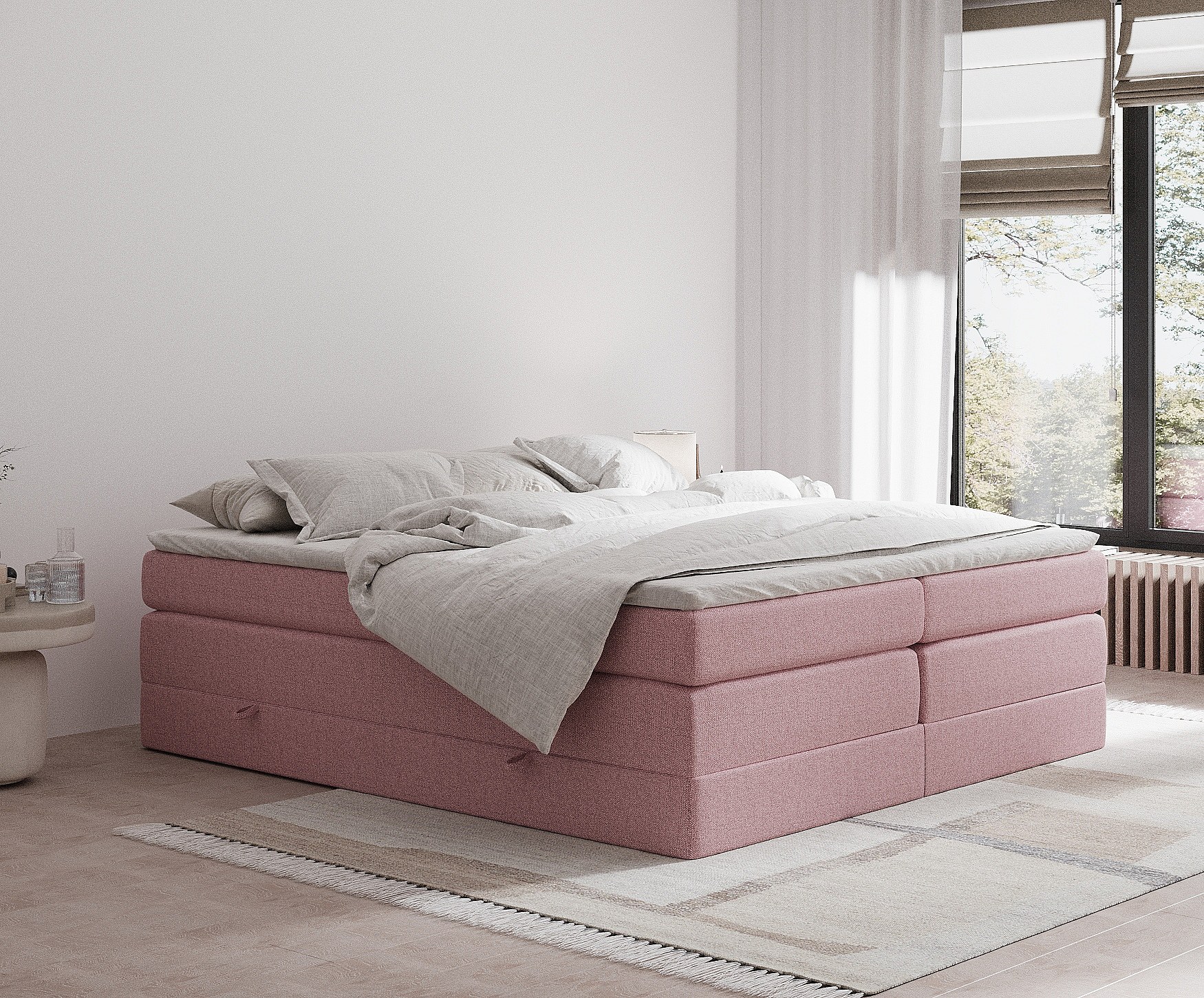 Lit boxspring en toile tissée Juniper - matelas - surmatelas - 200x200 cm - rose