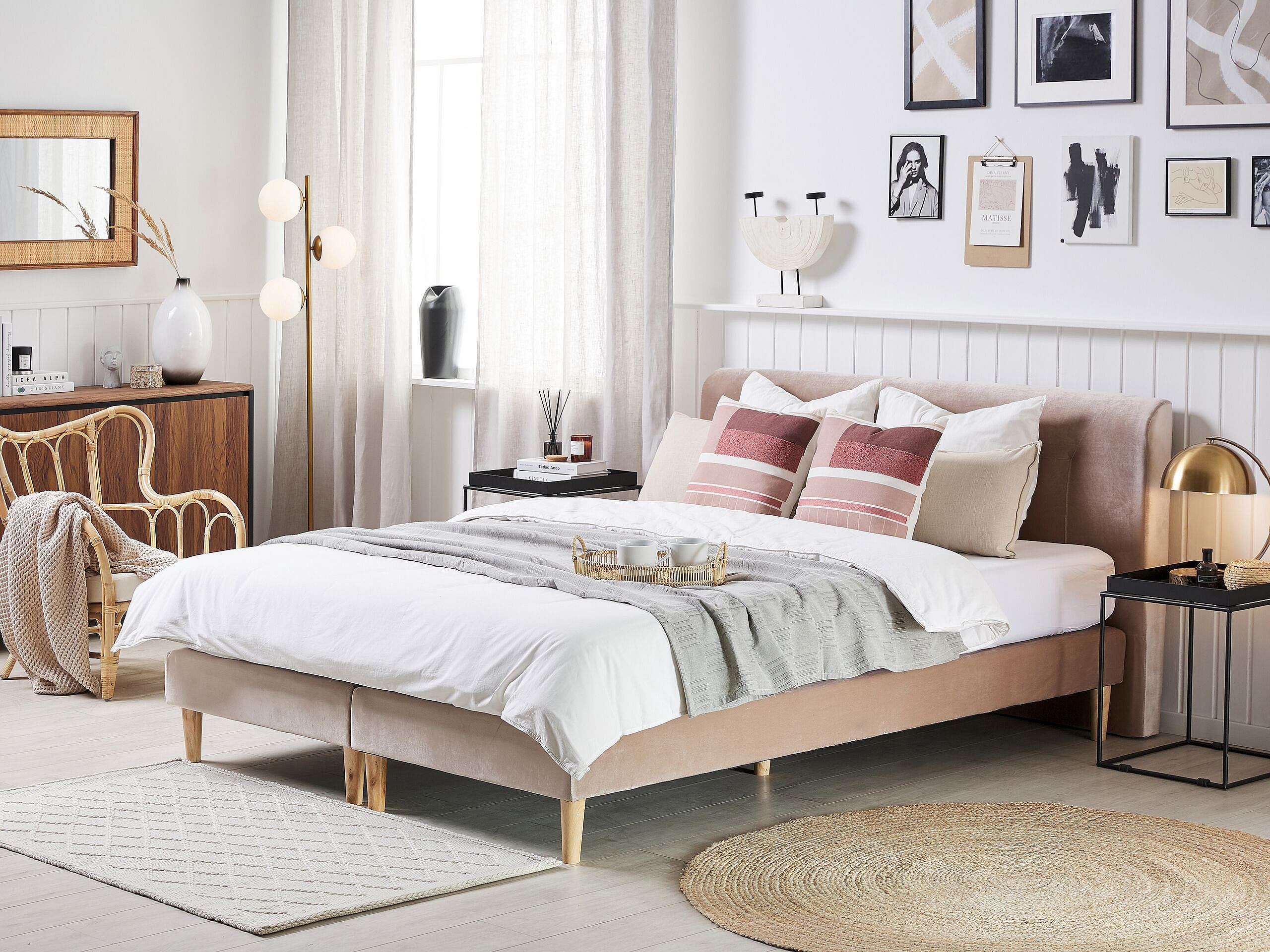 Lit Boxspring Velours MARQUISE 180 x 200 cm Beige