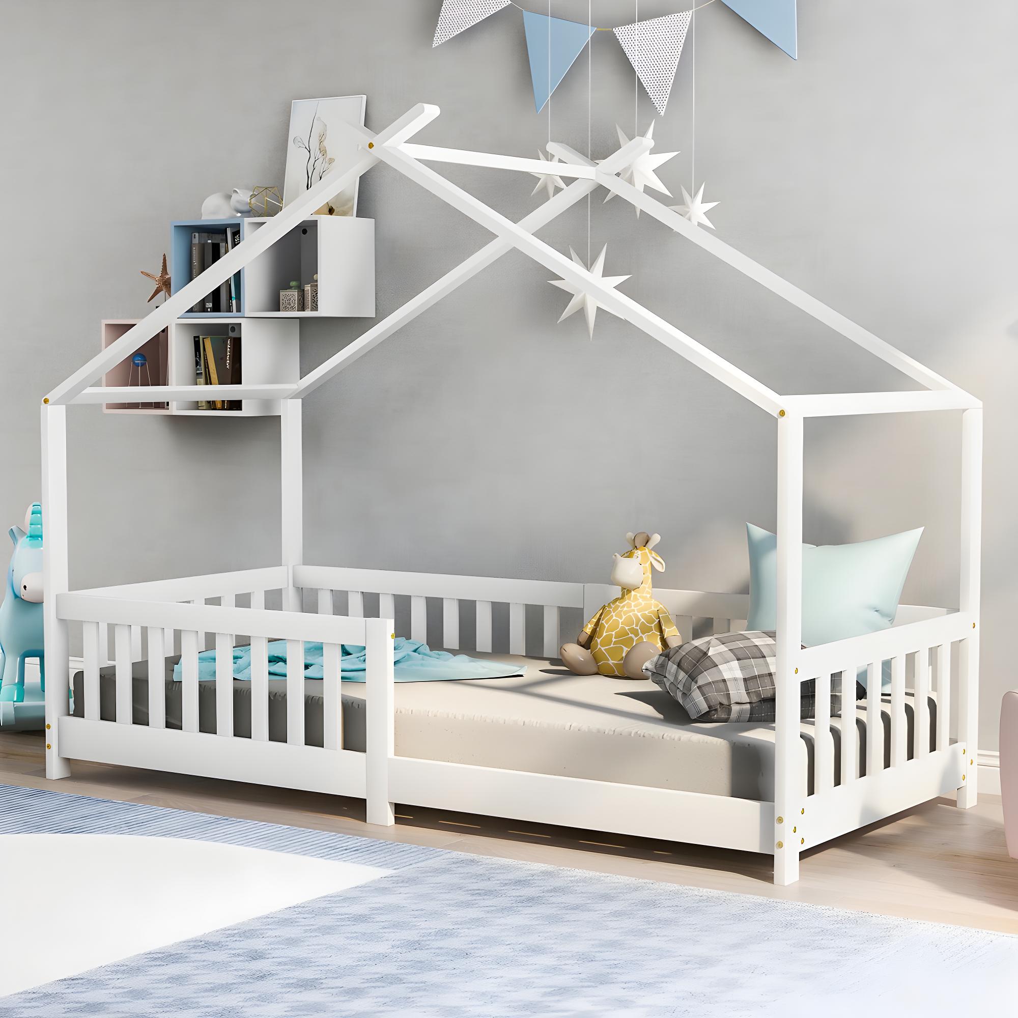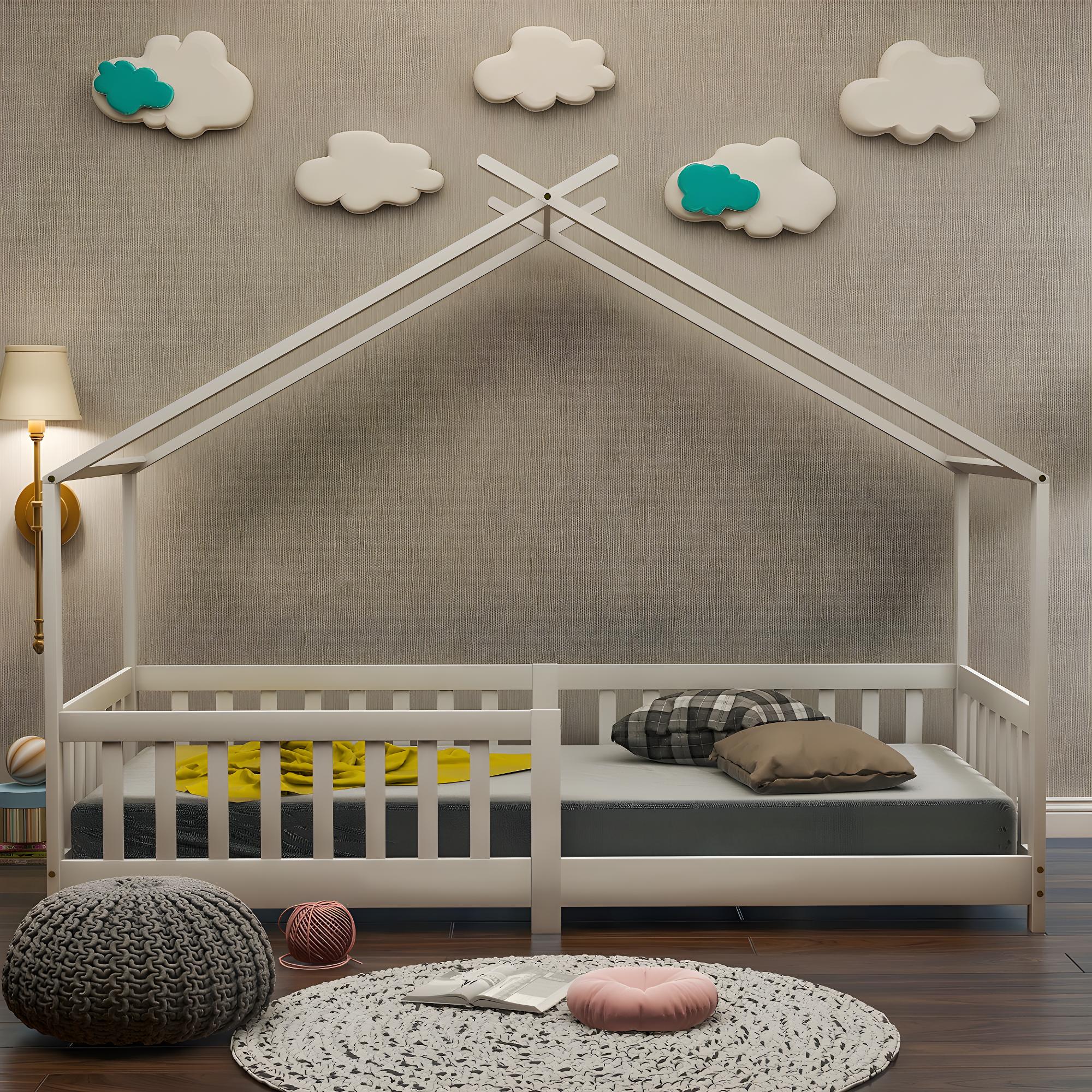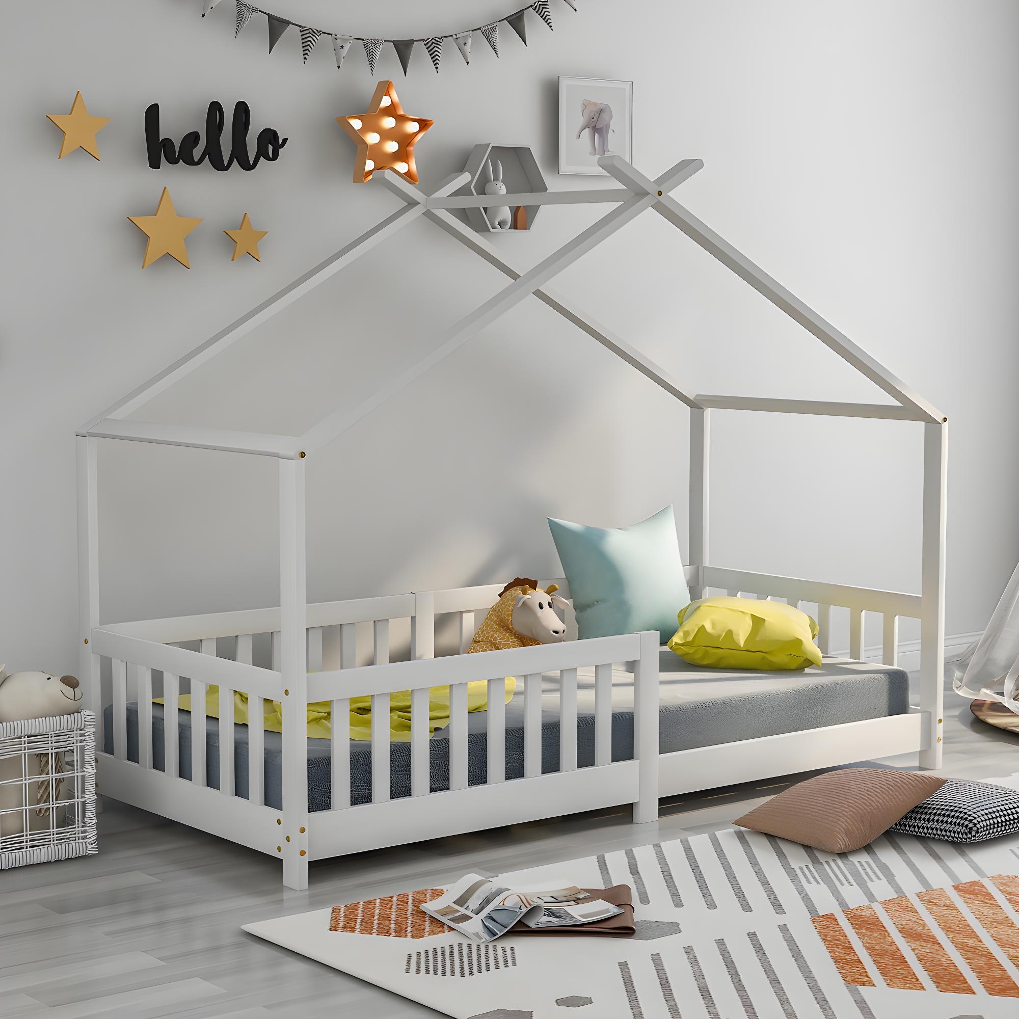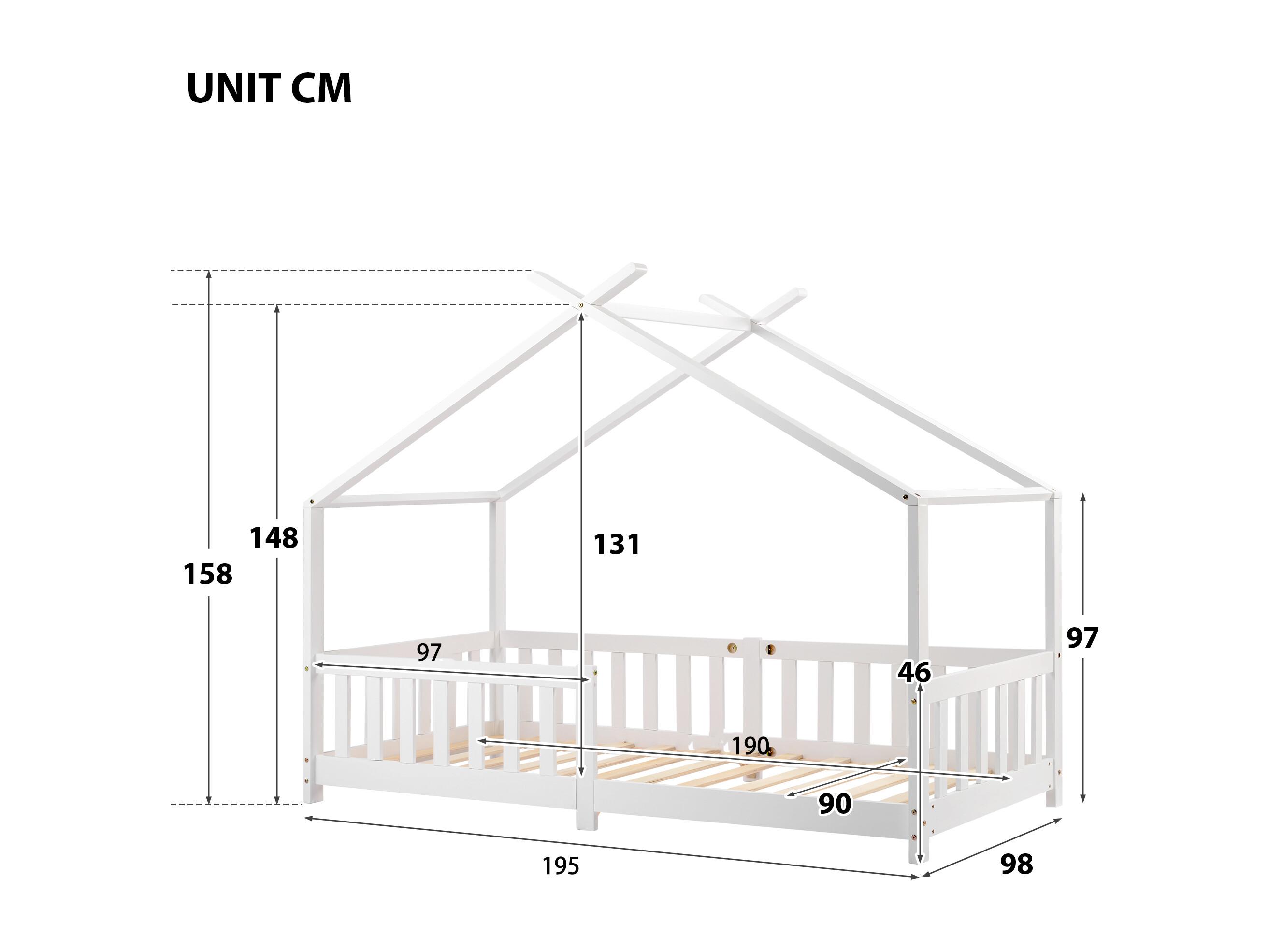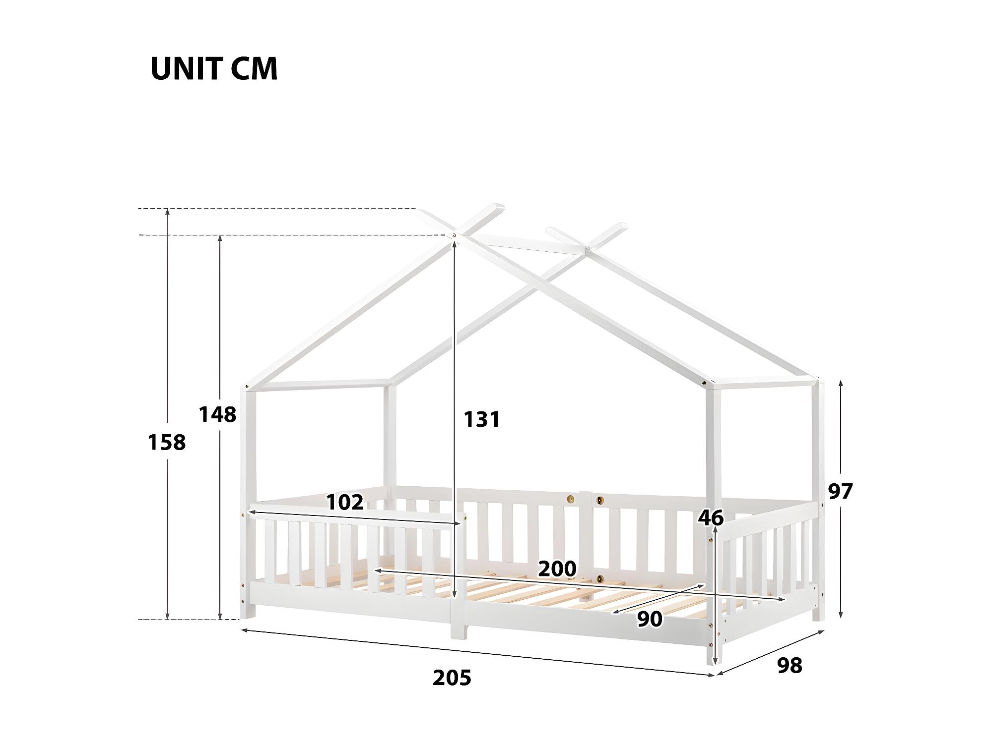 Lit cabane avec grille - Blanc 200x90 cm - Sweiko