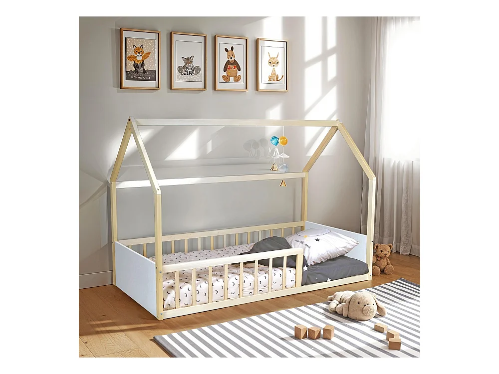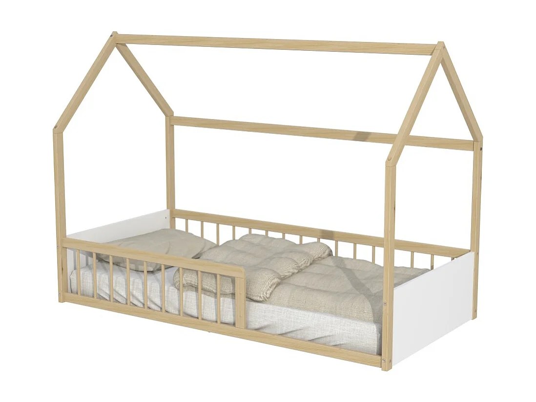 Lit cabane BALOO 90x190 + 1 sommier / Blanc et naturel