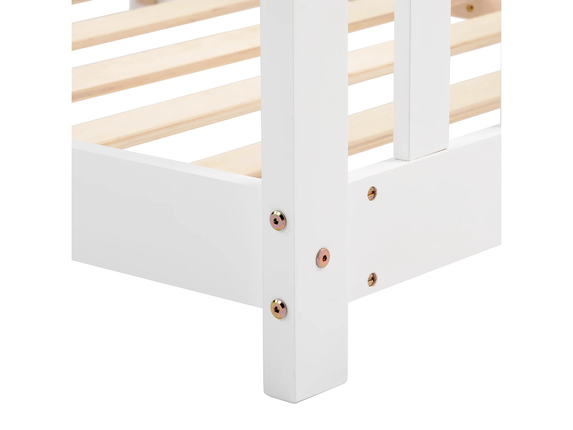 Lit Cabane Enfant 90x200cm, Lit d'enfant avec Barriere et Sommier à Lattes, Blanc