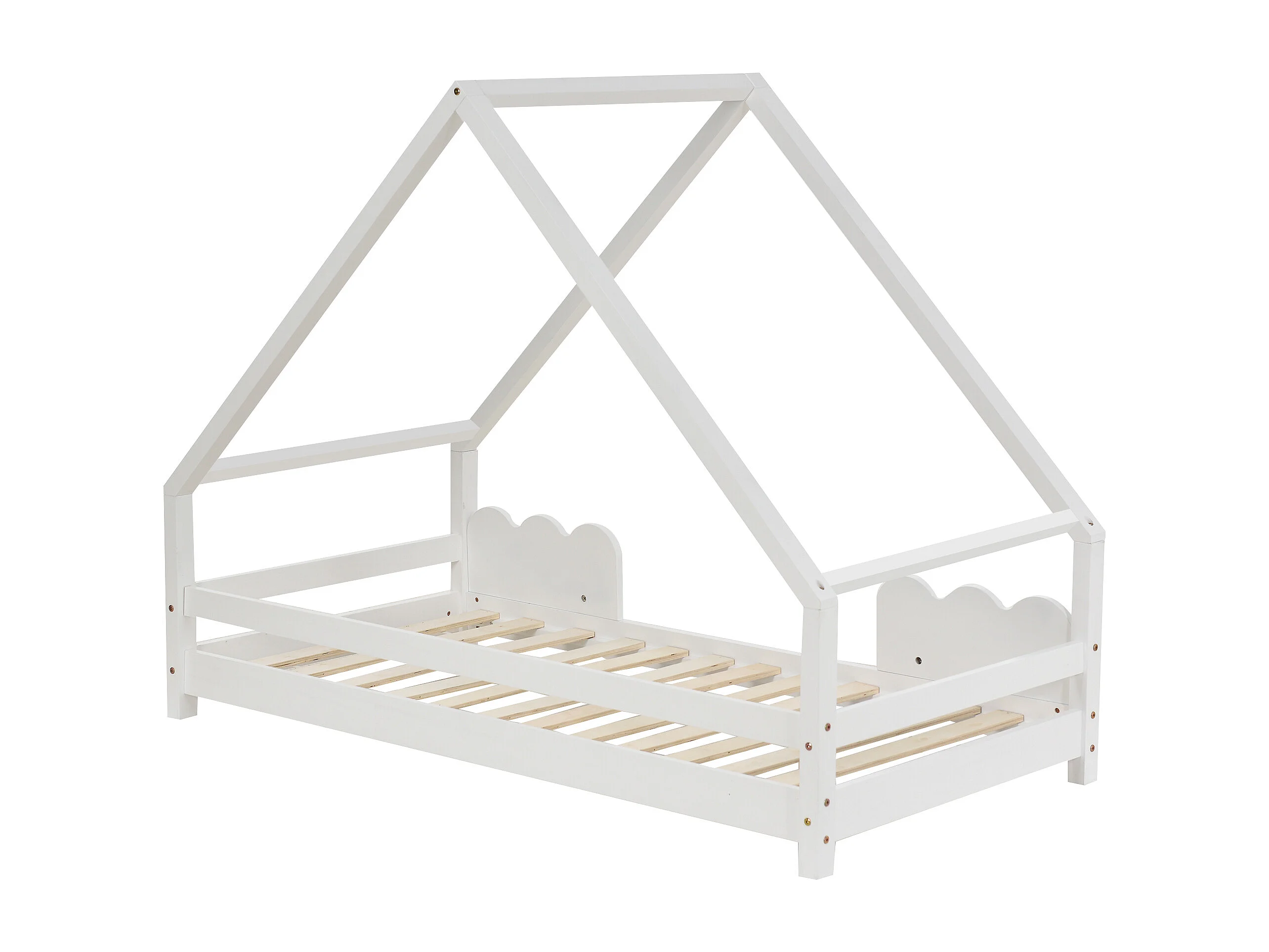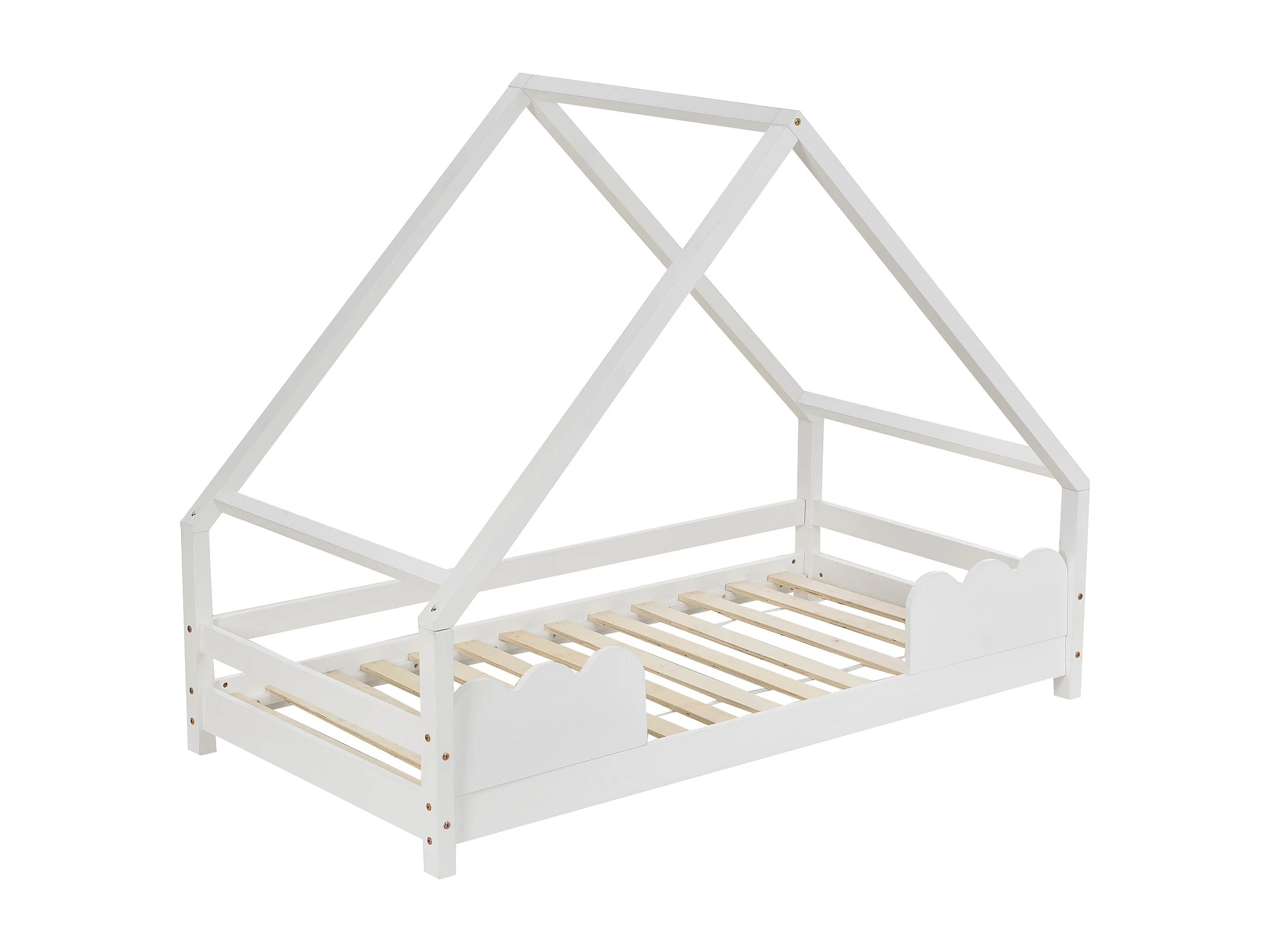 Lit cabane Lit enfant 90x200 cm avec protection anti-chute, sommier, bois blanc, sans matelas