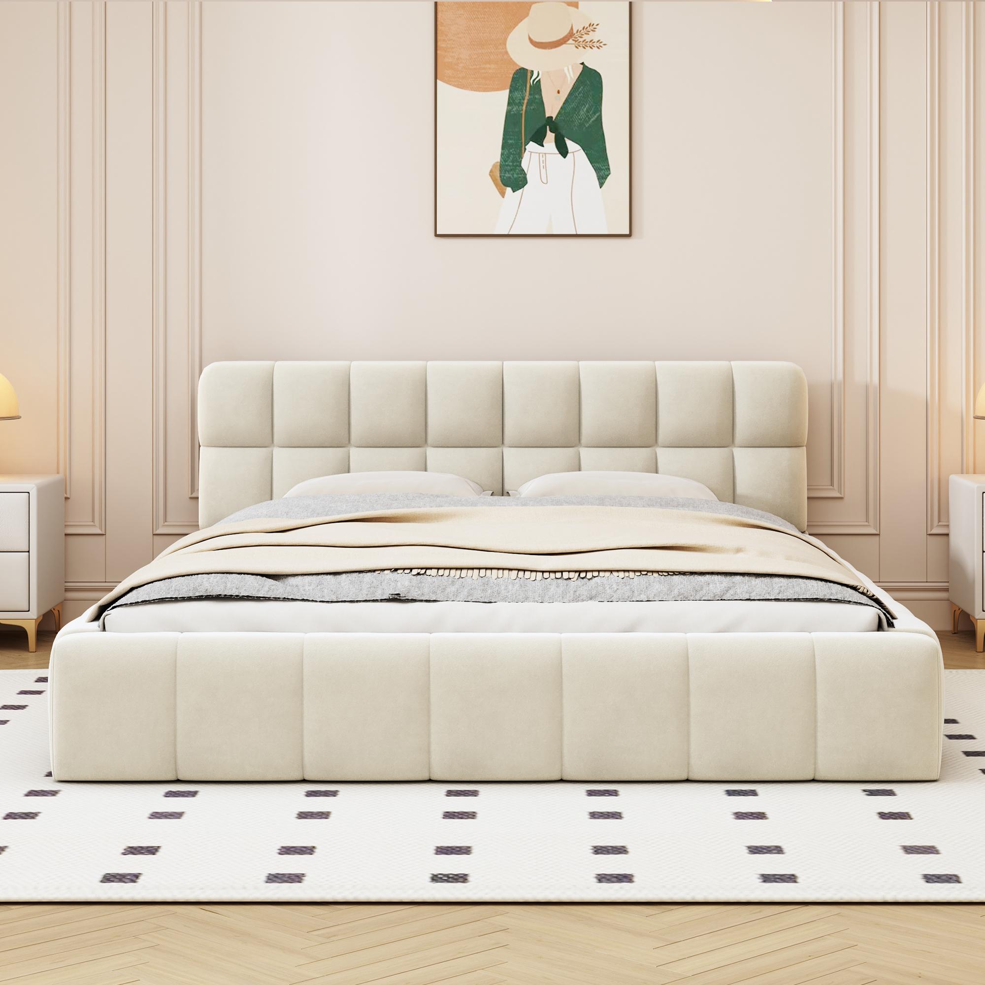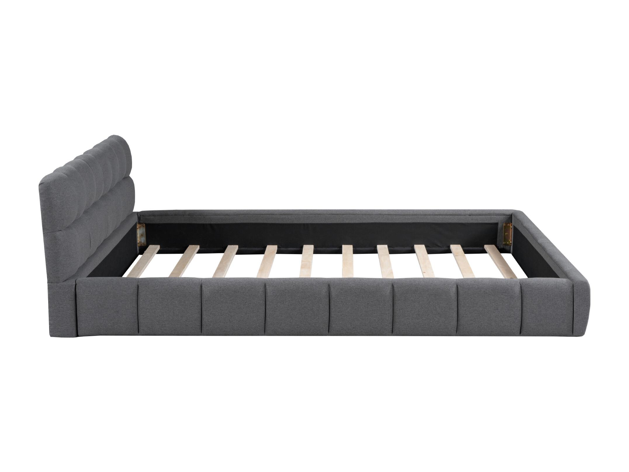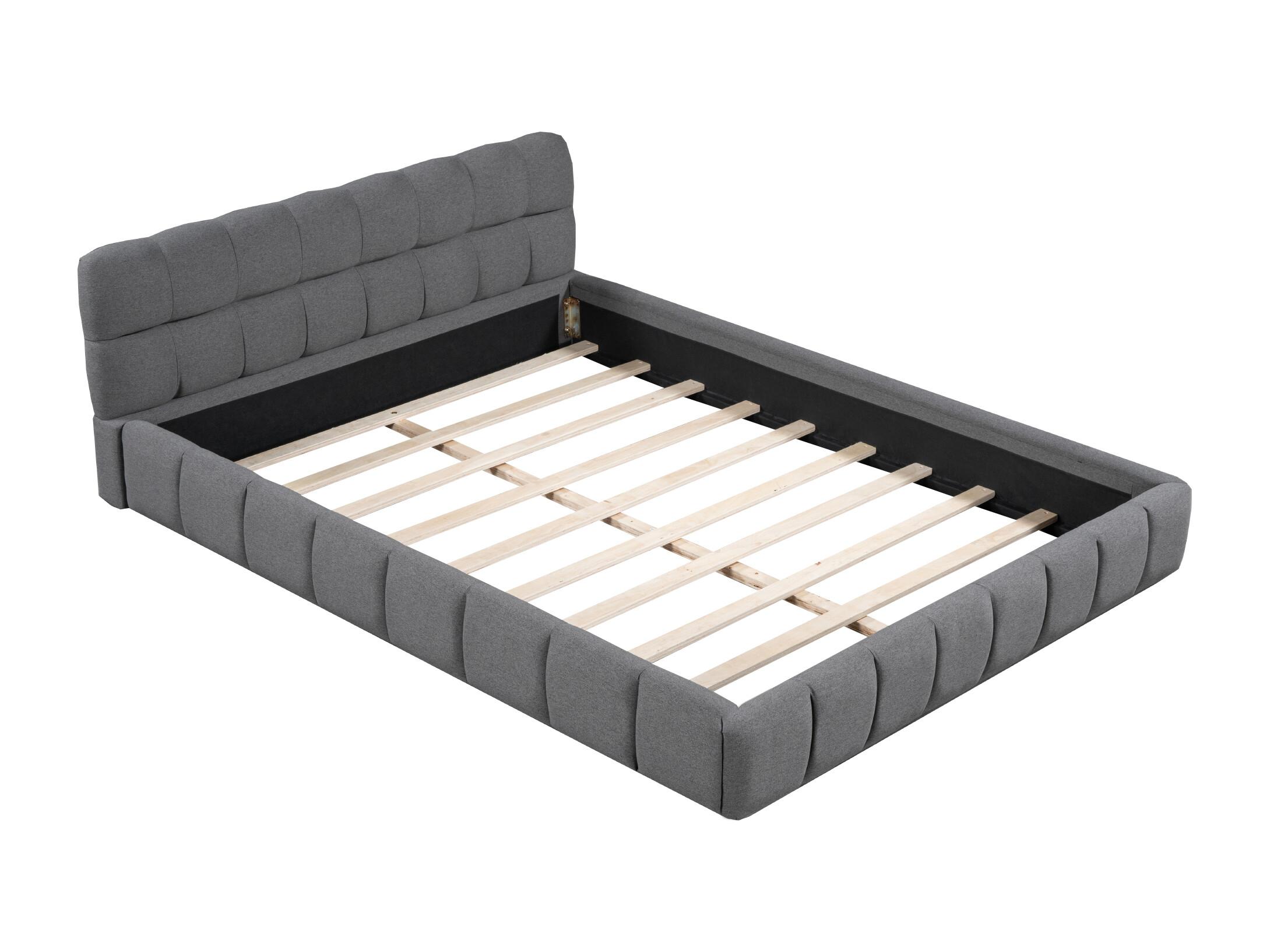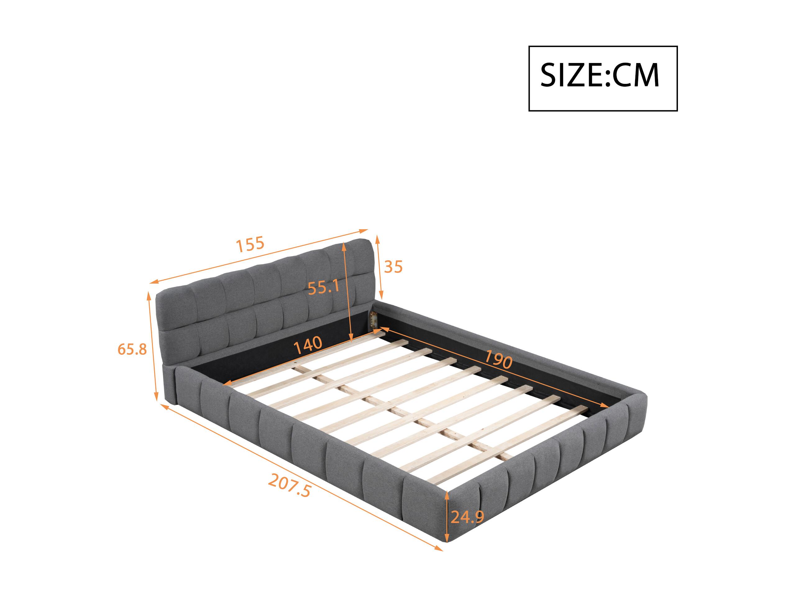 Lit capitonné 140 x 190 cm, Lit pour adolescent, Lit double avec dossier moelleux, Sommier en lin beige (Matelas non inclus)
