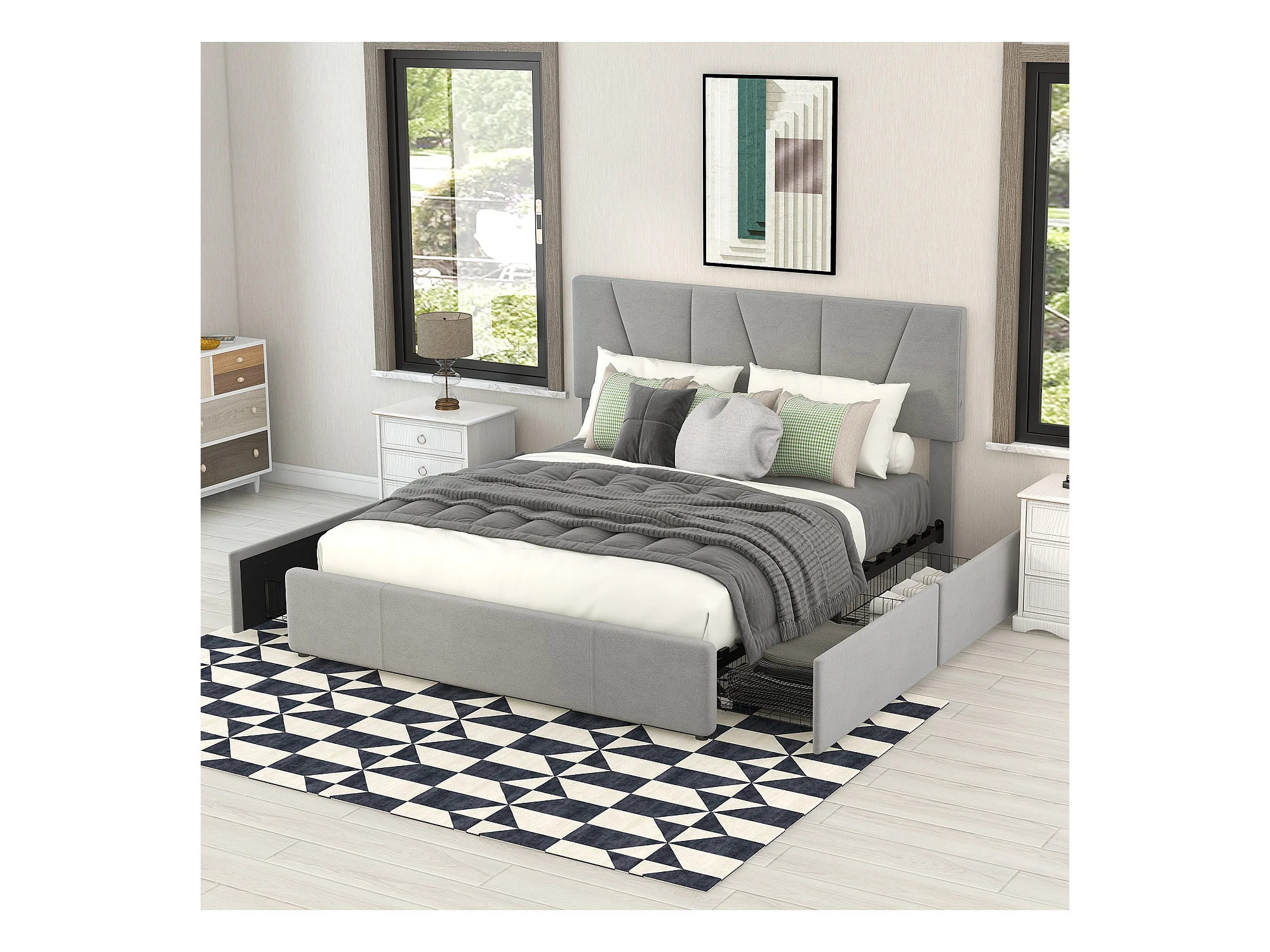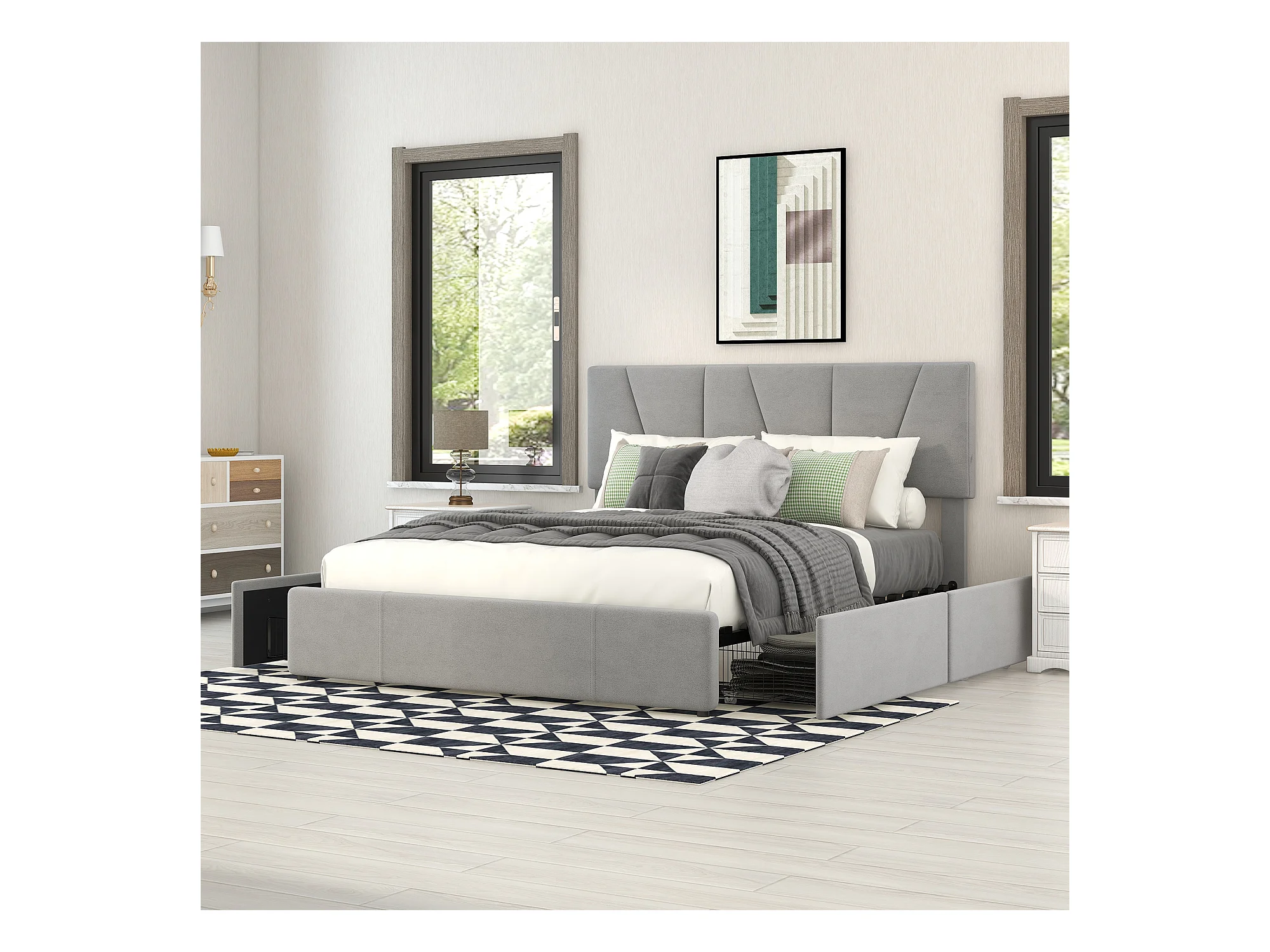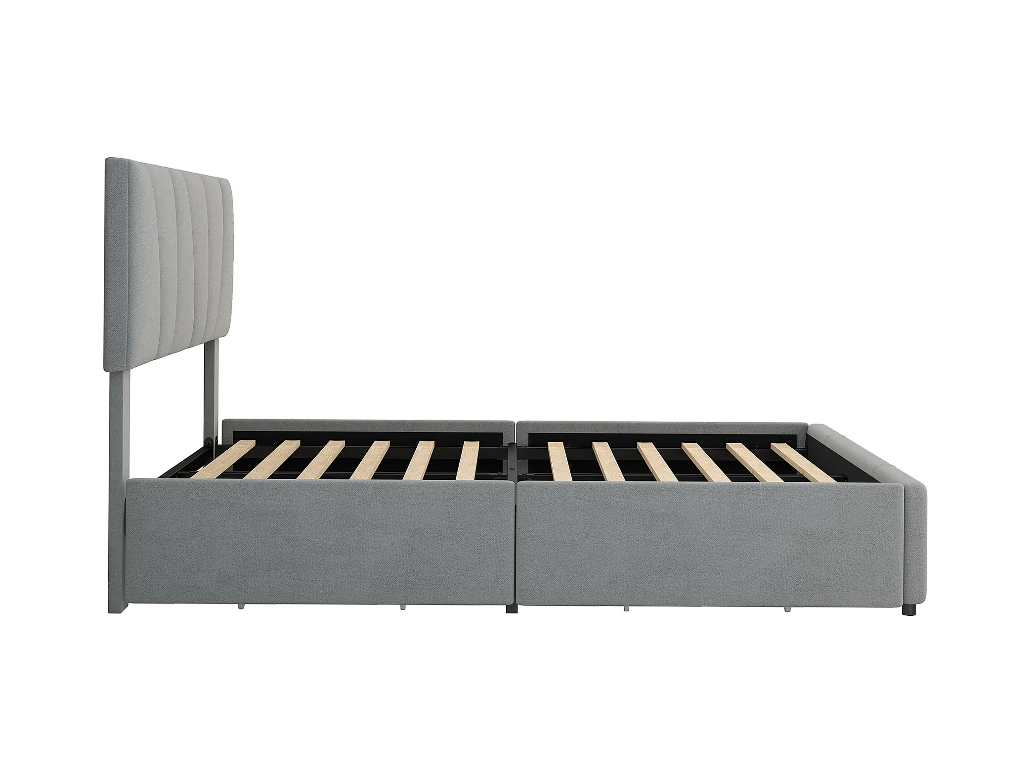 Lit double 140x200 cm - Lit adulte avec 4 tiroirs et tête de lit réglable - velours gris