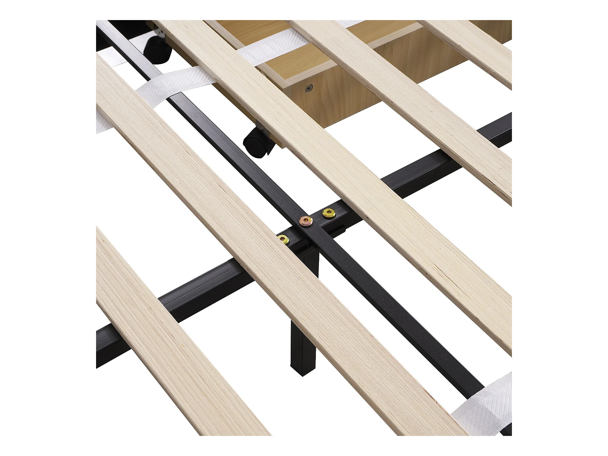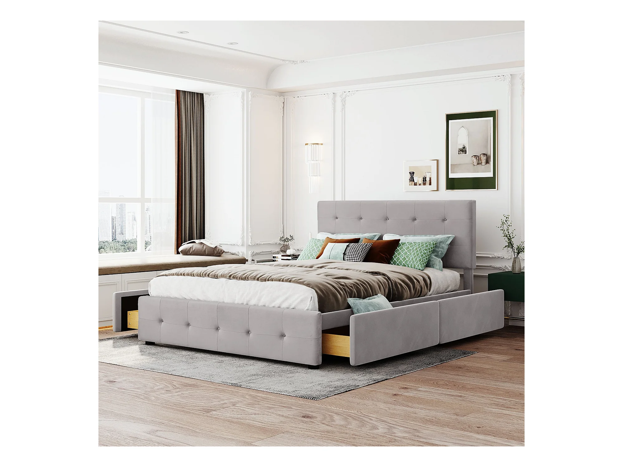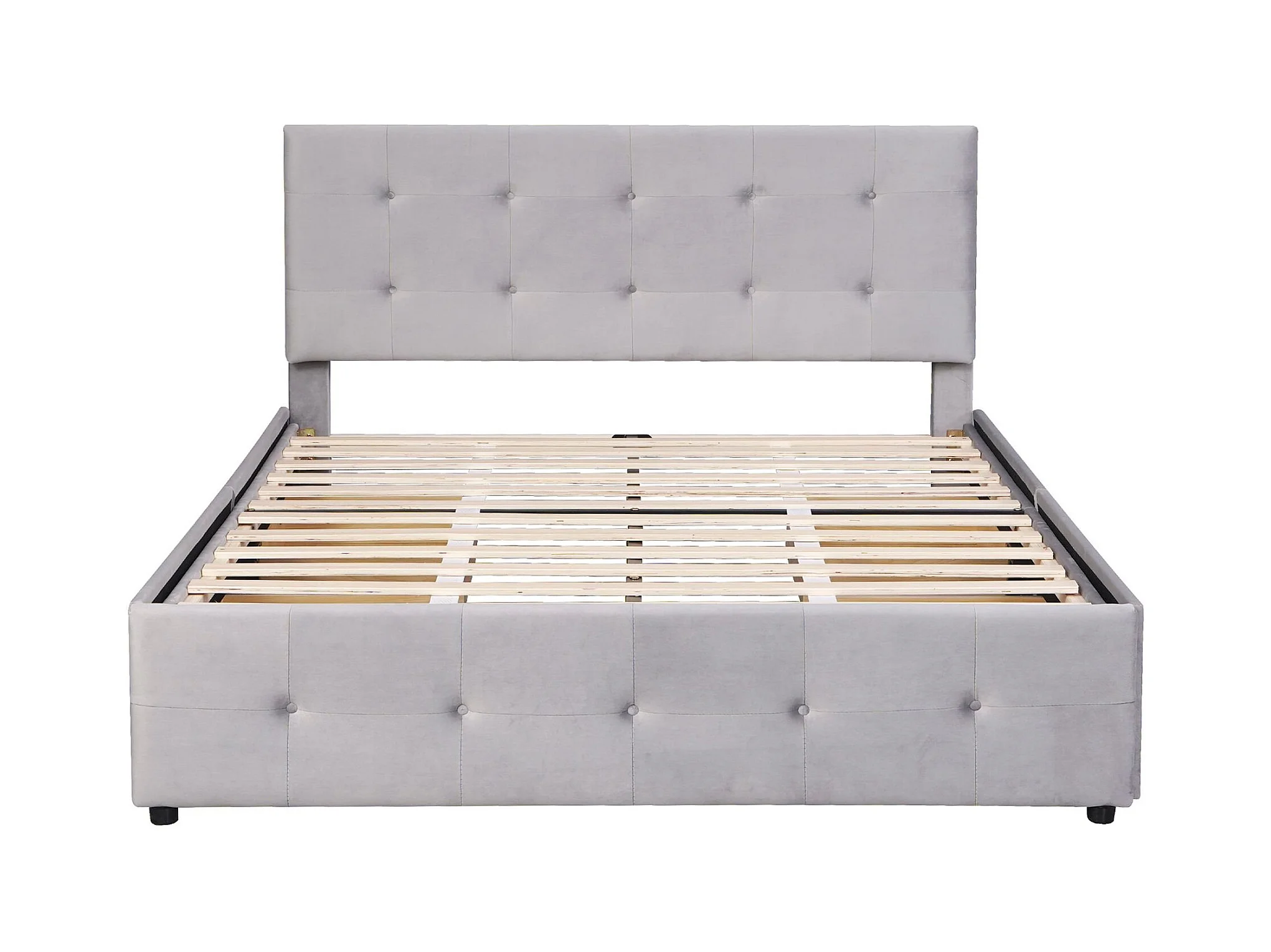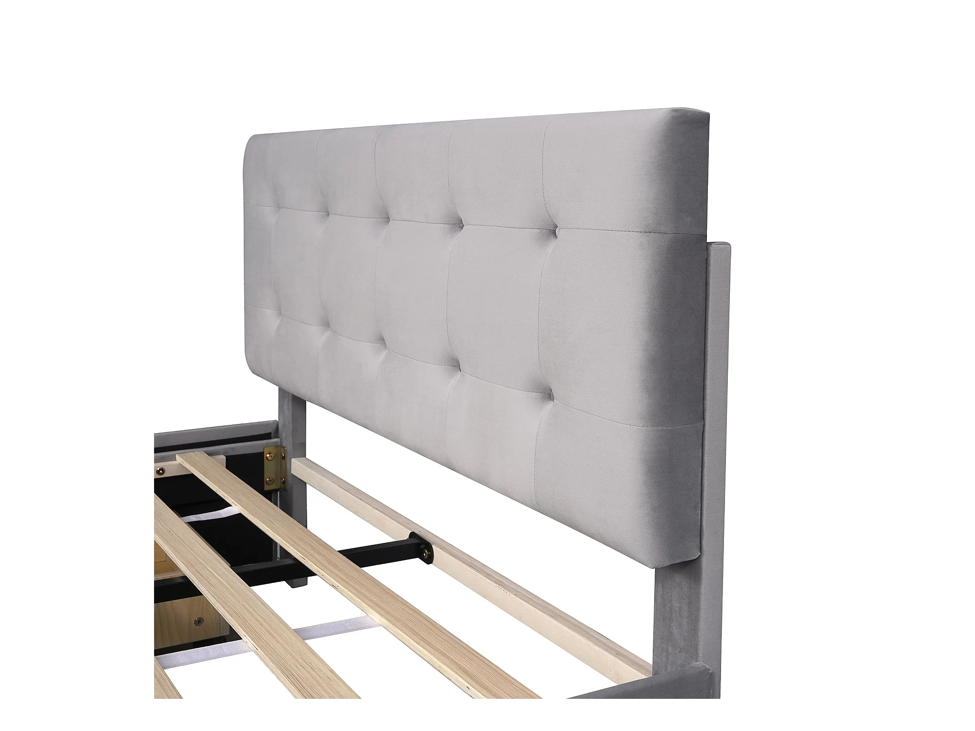 Lit adulte 140x200 cm - Lit double avec tiroirs et sommier à lattes - velours gris - sans matelas