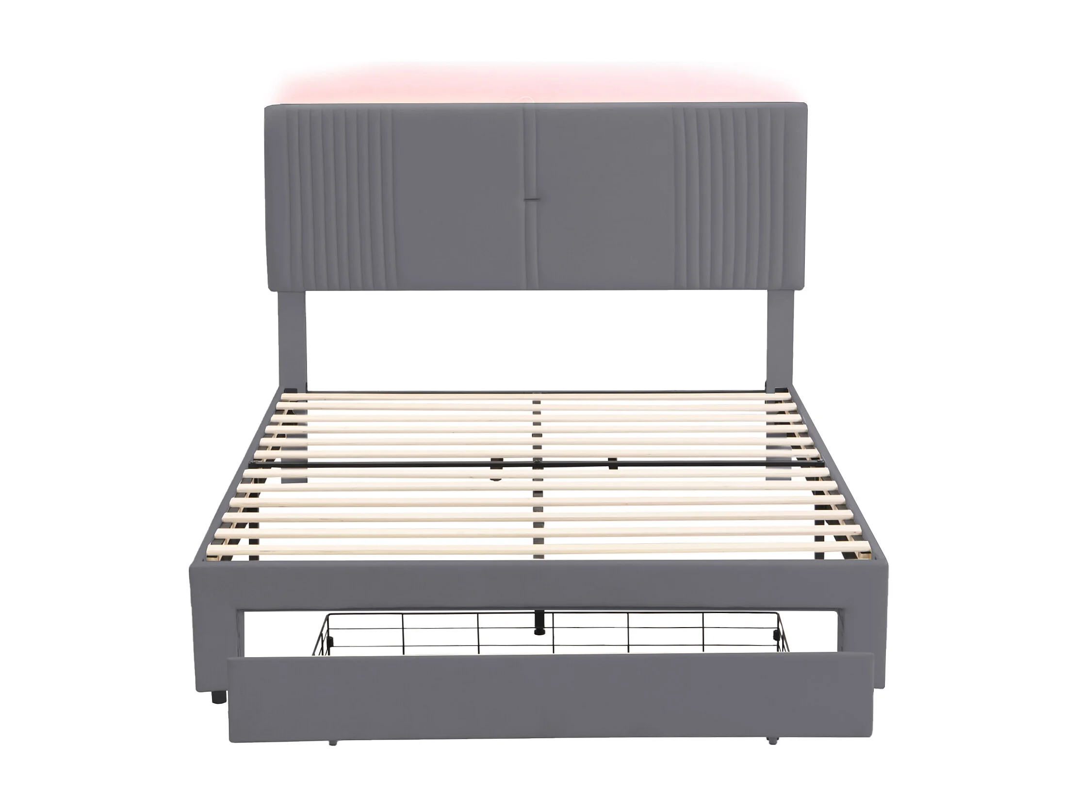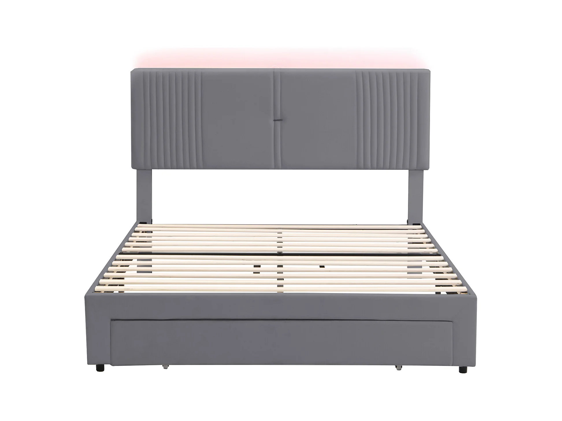 Lit adulte 140x200 cm - velours gris - lit double avec bandeau lumineux et port USB - tiroir de rangement