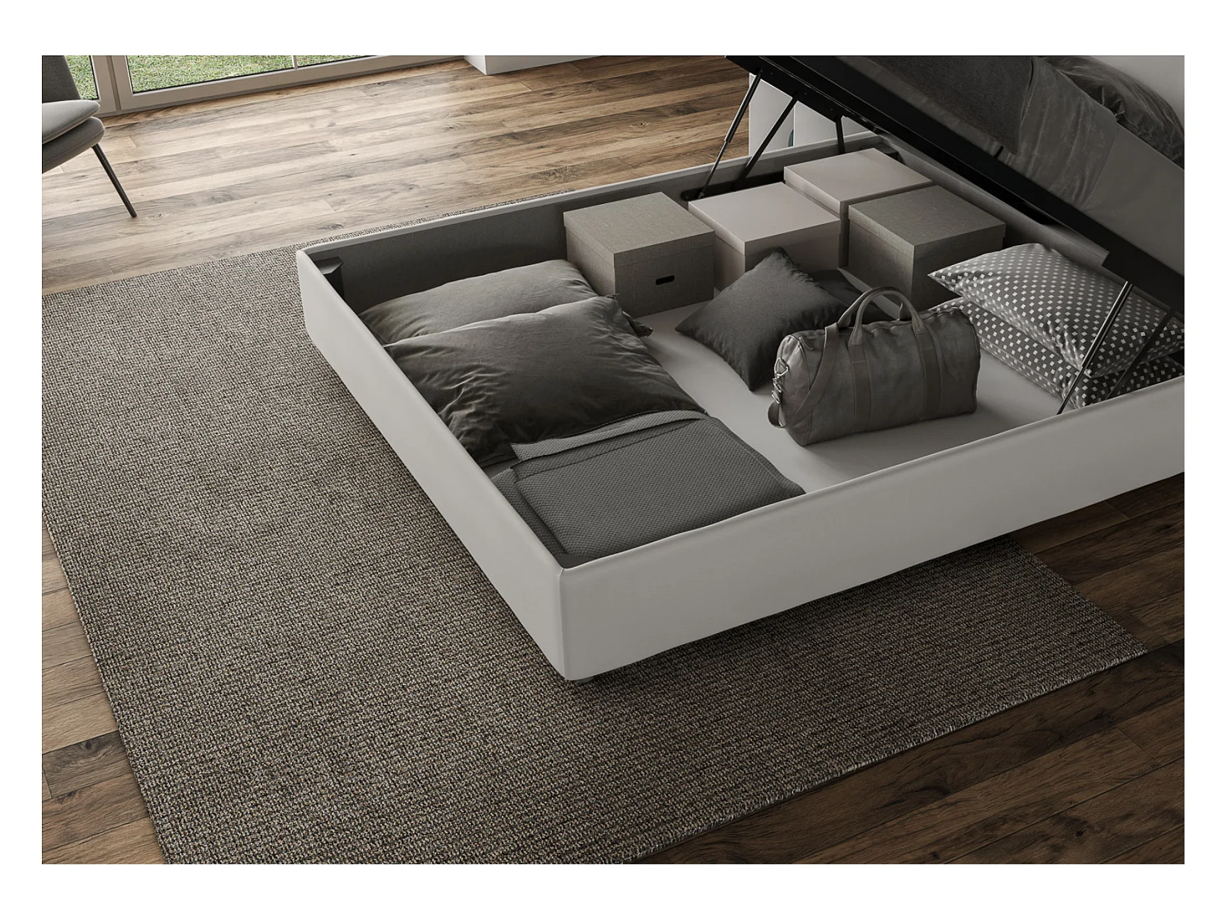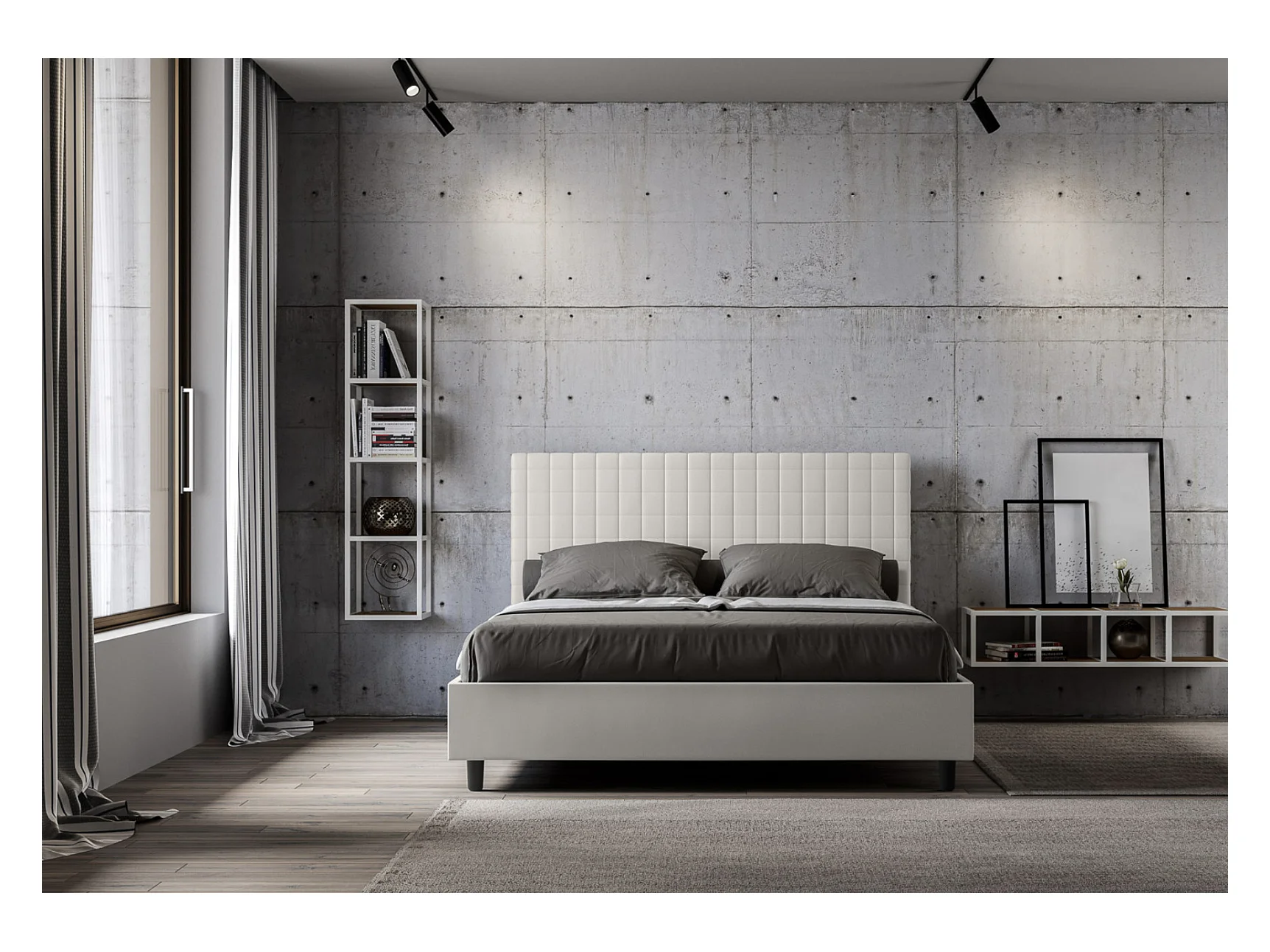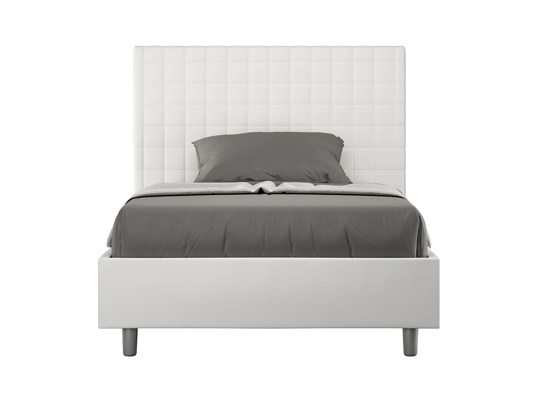 Lit matelassé à carreaux simili cuir Kunda-Couleur Blanc-90x190-Option Avec coffre