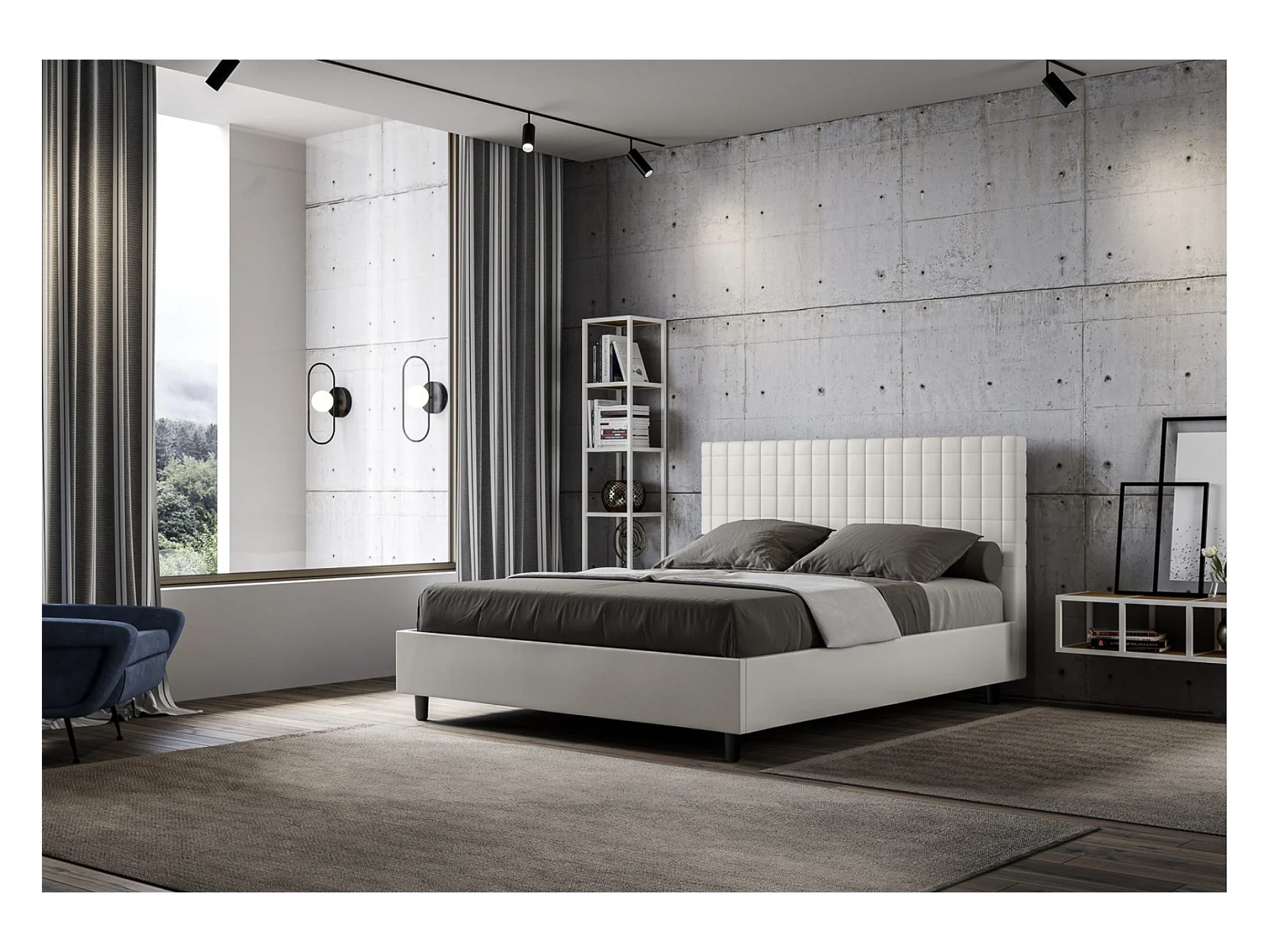 Lit matelassé à carreaux simili cuir Kunda-Couleur Blanc-90x190-Option Avec sommier