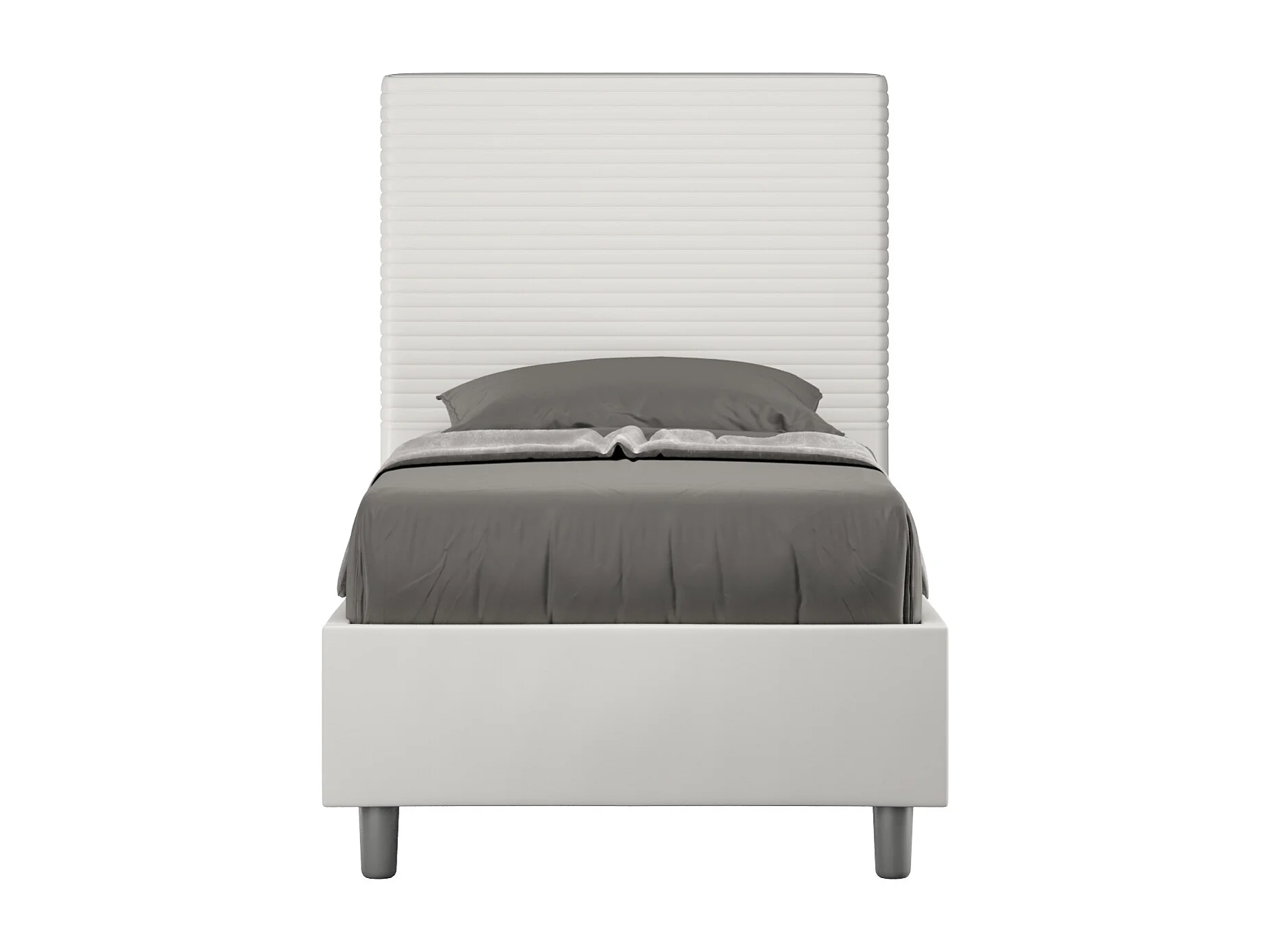 Lit capitonné 90x190 simili cuir blanc Focus sans sommier
