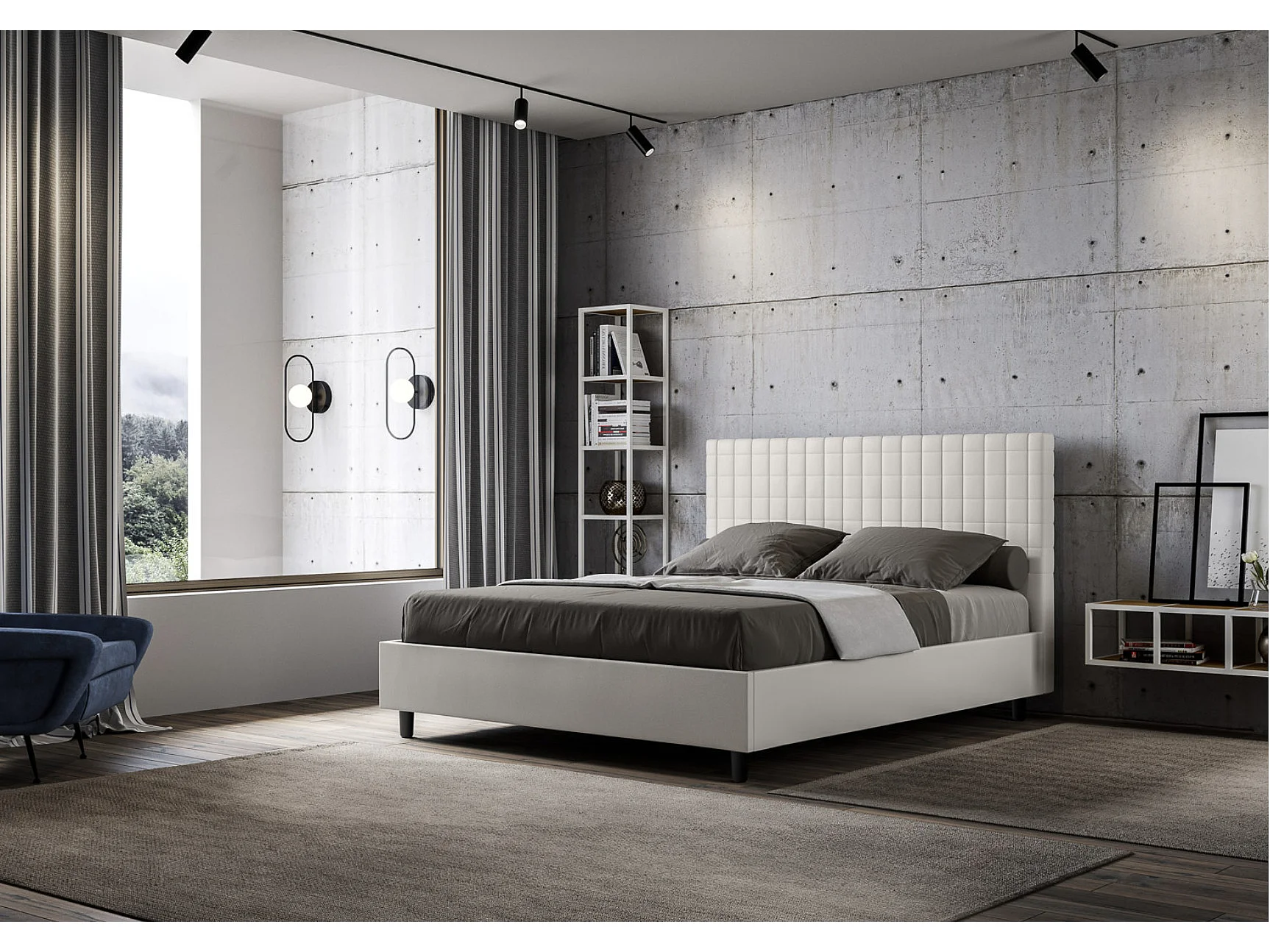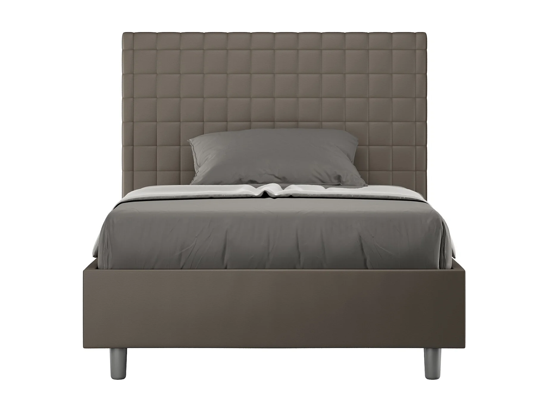 Lit matelassé à carreaux simili cuir Kunda-Couleur Marron-90x190-Option Avec coffre