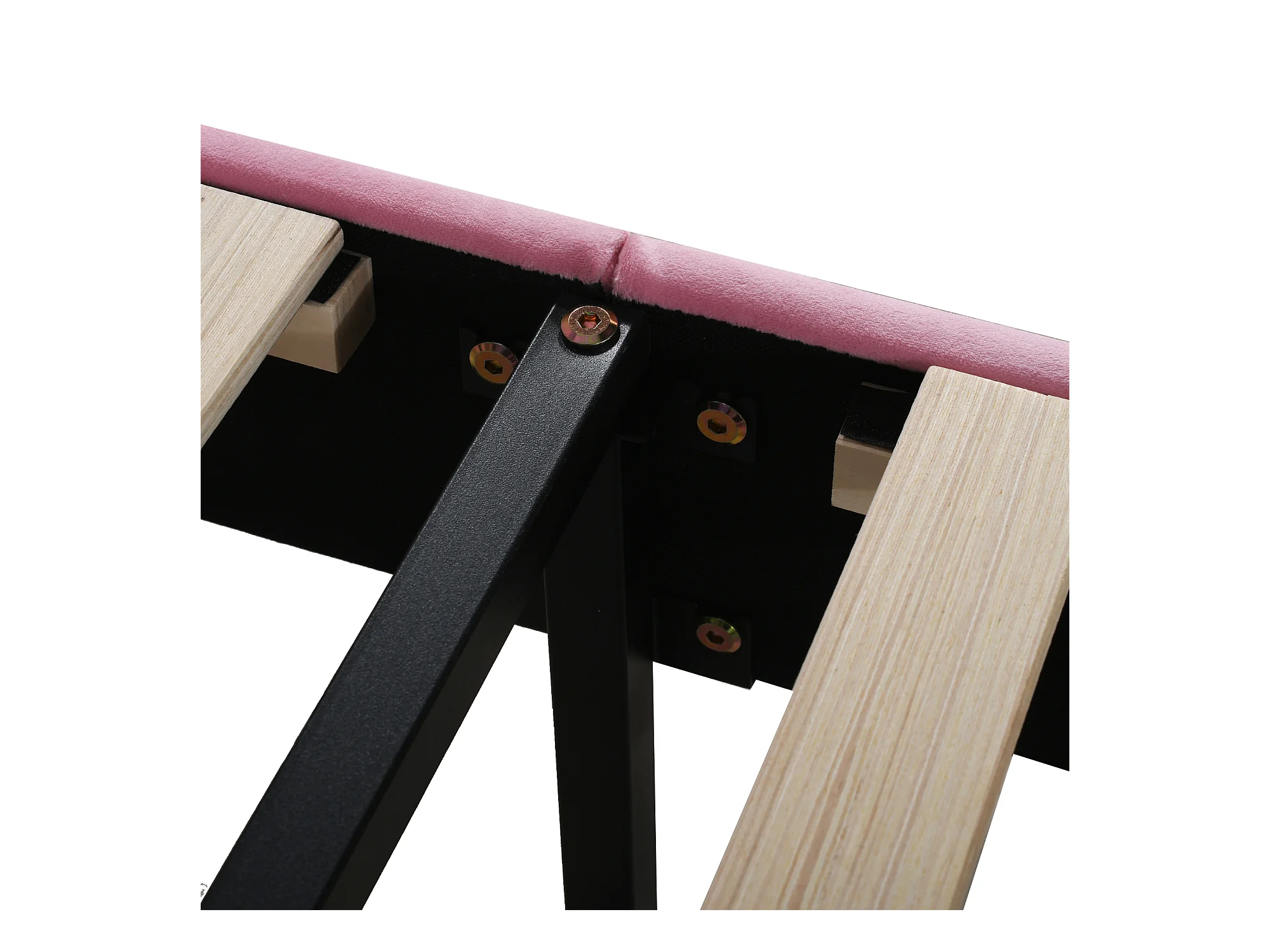 Lit simple 90x200 cm - Lit enfant avec tête de lit en forme de fleur et sommier à lattes - velours rose