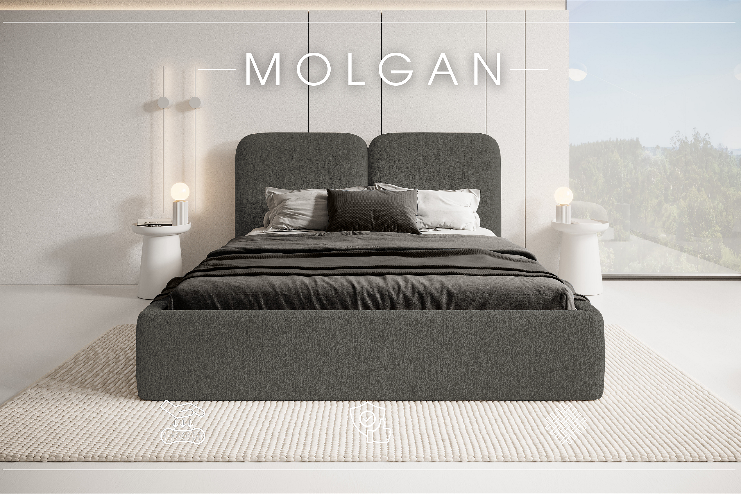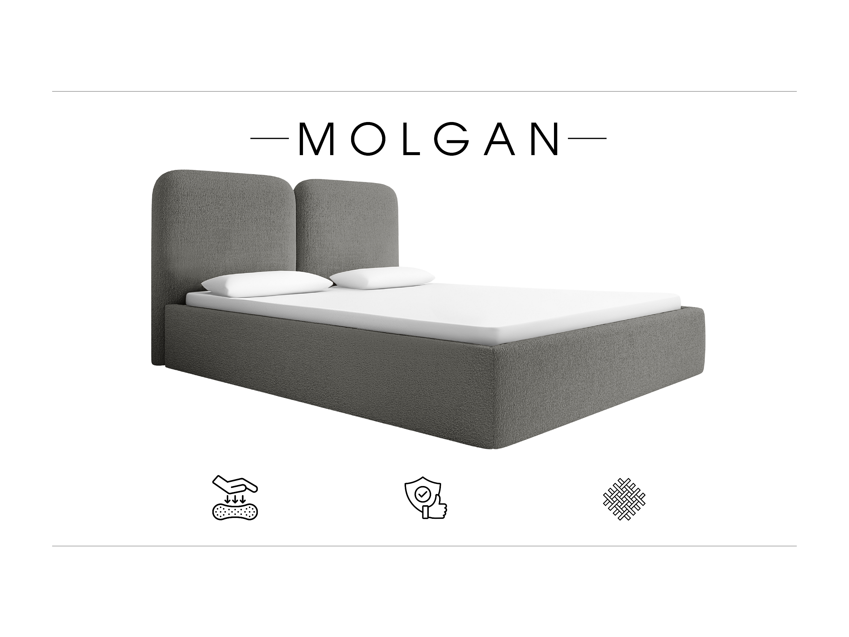 LIT CAPITONNÉ avec coffre de lit Molgan Gris/Brun 180x200 cm