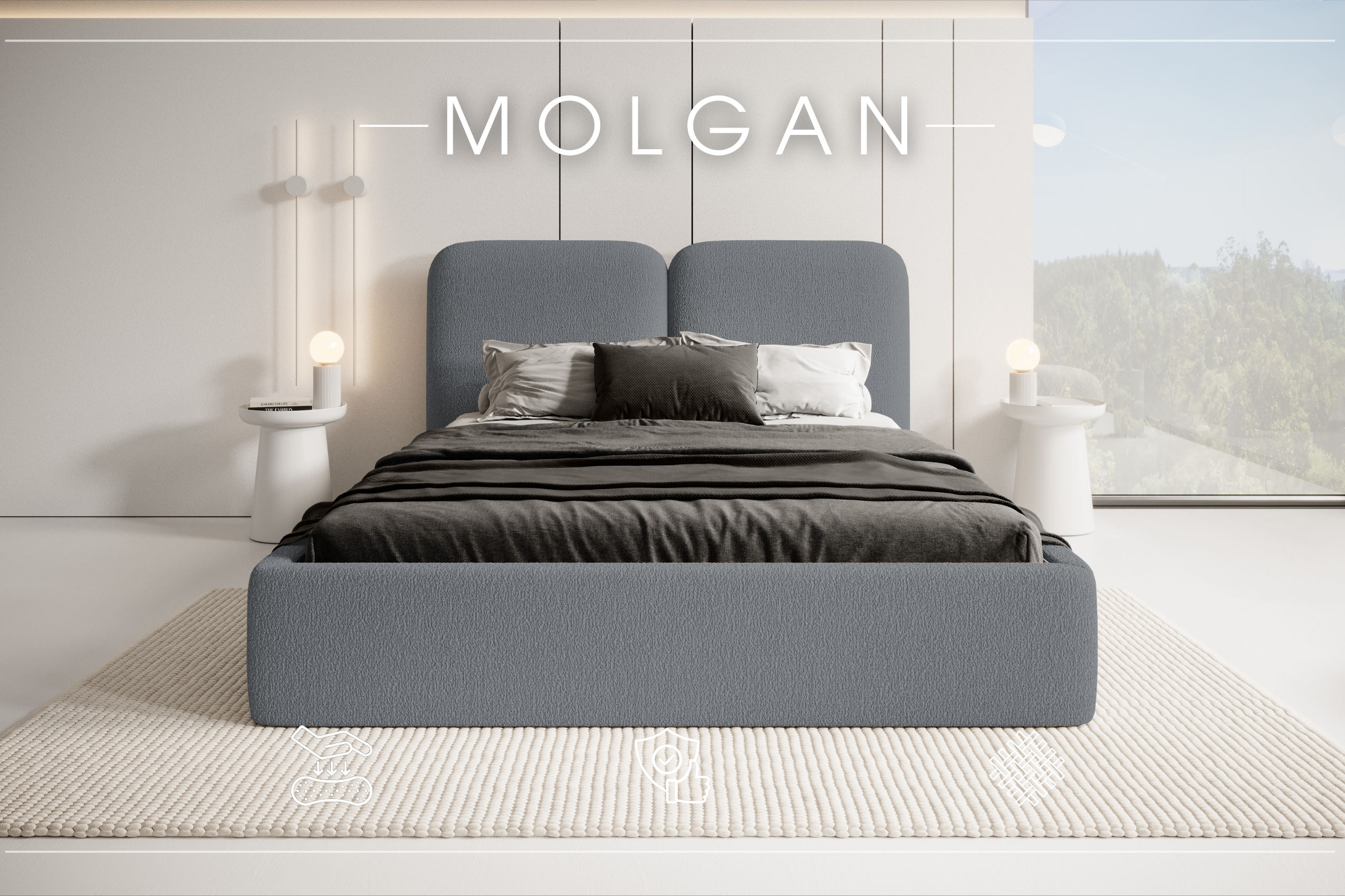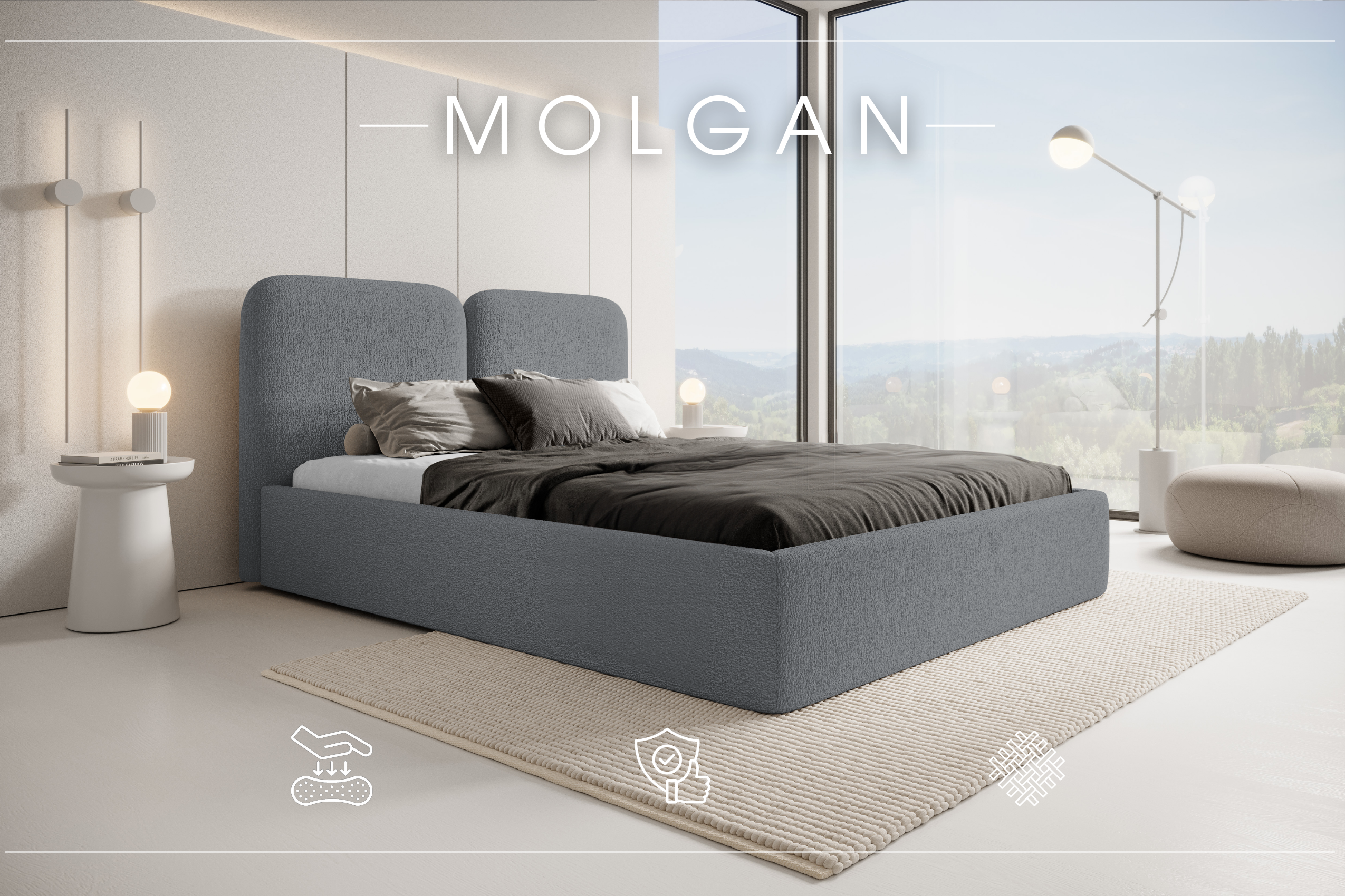 LIT CAPITONNÉ avec coffre de lit Molgan Gris clair 120x200 cm