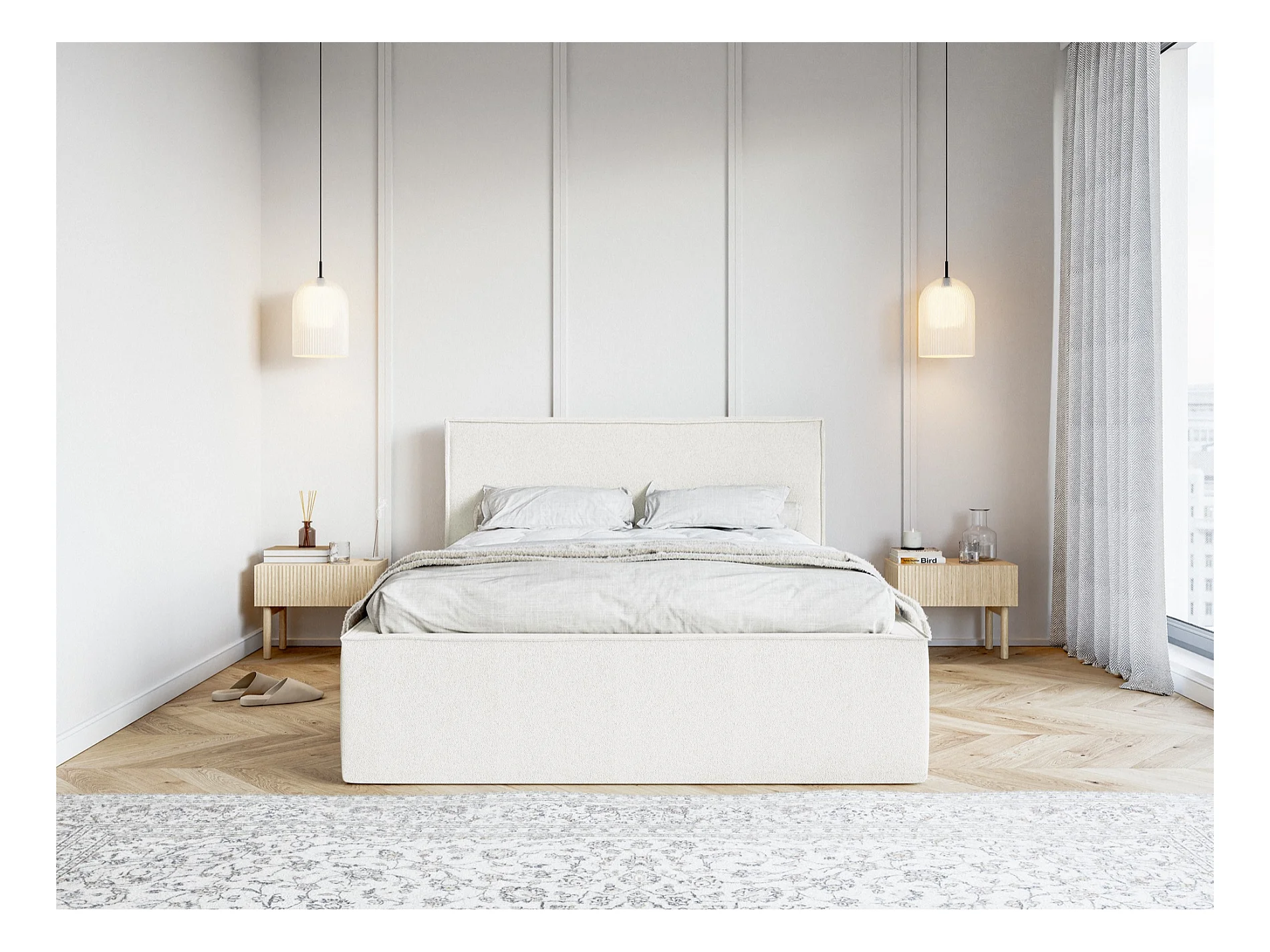 Lit capitonné double - 180x200 cm - en tissu chenille crème - LUCERA