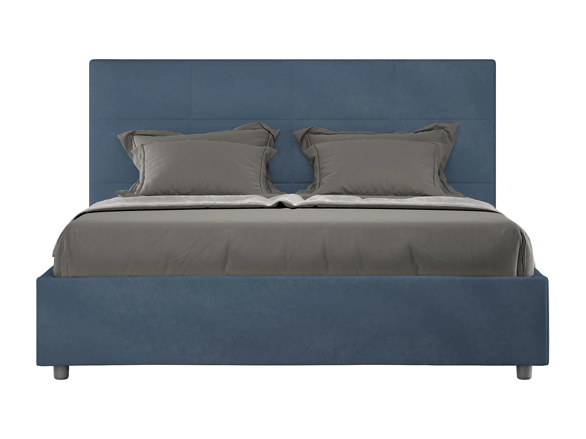 Lit double sans sommier rembourré 140x200 microfibre bleu Mika