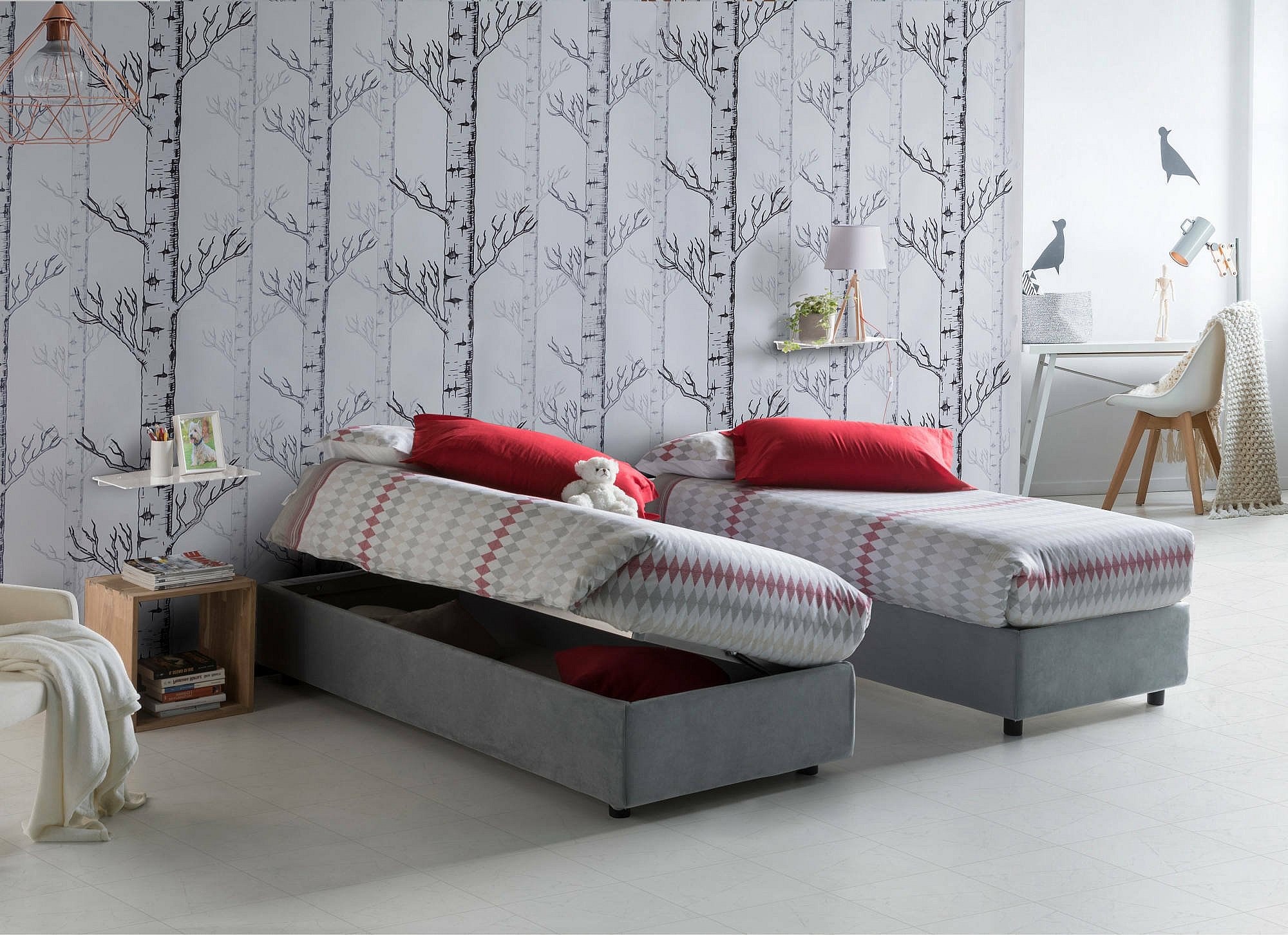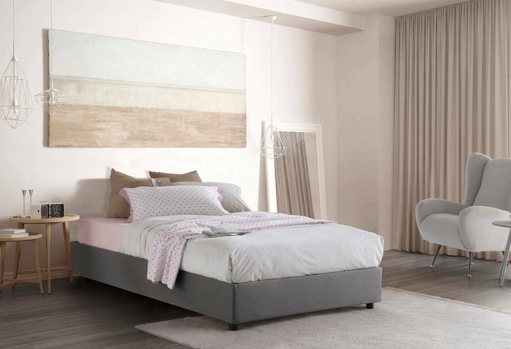 Lit double Ddibar, Lit coffre avec revêtement en tissu, 100% Made in Italy, Ouverture latérale, avec matelas 120x190 cm inclus, Gris