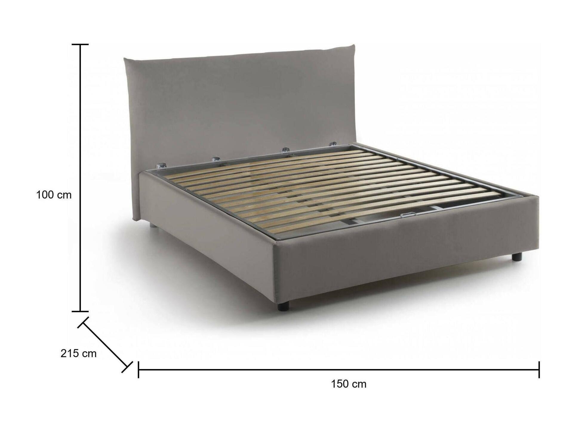 Lit double Dlevant, lit coffre avec revêtement en tissu, 100% Made in Italy, ouverture frontale, adapté pour matelas 120x190 cm, gris tourterelle
