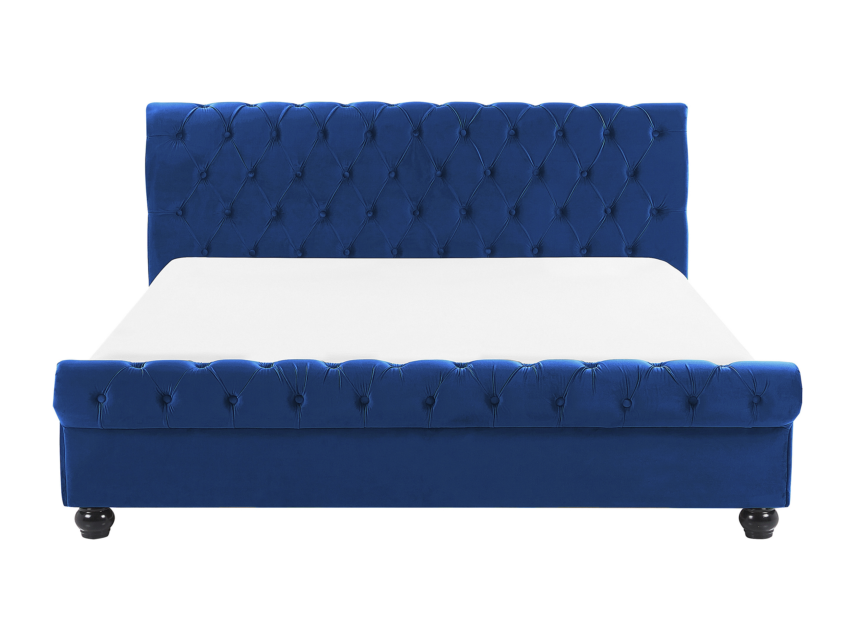 Lit avec sommier Velours AVALLON 180 x 200 cm Bleu marine
