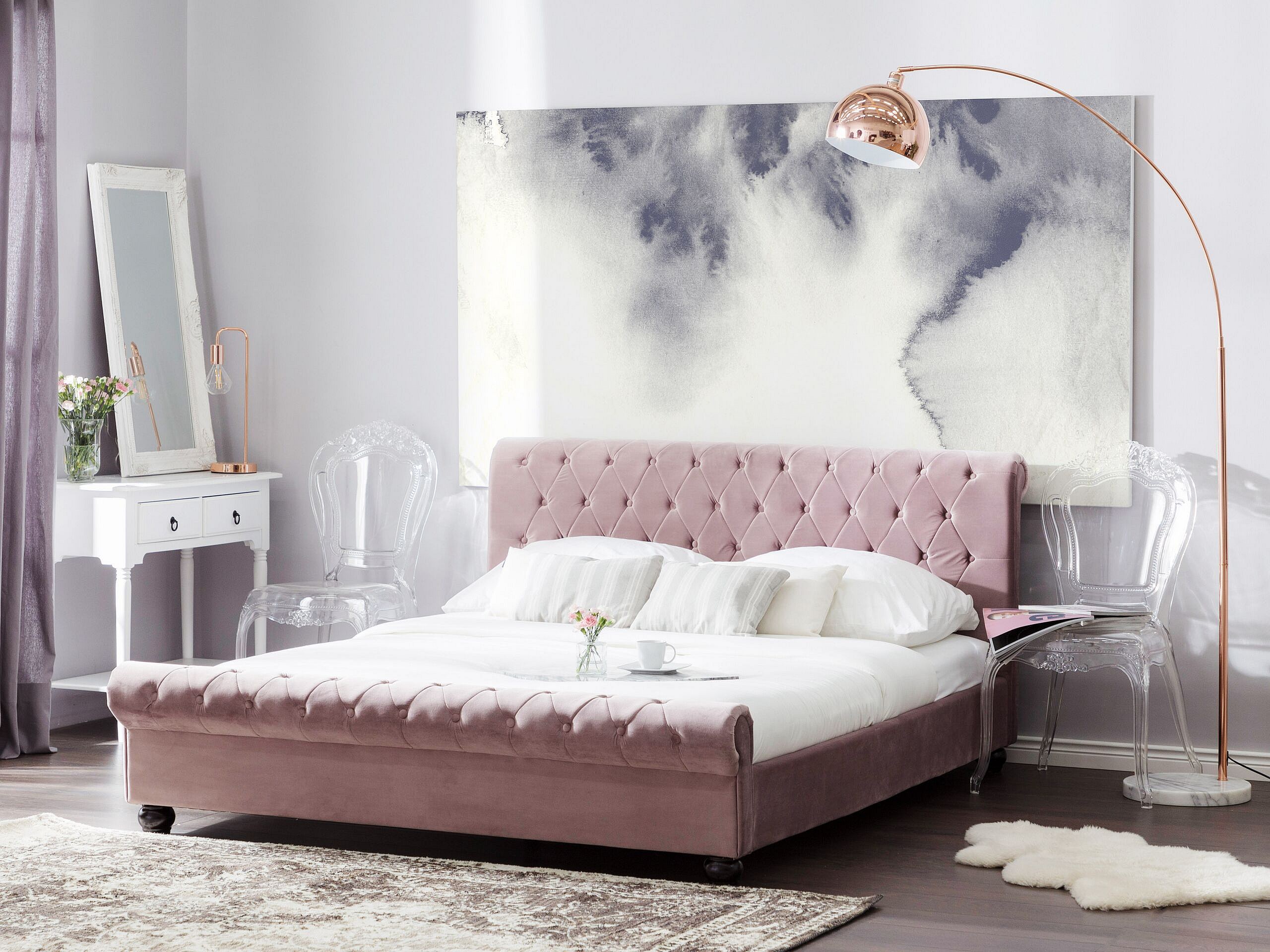 Lit avec sommier Velours AVALLON 180 x 200 cm Rose