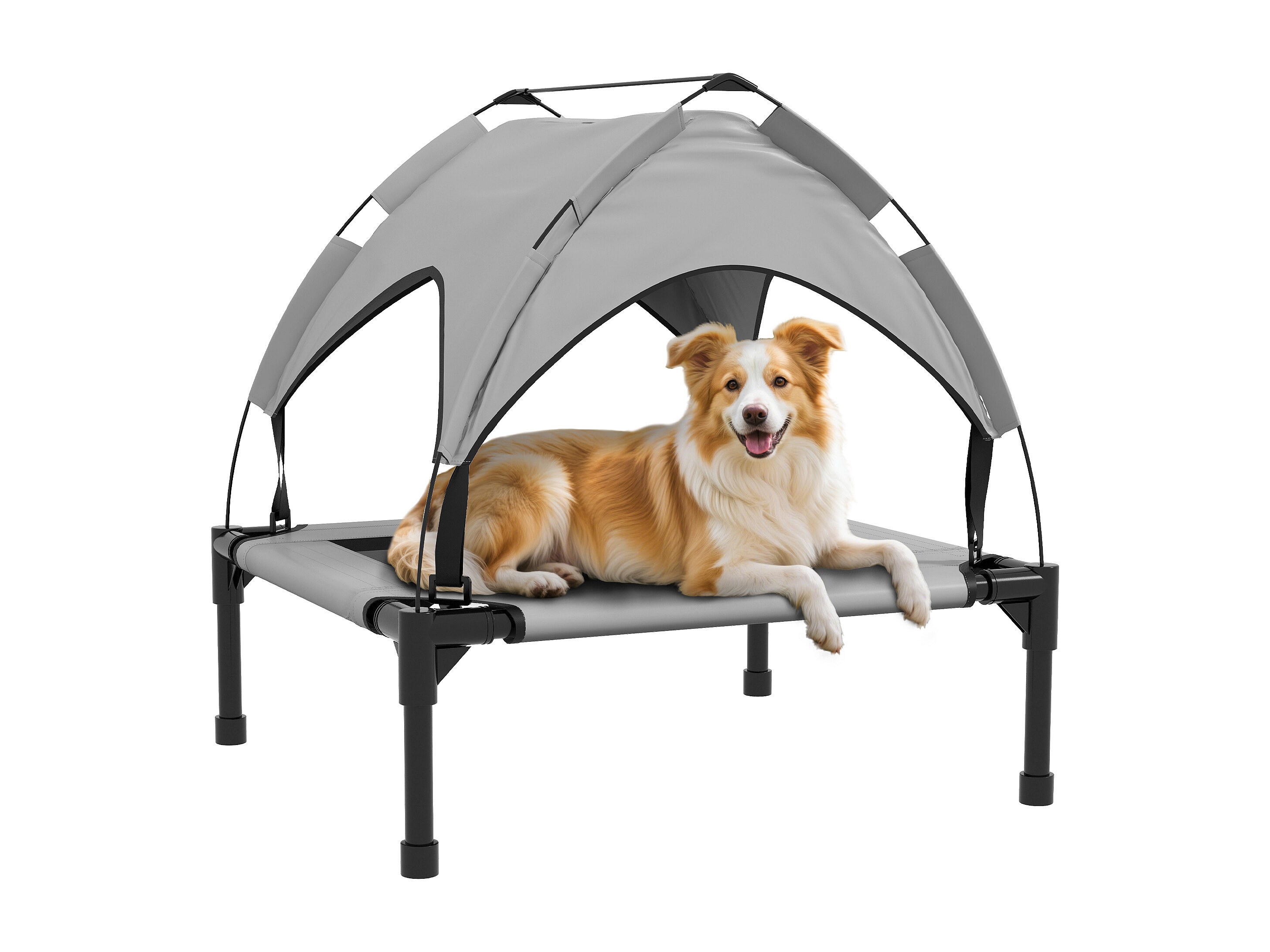 Lit pour chien chat sur pied velum anti-UV tissu Oxford micro-perforé sac transport inclus gris