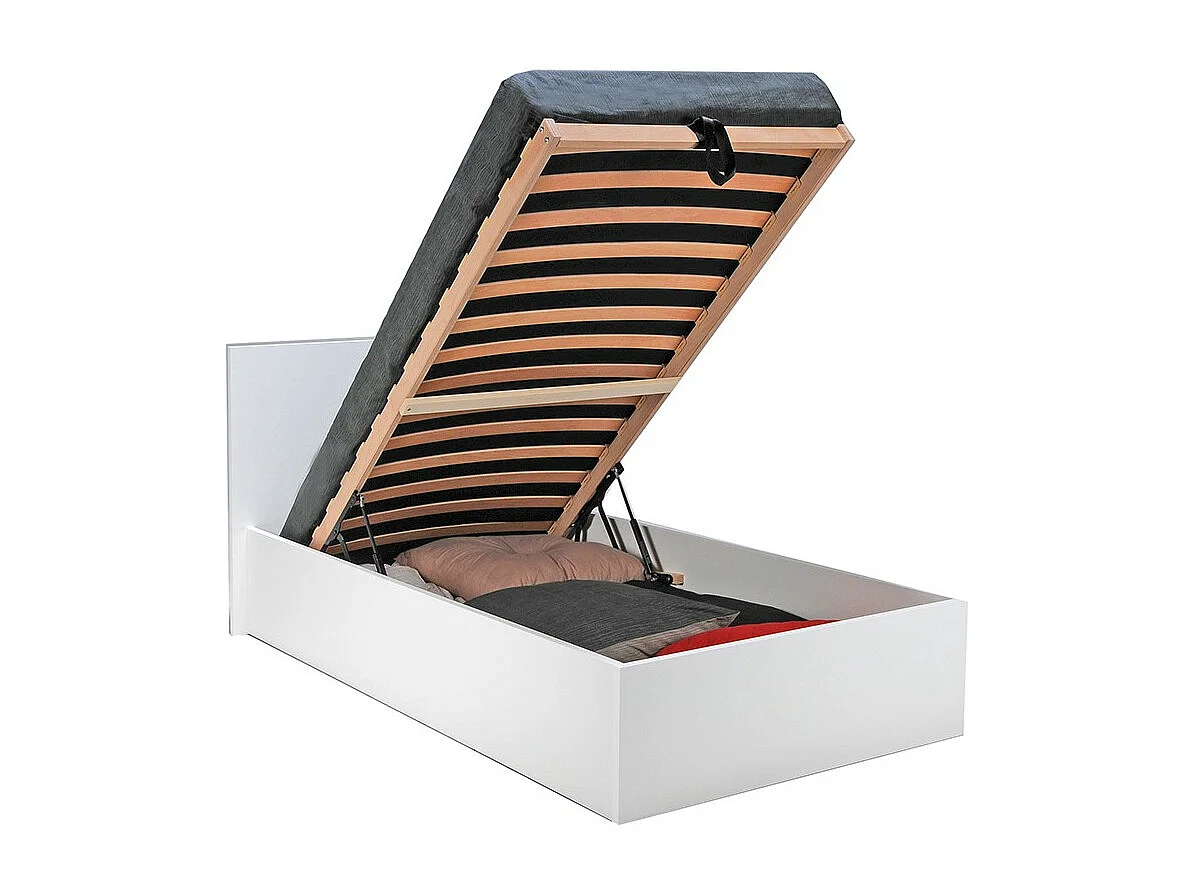 Lit coffre 1 place 90x190cm couleur Blanc avec sommier MARO