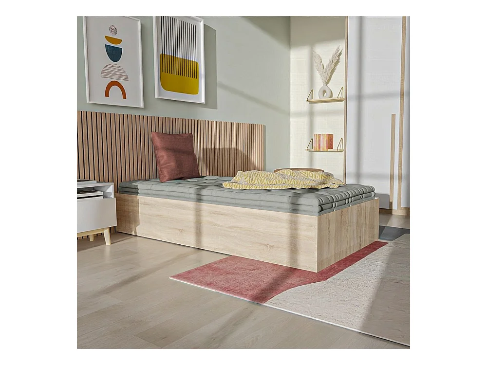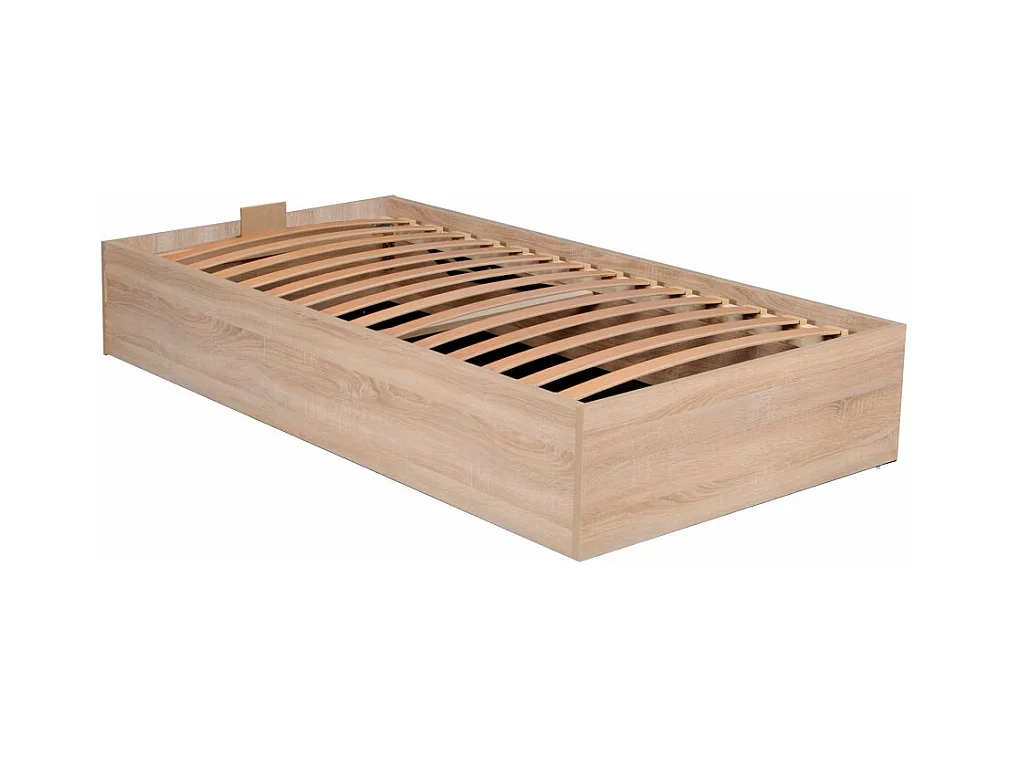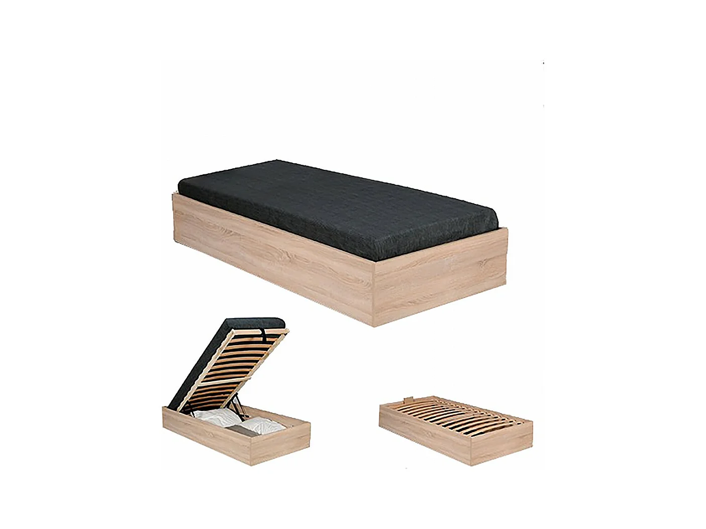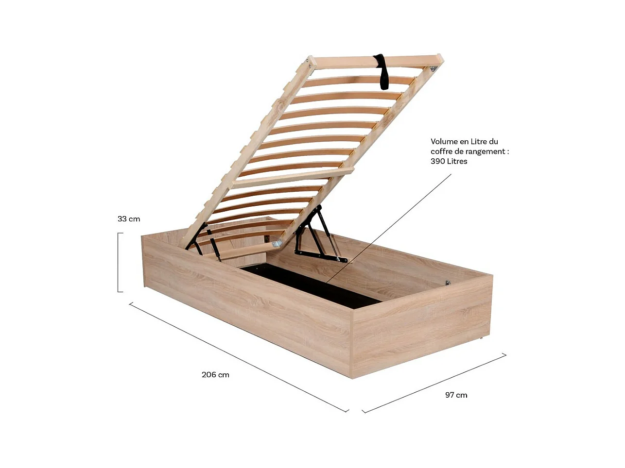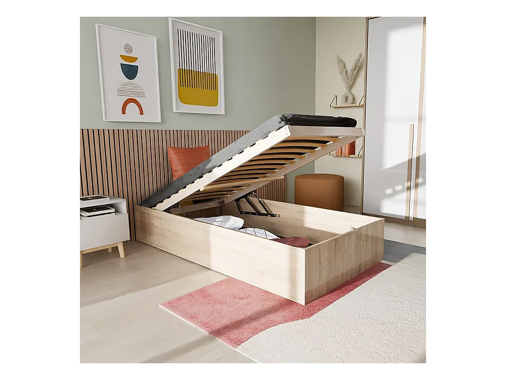 Lit coffre 1 place 90x200cm couleur Chêne avec sommier BILY