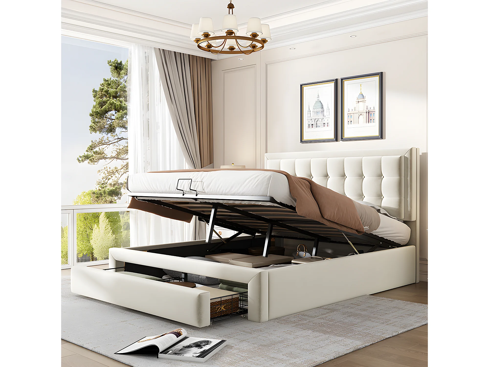 Lit coffre - 140 x 200 cm - avec 2 tiroirs sommier à lattes relevable - gris - Sweiko