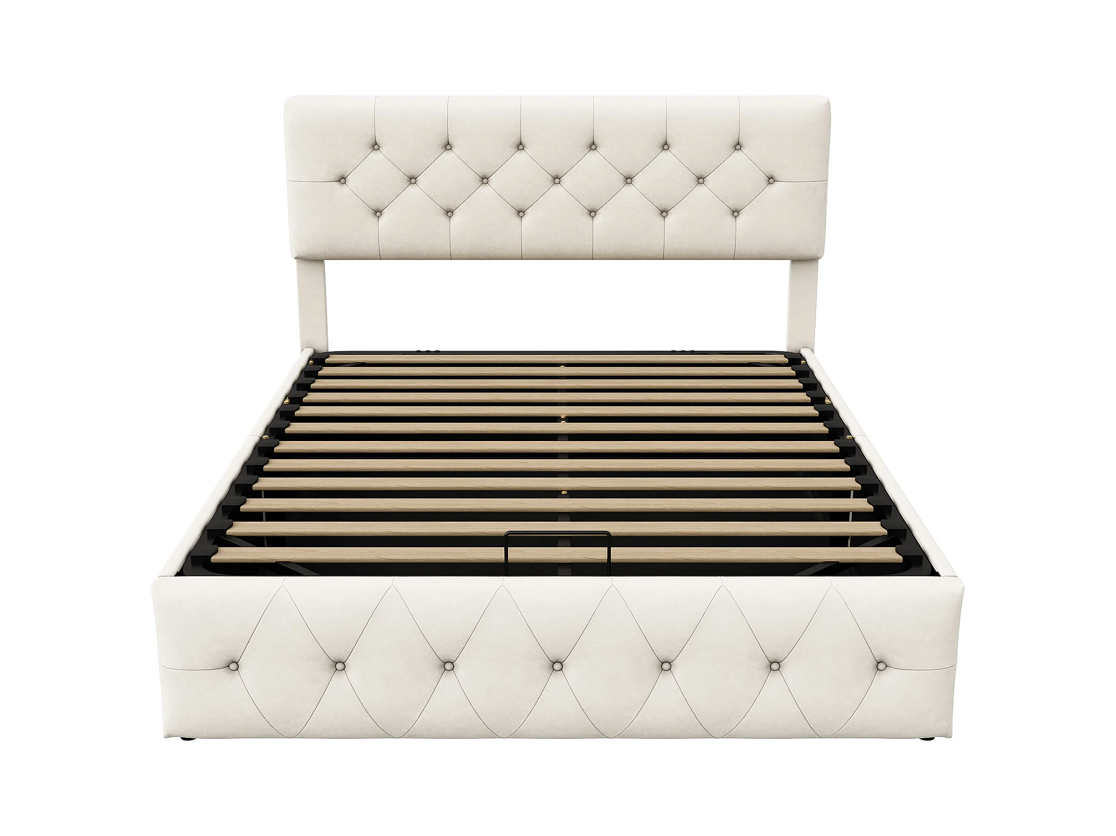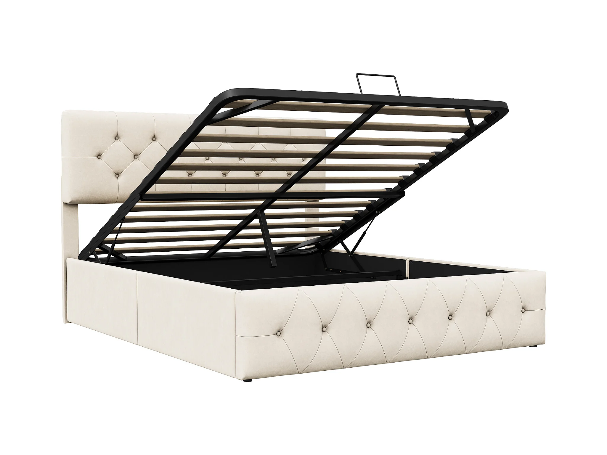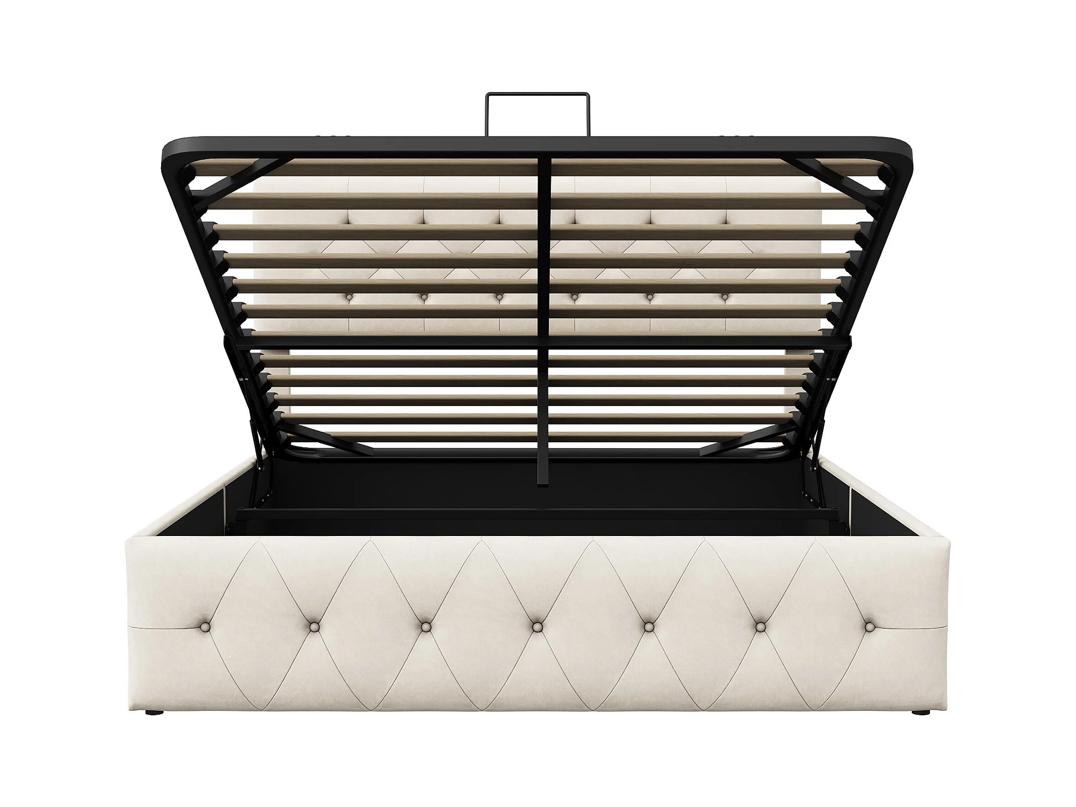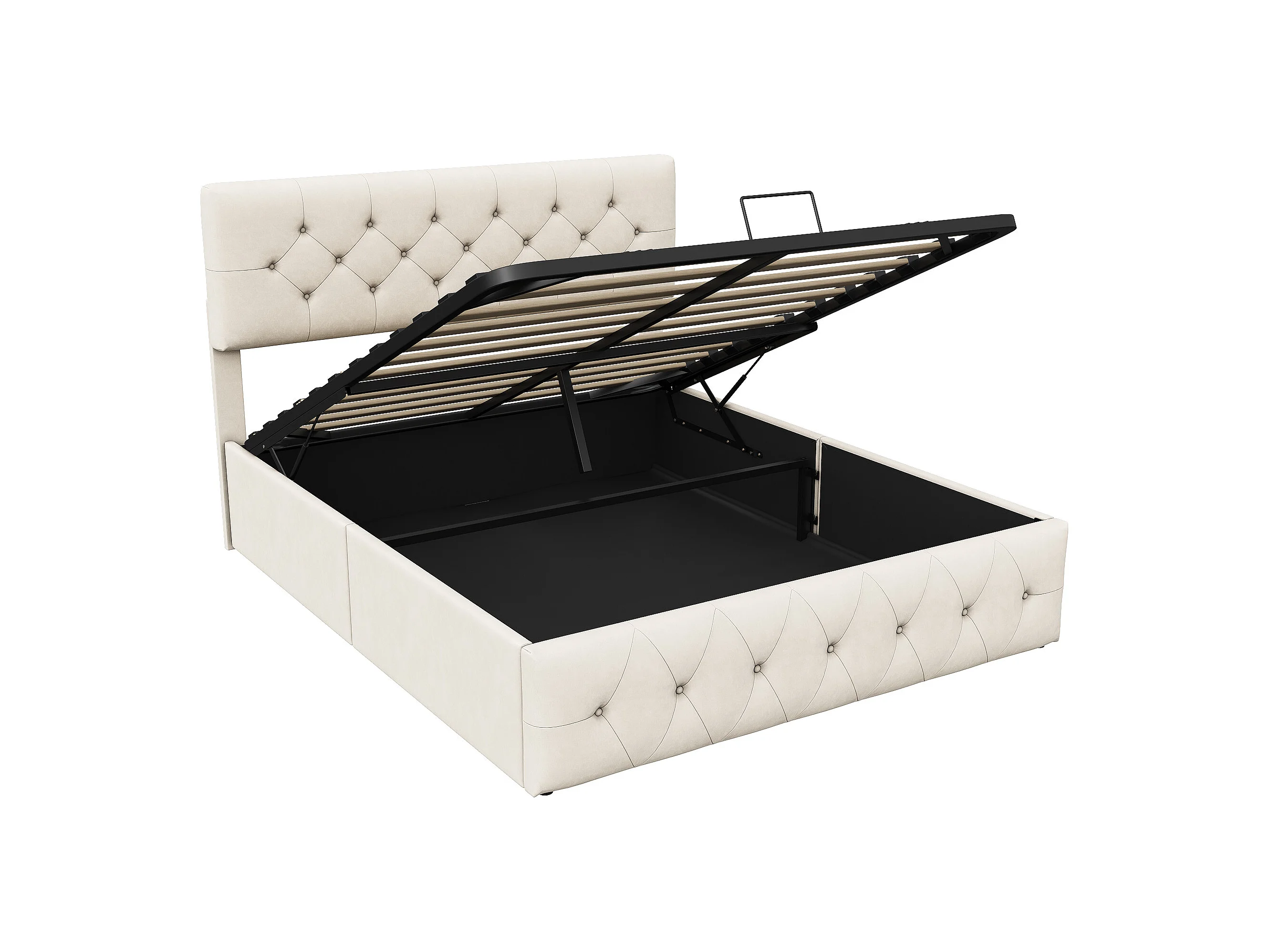 Lit coffre 140 x 200 cm,lit double,tissu velours,beige