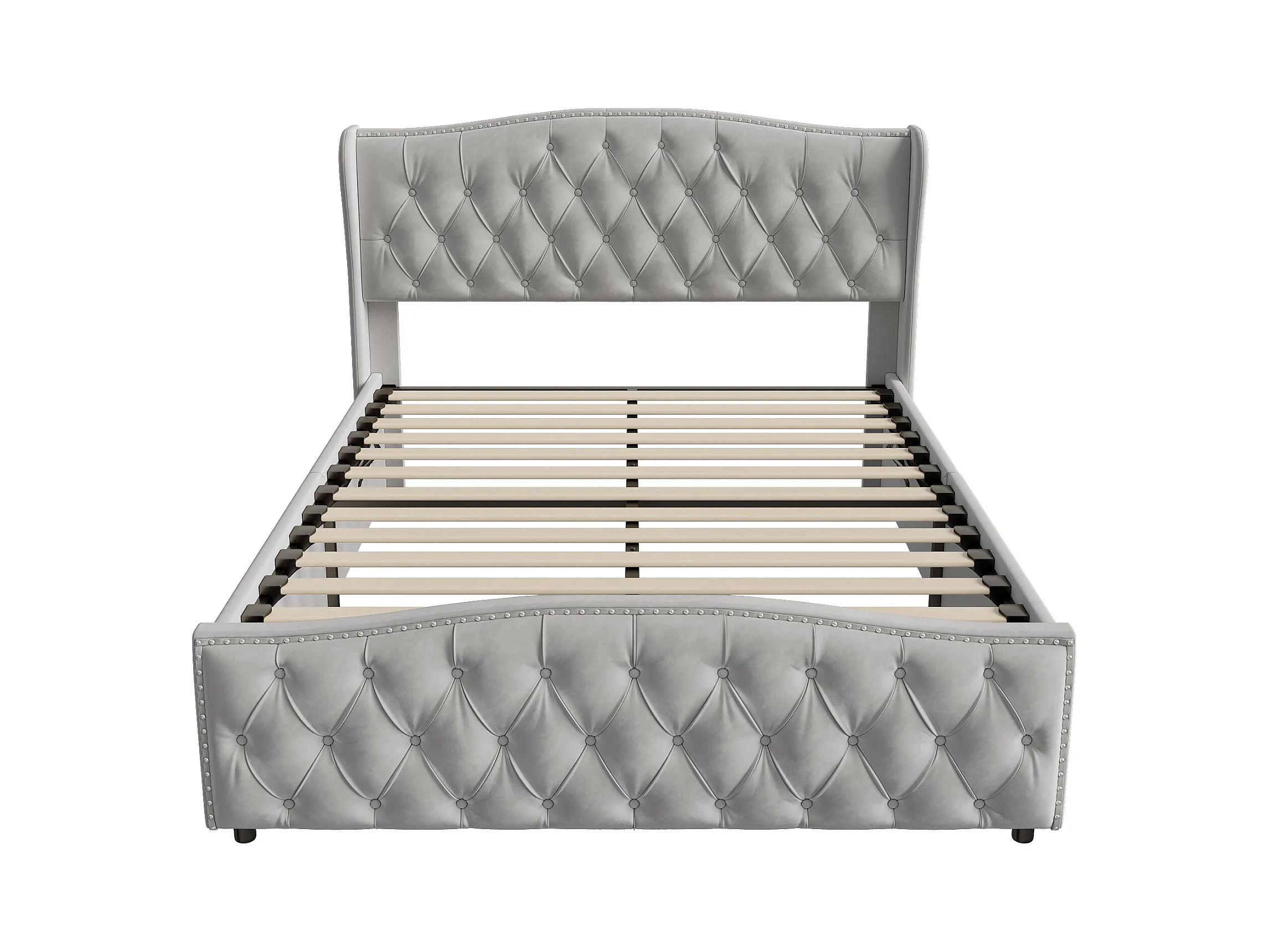 Lit Coffre 140x200 Avec Avec Sommier à Lattes, Lit Capitonné Avec Hydraulique, Lit Double, Gris